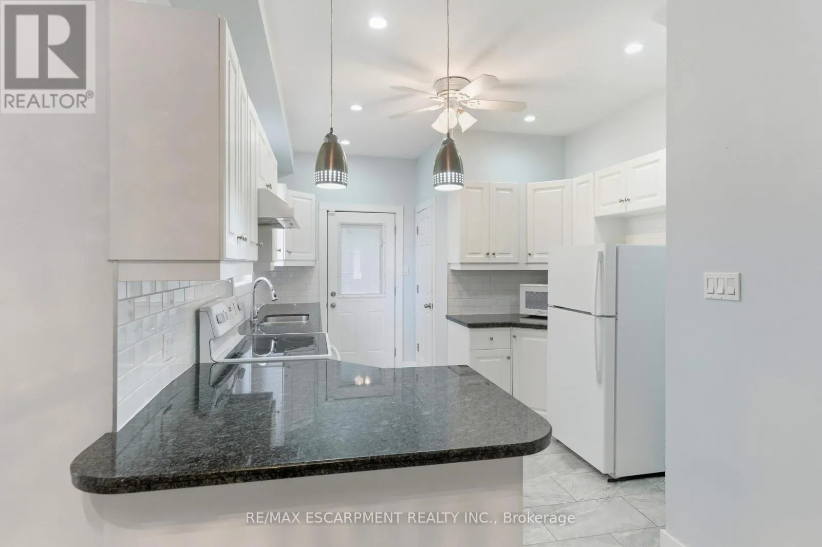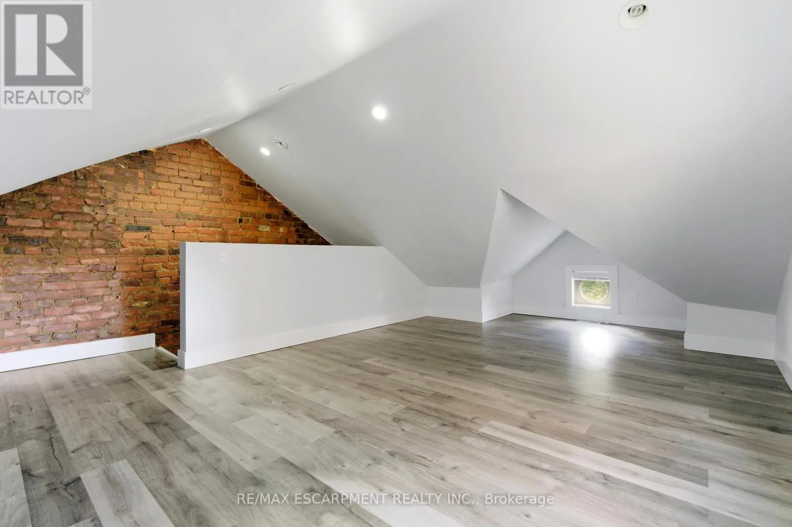 Cross Streets: Main st and Wellington st. ** Directions: Main Street West head South (right) on Ferguson Ave. S and turn left (east) on Jackson St., East end unit on North side of Street. Welcome to 199 Jackson Street East, located in Hamiltons highly desirable Corktown neighborhood. This classic 2.5-storey red brick century home is full of charm and modern upgrades, ready to impress! Step onto the cozy covered front porch, then into a main floor that boasts 9-foot ceilings, exposed brick accents, and original pocket doors that still functionbringing warmth and heritage to every room. The beautifully updated white kitchen features quartz countertops and opens to a spacious dining area. A convenient main floor 2-piece bathroom adds functionality without sacrificing style. Upstairs, the second floor offers bedroom-level laundry, two generously sized bedrooms, and a large, updated 5-piece bathroom with modern finishes. The third-floor loft is a versatile flex spaceperfect as a massive primary bedroom, home office, or secondary family room. Outside, enjoy plenty of privacy in the fully fenced backyard with a large deck, ideal for entertaining. Not just front drive parking but there's rear laneway parking as well. Just steps to Augusta Street, James Street South, GO Transit, local shops, cafes, and morethis is urban living at its finest. Don't miss your chance to call this Corktown gem home. (id:27476)
