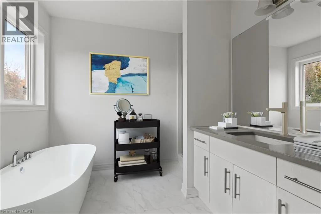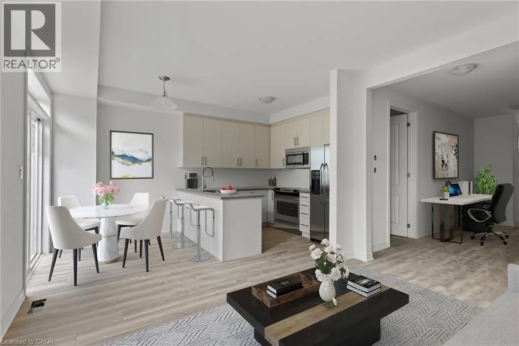 Take a right on DaVinci Blvd when heading East on Rymal Rd W from Ancaster Welcome to this stunning brand new 2-storey freehold townhome located in the prime West Hamilton Mountain. Offering approximately 1,500 sqft. of stylish, modern living space. This carpet-free home blends executive comfort with everyday convenience with NO condo or road fees! The main floor boasts 9ft ceilings, a fully upgraded kitchen featuring stainless steel appliances, beautiful tilework, and an elegant oak staircase with matching railings that complement the pre-finished flooring. Upstairs, the spacious layout continues with bedroom-level laundry for ultimate convenience. The primary suite is a private retreat, complete with a luxurious 4-piece ensuite. Downstairs, your additional 600 sqft. unfinished basement comes with a rough-in for a future bathroom â perfect for a future rec room, home office, or guest suite. Over $40,000 in upgrades included! The home is covered under Tarion's Ontario New Home Warranty for your peace of mind. This move-in ready, carpet-free townhome offers everything you need â all with no condo or road fees! Fantastic location near schools, parks, shopping, and quick highway access â perfect for families, professionals, or investors. Multiple units and floor plans available. (id:27476)