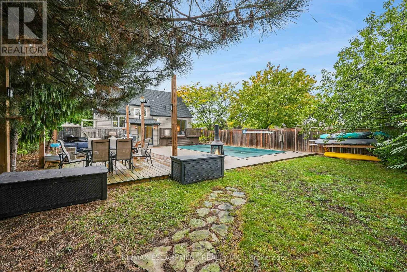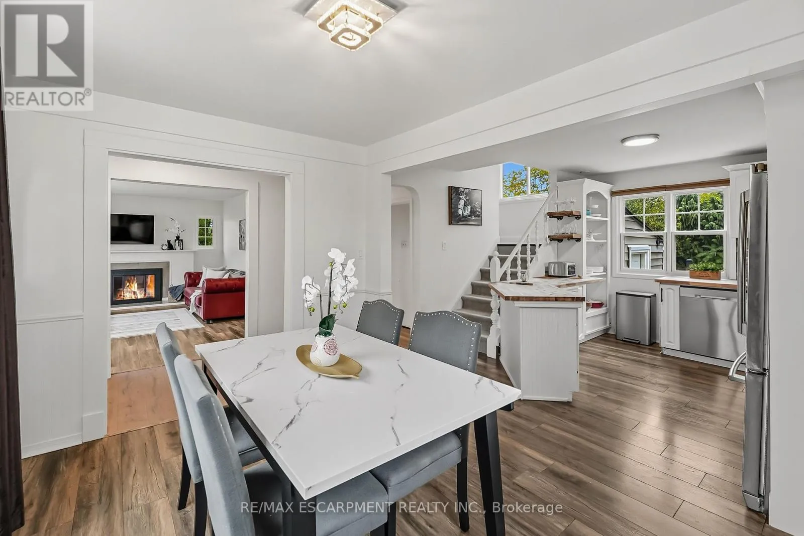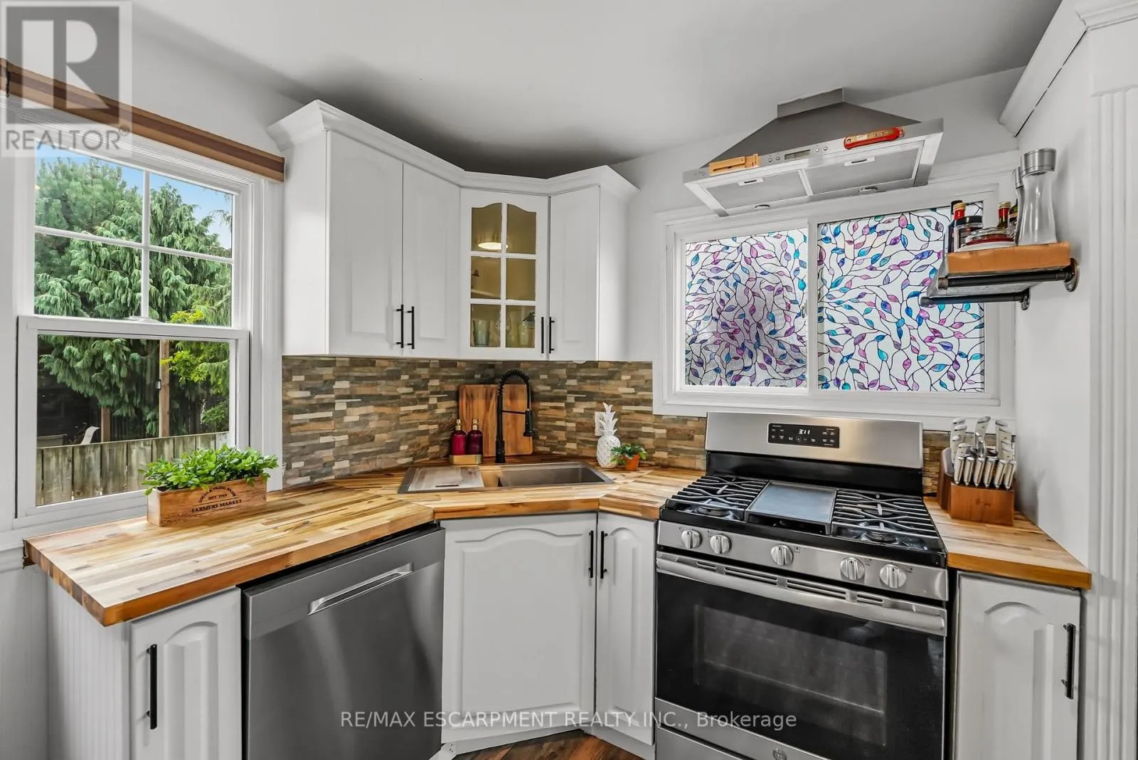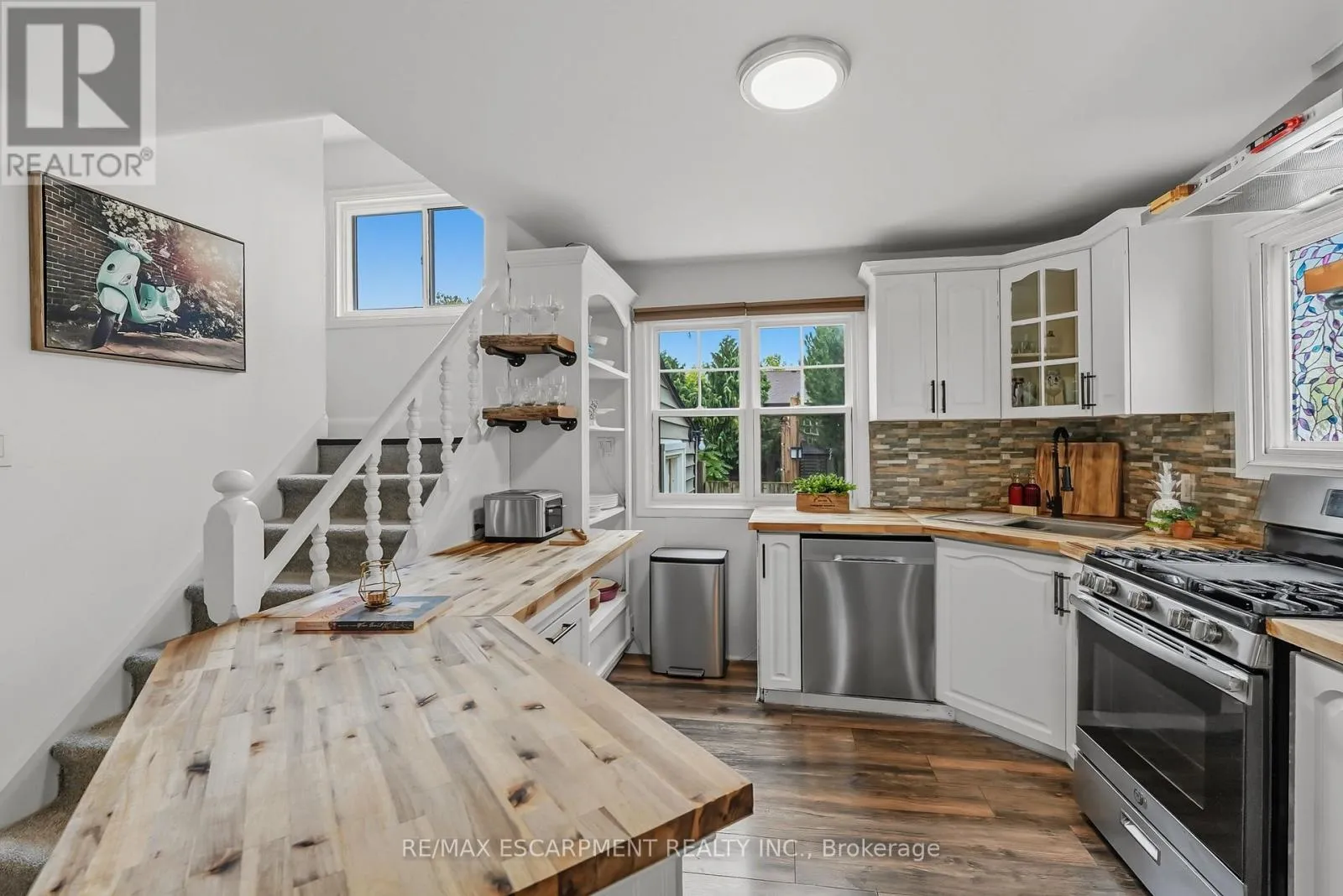 Cross Streets: Hwy 8 /Green Rd. ** Directions: From QEW, Exit Fruitland Rd, Left onto Fruitland, Right onto Arvin Ave, Left onto Green Rd. LIVE, PLAY & UNWIND AT HOME ... Discover the charm and potential of this 1 1/2-storey home set on a 50 x 150 property at 246 Green Road in Stoney Creek - a versatile property that combines cozy living spaces with an inviting backyard retreat. Perfect for families and downsizers alike, this home offers flexible functionality & modern updates while preserving its classic character. Step inside into a bright and welcoming main level. The living room, featuring an original wood-burning fireplace (not used since purchase) and large windows, is a comfortable gathering space. The eat-in kitchen blends rustic warmth and style with BUTCHER BLOCK counters, subway tile backsplash, and gas stove. A MF bedroom with patio doors provides DIRECT OUTDOOR ACCESS and is currently used as a playroom. Completing the main level is a 3-pc bathroom w/luxurious soaker tub. Upstairs, recently carpeted wood stairs lead to two bedrooms, including a spacious primary, second bedroom, and a convenient hallway closet. Durable vinyl flooring adds modern practicality to the upper level. The lower level expands the living space with a separate side entrance and patio walkout, recreation room with a dry bar, office (or home gym!), cold room, laundry, and a 3-pc bath w/shower. The basement once had a functioning kitchen and offers great IN-LAW SUITE POTENTIAL or extended living space! Step outside to a fully fenced backyard designed for relaxation and entertaining. Enjoy summer days by the inground pool with a concrete surround, lounge on the deck, or gather on the secondary seating deck. With parking for up to 7 vehicles and updates including a new dishwasher (2025), furnace and AC (2020), and hot water heater (2020), this home is move-in ready with room to make it your own. Located in a desirable Stoney Creek neighbourhood close to amenities, schools, parks, and commuter routes. Your Backyard Getaway Awaits! (id:27476)