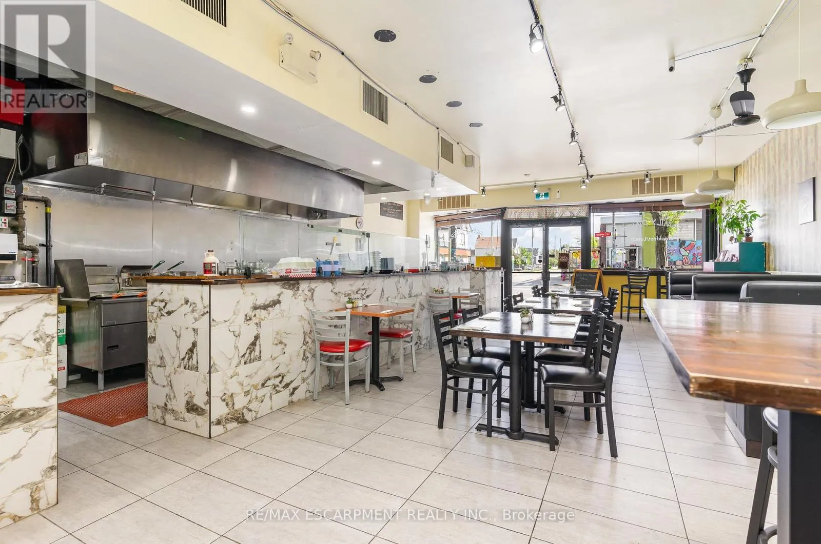 Cross Streets: Ottawa N and Cannon. ** Directions: Ottawa Street North Between Cannon and Brittania. Prime Ottawa St North Building with vacant restaurant space and vacant bachelor apartment above. Flexible C5a zoning allows for a variety of uses. Former home of Beach Road and Dunav Meats, and seen in season 2 of the Umbrella Academy! The 3000ft2 main level features an open kitchen and dining area, 2 accessible washrooms, large storage and prep space and direct access to the rear parking. Additional income potential or live work with the 2nd level bachelor apartment. Full height 1223ft2 basement offers opportunities for commissary kitchen and additional storage/prep space. New flat roof with transferable warranty installed Dec 2024,. New electrical, plumbing, fire suppression, ventilation, hood, all 2015-2016. 2 car parking at rear. Do not miss out, book your showing today! (id:27476)