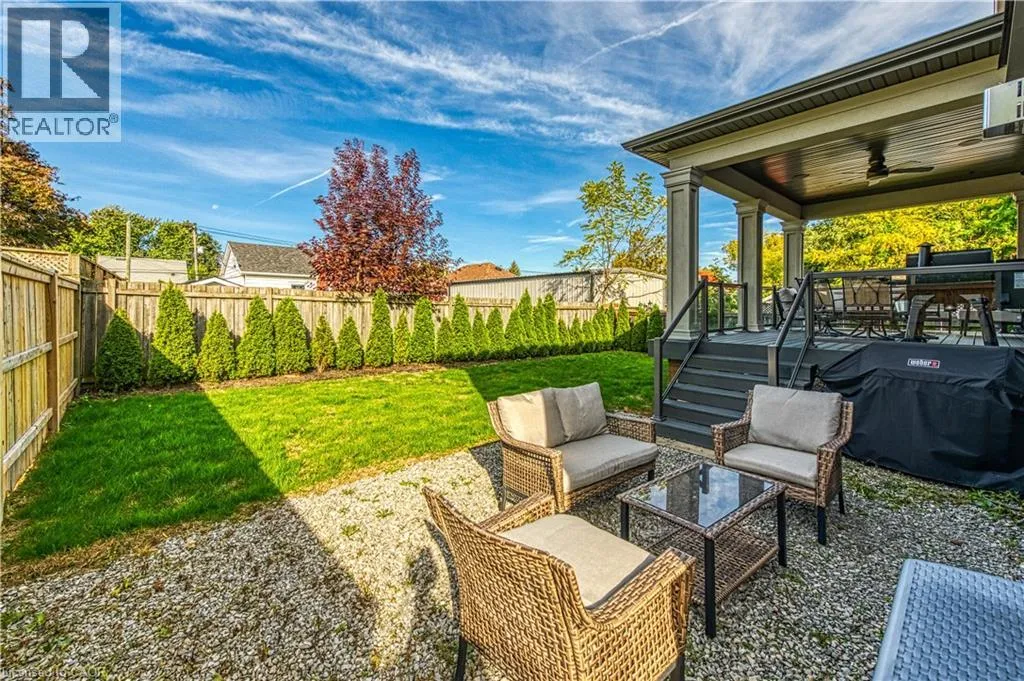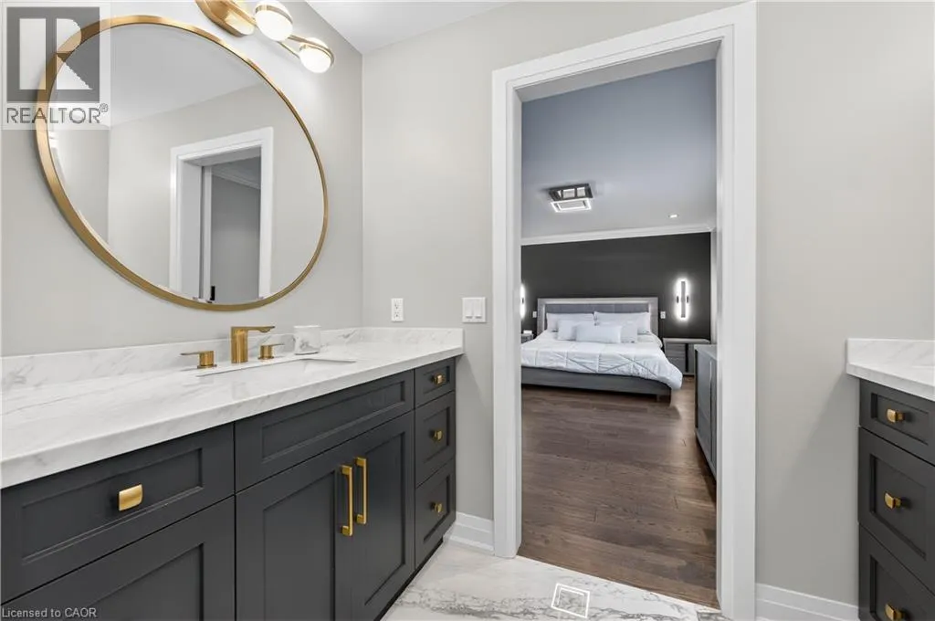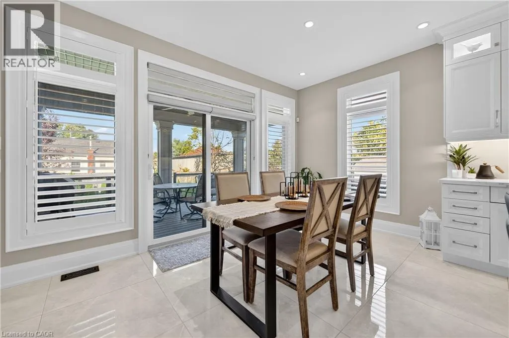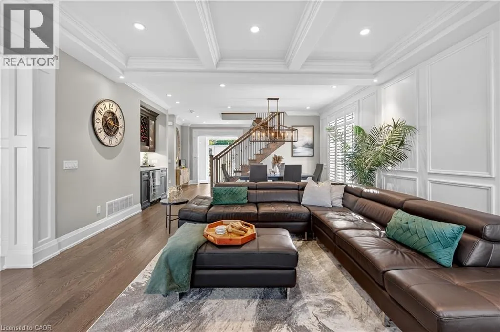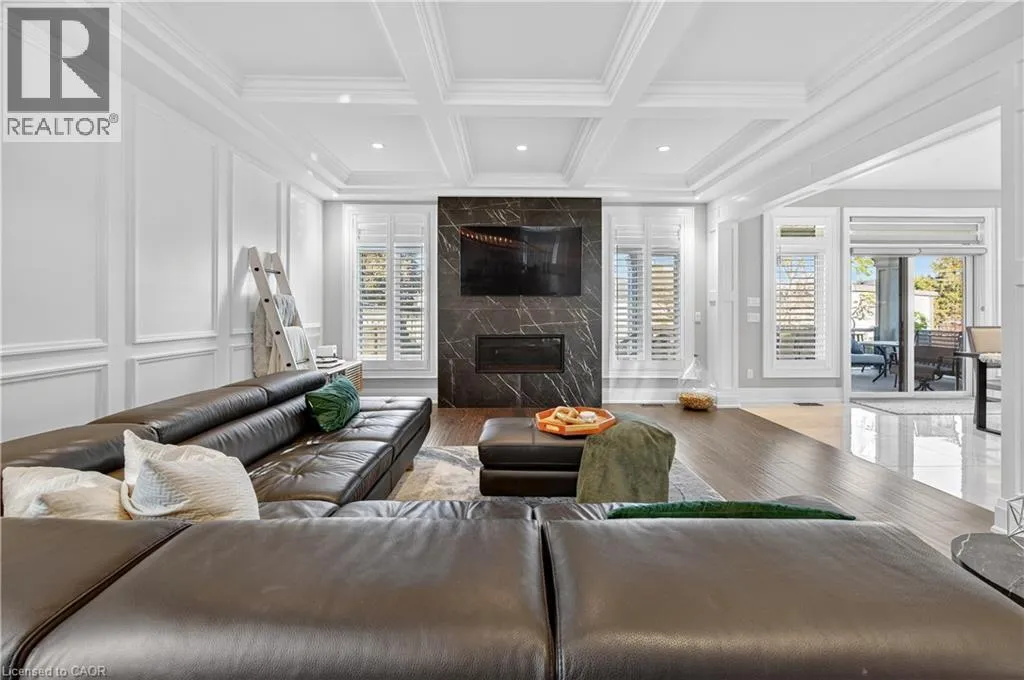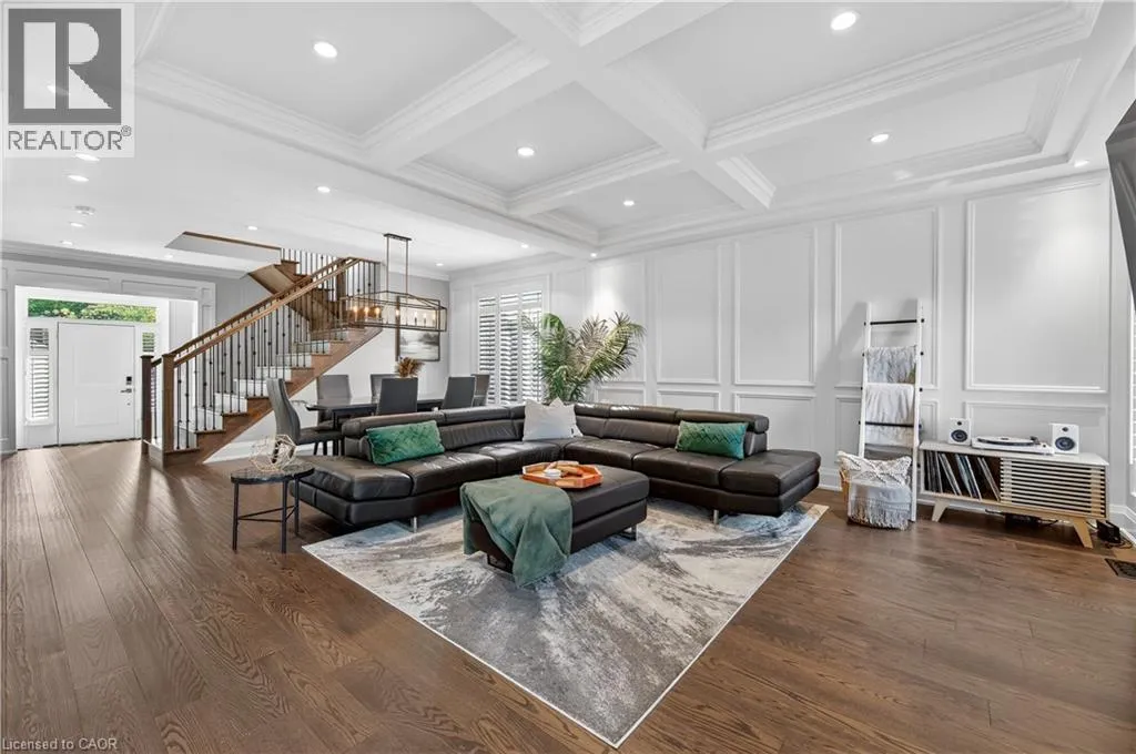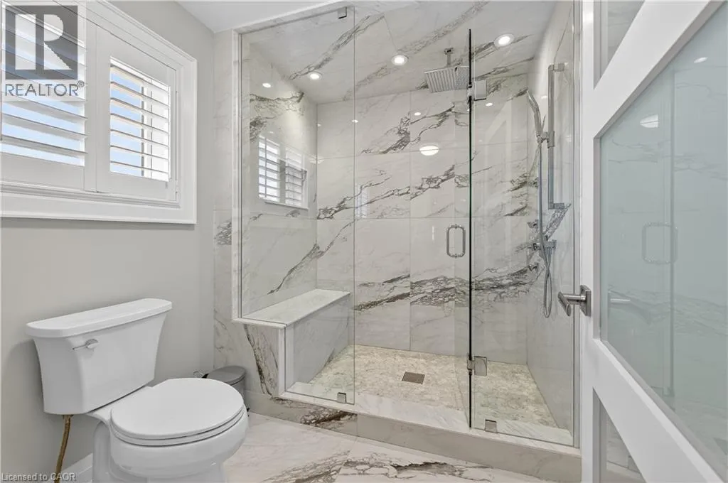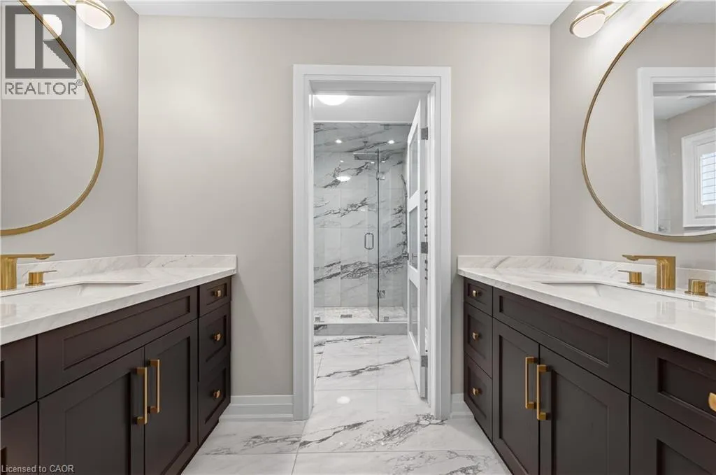 Upper Wellington & Fennell Prepare to be impressed by this meticulously crafted, fully custom 3-bedroom, 2.5-bathroom residence offering 2,531 sq ft of luxurious living on a generous 50x108 ft lot. From the moment you arrive, the homeâs full brick and stone façade, arched windows, and covered porch speak to the quality and pride of ownership throughout. Inside, every detail is elevated â engineered hardwood and porcelain tile span the entire home. Solid wood interior doors, coffered ceilings, pot lights (including on all 4 sides of the homeâs exterior), and crown moulding define each space with sophistication. The kitchen is an entertainerâs dream, complete with custom cabinetry, quartz countertops, high-end appliances, in-ceiling speakers, and a spacious island. It opens effortlessly to a dining area and large living room anchored by a floor-to-ceiling stone gas fireplace and built-in wet bar. The primary suite is a sanctuary, offering a large walk-in closet with custom cabinetry and a dedicated makeup station. The ensuite bath includes a double vanity, quartz countertops, and a private water closet. Upstairs bathrooms also feature quartz surfaces and private toilet rooms for added convenience. A wide staircase enhances flow, and thoughtful extras include central vac with in-wall hose systems on every level, closet lighting throughout, and California shutters. Step outside to a covered back porch and fully fenced backyard where freshly planted cedars promise enhanced privacy in the seasons to come. The unfinished basement â with its own private side entrance and insulated subfloor â offers endless possibilities. With a double-car garage and four-car driveway, this property checks every box for luxury, comfort, and long-term livability. (id:27476)