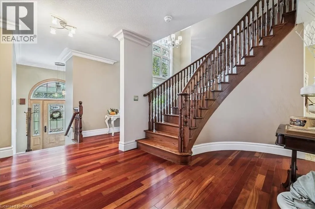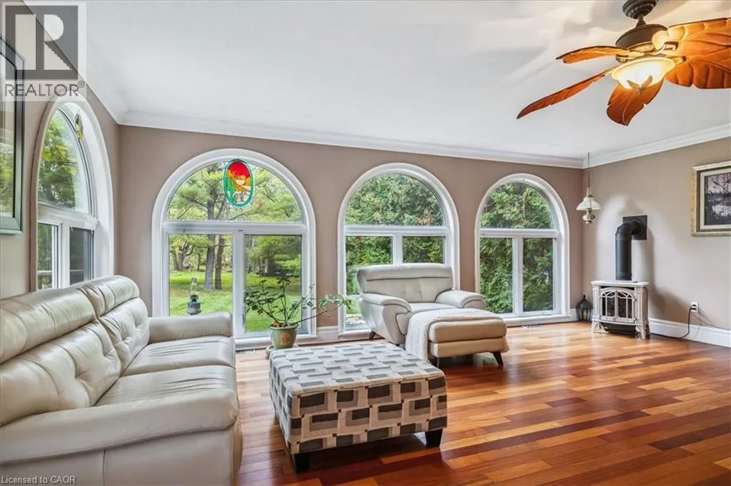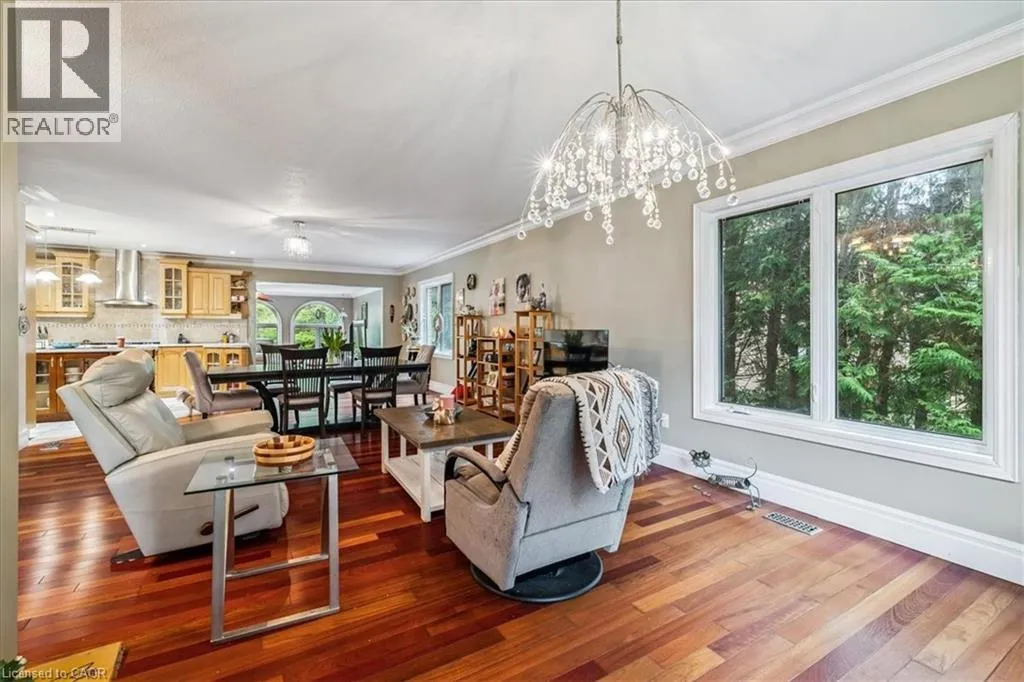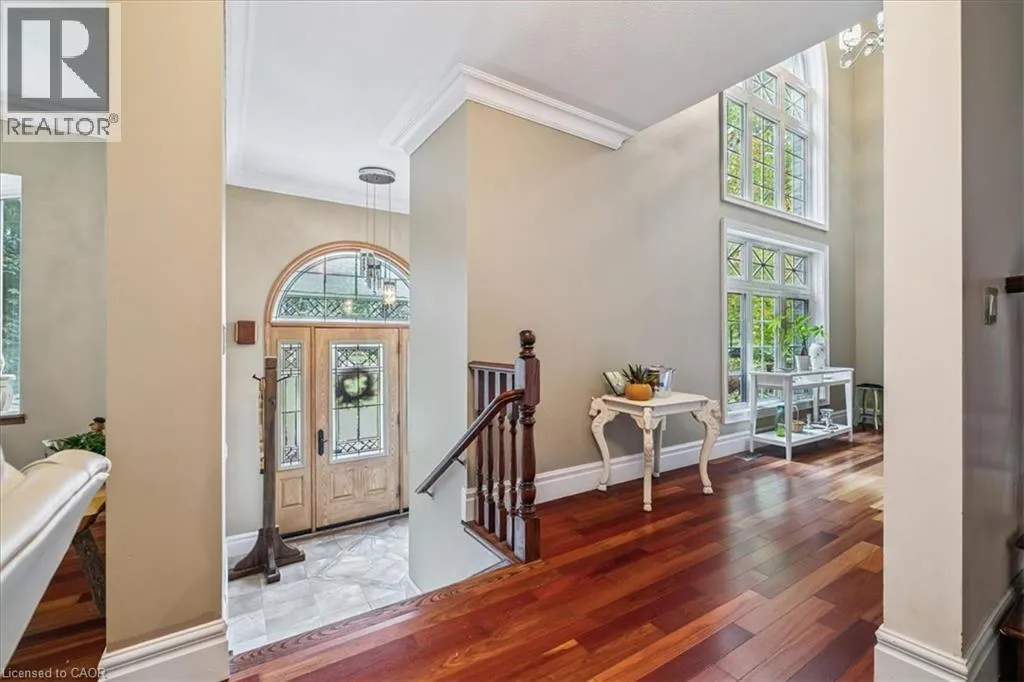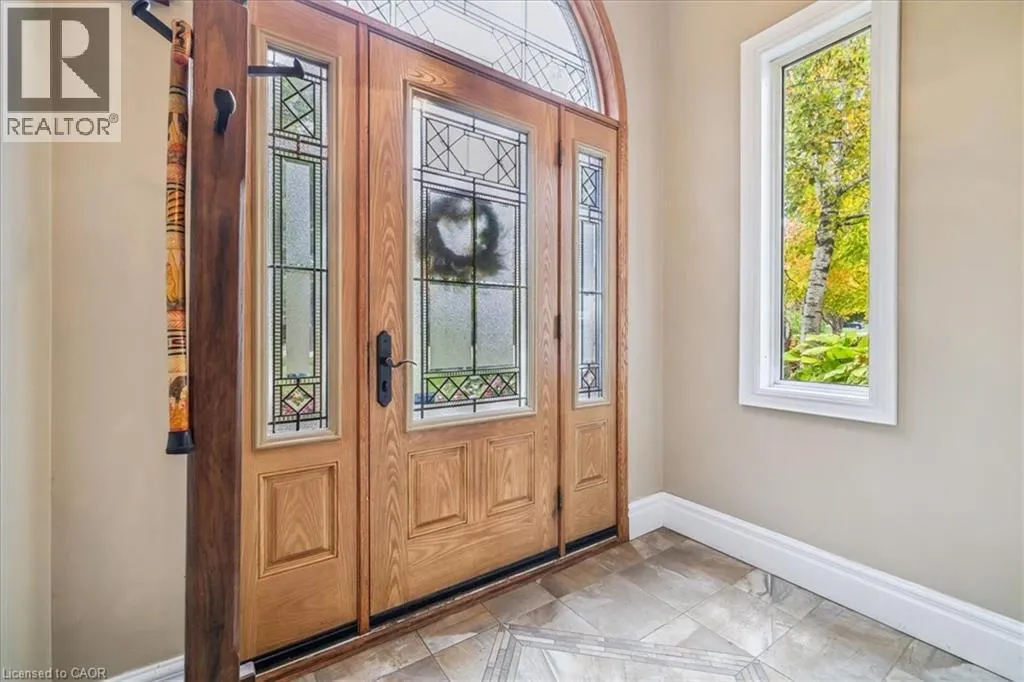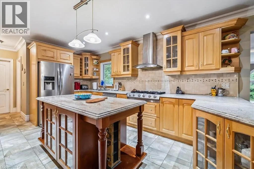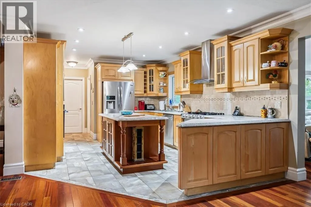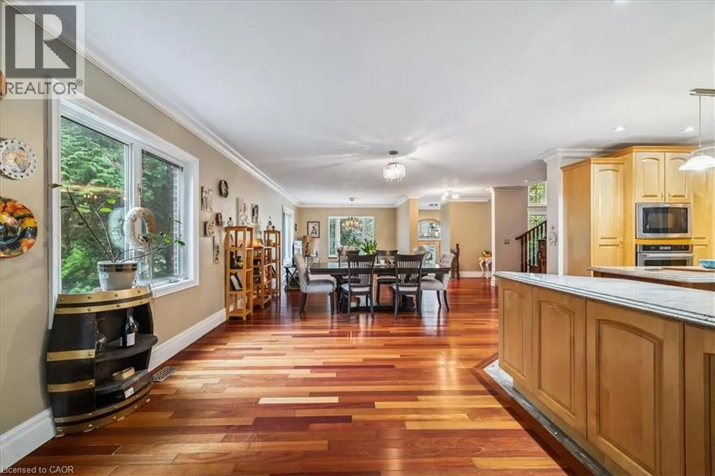 HWY 403 TO HWY 6 N TO 6TH CONCESSION RD E. TO GARDEN LANE Come to a Muskoka setting property to view this custom re-built beautiful home with an open in concept main floor living area with wood cabinet chefs kitchen perfect for entertaining . Sit in the brightly windowed family room with views to a spacious treed back yard and over looking pond with water spout & falls. This home is carpet free with Brazilian hardwood flooring & with copper staircase. The house features black granite walk ways & a cedar shake & copper roof eaves through. Enjoy your summers on a 20x25 cedar deck adjacent to your massive back fire pit & bunky. The lower level is completely finished with an inside walk up to the garage featuring a potential in law suite. Country living at its best but a close commute to schools, shopping, places of worship, parks, Hwys & most other amenities. Viewing is essential to appreciate this beautiful family home. (id:27476)