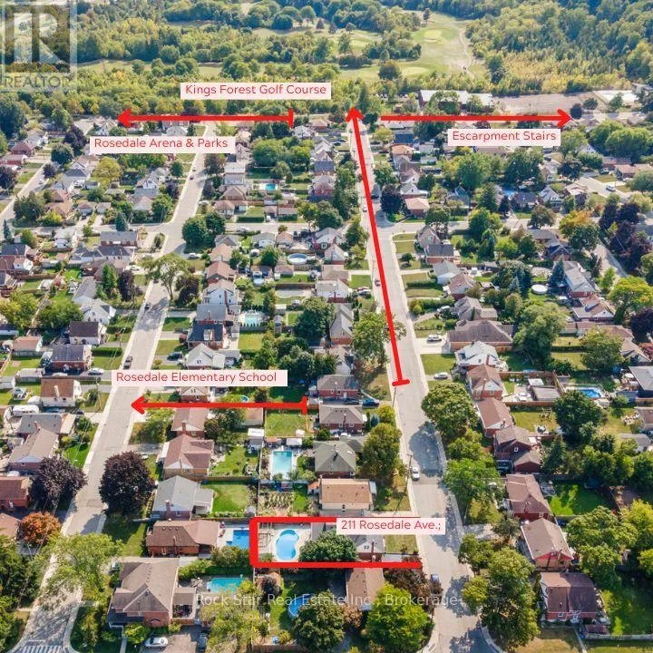 Cross Streets: Rosedale Ave. & Dundonald Ave. ** Directions: Lawrence Rd. To Rosedale Ave. Lifestyle meets location at 211 Rosedale Avenue - a rare offering in one of Hamilton's most desirable pockets. Just steps to Kings Forest Golf Club, Rosedale Arena, nature trails, and the Escarpment Rail Trail, this home puts recreation and convenience right at your doorstep. Inside, you'll find 3 bedrooms, 2 bathrooms, and exceptional living space, including the bright, open-concept addition of the Great Room with cathedral ceilings, skylights, and California shutters - the perfect backdrop for gatherings of any size.The spacious kitchen features a large island, tons of prep space, and room for casual dining. Step through the Great Room to a covered outdoor kitchen, overlooking the in-ground pool in the private, fully fenced backyard - this house is truly an entertainer's dream for all seasons. A main-floor bedroom/office and stylish double-sink bathroom add flexibility. Upstairs offers two more bedrooms, and the finished lower level includes a huge recreation room, office/gym space, full bathroom, and laundry room with plenty of storage space. If you're looking for a home that delivers space, style, and a standout location, this is the one. Welcome home to 211 Rosedale. (id:27476)