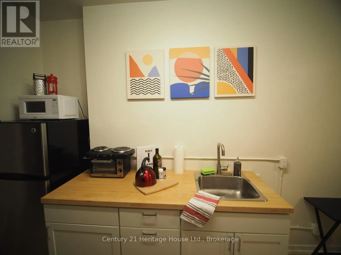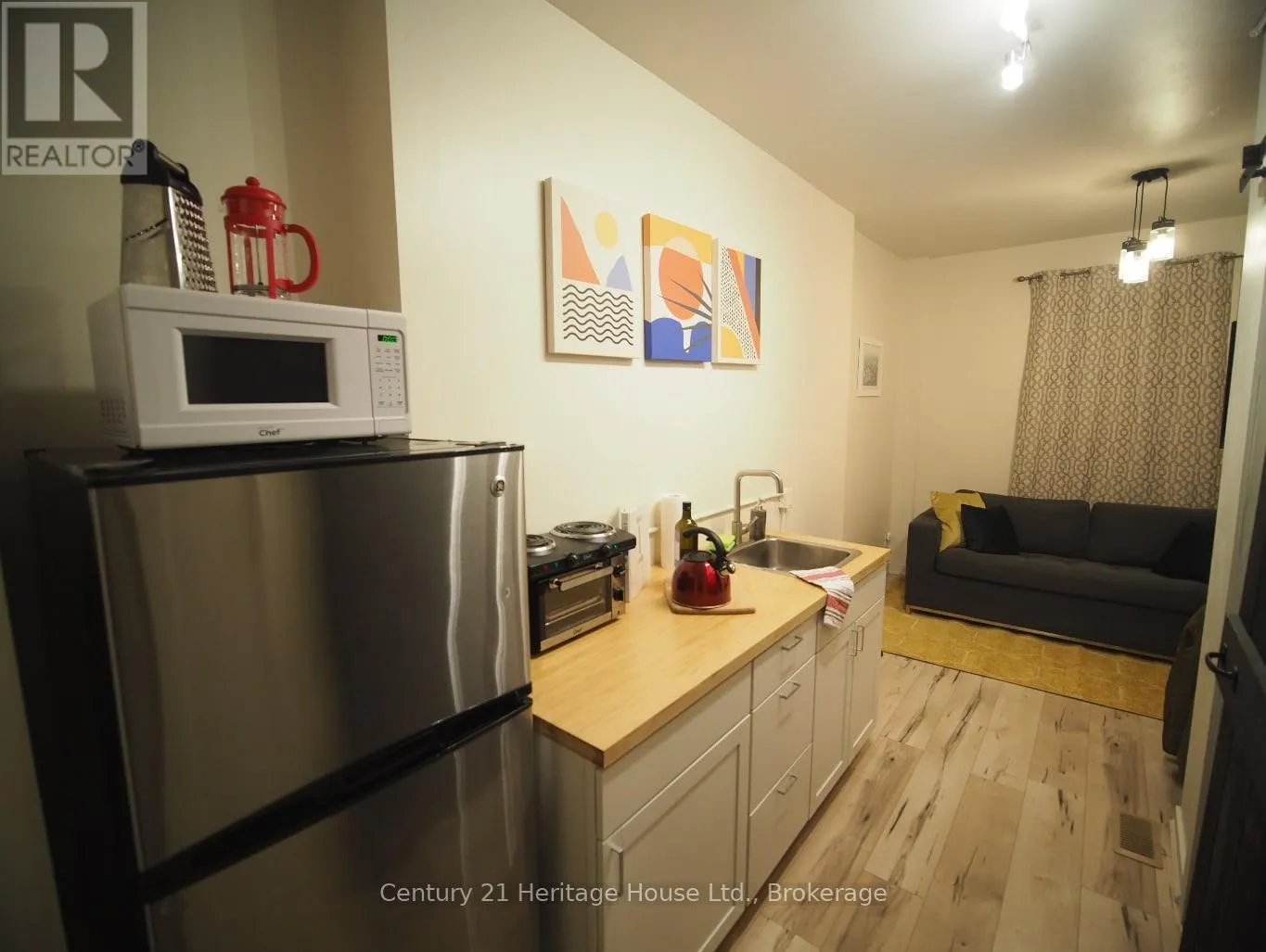 Cross Streets: Wilson St and Wellington St N. ** Directions: Wilson St and Wellington St. Welcome to Unit D-210 Wilson Street, a newly renovated one-bedroom, one-bathroom unit located in the heart of Hamilton's vibrant Lansdale neighborhood. This cozy, modern retreat features a private entrance, open-concept living area, and a fully equipped kitchenette with fridge, stove, butcher block countertops, and ample cabinet space. The bedroom offers a peaceful space to unwind, while the updated 3-piece bathroom includes a walk-in glass shower and porcelain vanity. Rent is all-inclusive covering water, gas, and electricity for maximum convenience. Enjoy on-site card-operated laundry with tap-to-pay capability, hi-efficiency central heating and A/C, and easy access to street parking and public transit. Located just five minutes from Centre Mall, the Claremont Access, and St. Josephs Healthcare, this unit offers both comfort and connectivity. Experience elevated urban living in a thoughtfully designed space. (id:27476)