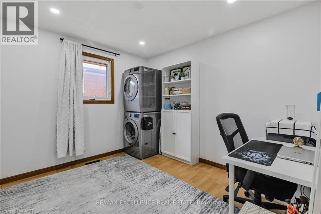 Dewitt Road To Juniper Drive Welcome to 102 Juniper Drive, a well maintained 3-level detached backsplit situated on a massive premium corner lot in a desirable Stoney Creek neighborhood. This spacious 5 bedroom, 2 bathroom home features a functional layout with a fully finished second level offering ample space for extended family living or future in-law suite potential. The lower level remains unfinished, providing an excellent opportunity to customize additional living space or rental setup. Recent upgrades (within past 2 years) include newer appliances (fridge, gas stove, dishwasher, washer & dryer), energy-efficient pot lights on both main and second levels, fresh paint with feature wall accents, modified kitchen and bathrooms, new fence and enhanced security with cameras and video doorbell. The finished second level includes two additional bedrooms, updated carpet-free flooring. With a single car garage and a double driveway, this home offers space, comfort, and future flexibility. Located in a family friendly neighborhood close to schools, parks, shopping, and highway access, this is an ideal home for multi-generational living or investment. (id:27476)