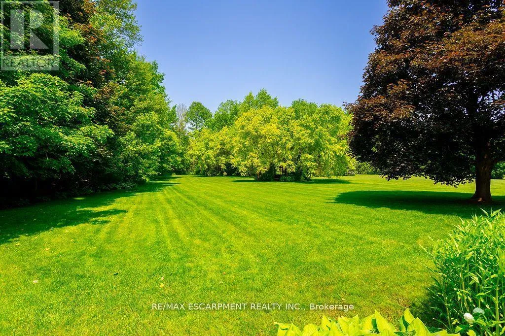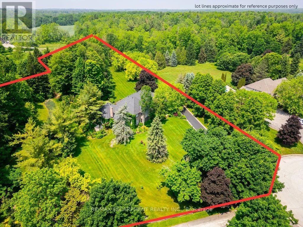 Cross Streets: Carlisle Road & Centre Road. ** Directions: Carlisle Road - Flamborough Hills - Acredale - Blackberry. Welcome to 27 Blackberry Place a truly exceptional luxury estate nestled at the end of a prestigious cul-desac in the heart of Carlisle. Set on a sprawling and completely private 2.12-acre lot, this distinguished residence is enveloped by professionally landscaped grounds, featuring curated gardens and a winding driveway. This home offers over 7,791 sq ft, timeless design and modern refinement. The soaring two storey foyer welcomes you, flanked by a formal dining room perfect for hosting, richly appointed wood panelled library with gas fireplace. Light filled updated chefs kitchen with custom cabinetry, soft-close drawers, wood island, marble countertops, high-end appliances, and a generous breakfast room. A soaring great room with vaulted ceilings flows into an oversized sunroom offering panoramic views of the private backyard. Corner office on the main level provides a peaceful work-from-home retreat. The upper level offers a secondary library or office leading into the luxurious primary suite with a spa-inspired ensuite featuring a soaker tub, rain shower, and an expansive dressing room. Three additional spacious bedrooms and 5-piece bathroom complete the second level. The fully finished lower level is an entertainers haven and ideal for multigenerational living or nanny, featuring a private entrance, large recreation and games rooms with built-ins and a gas fireplace, a wet bar with ambient lighting and beverage fridge, a guest bedroom, spa-style bathroom with heated floors, and three oversized storage rooms. Step into the backyard and experience resort-style living. Saltwater gunite pool with cascading rock waterfall, hot tub, expansive deck with pergola, raised vegetable gardens and charming gazebo surrounded by mature trees and lush privacy and acreage. Additional features include an oversized 3 car garage with EV charging capabilities, new furnace (2024), new AC (2024), roof (2019), most appliances (2024). LUXURY CERTIFIED. (id:27476)