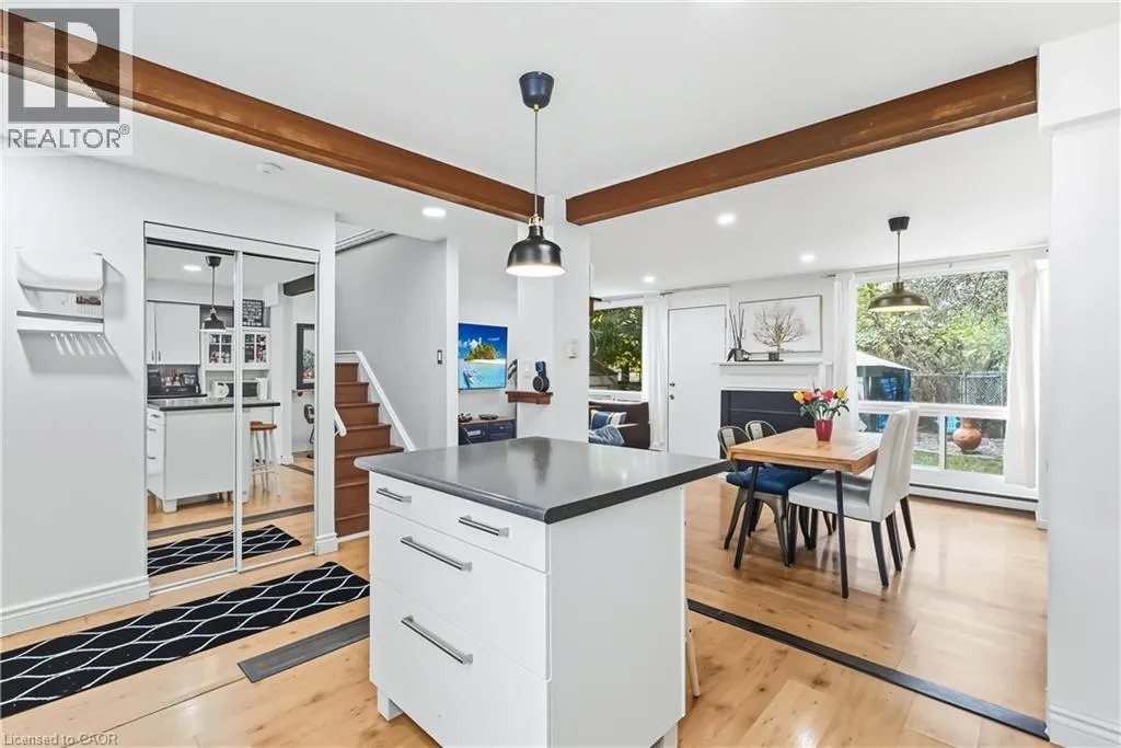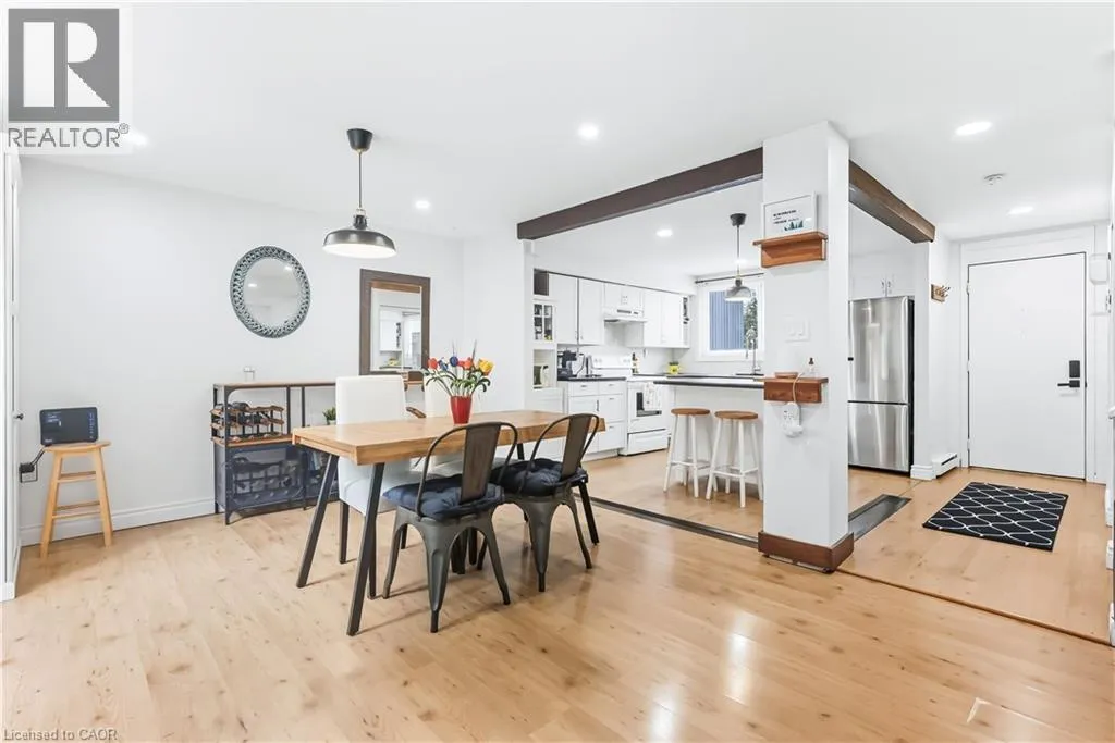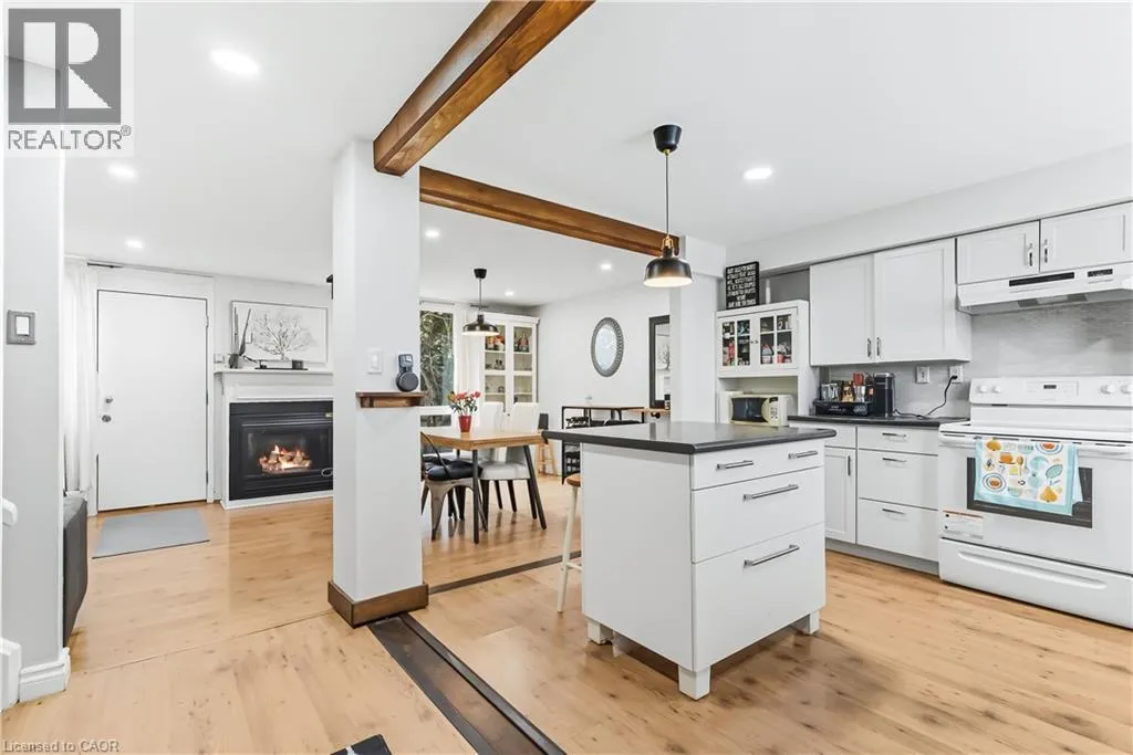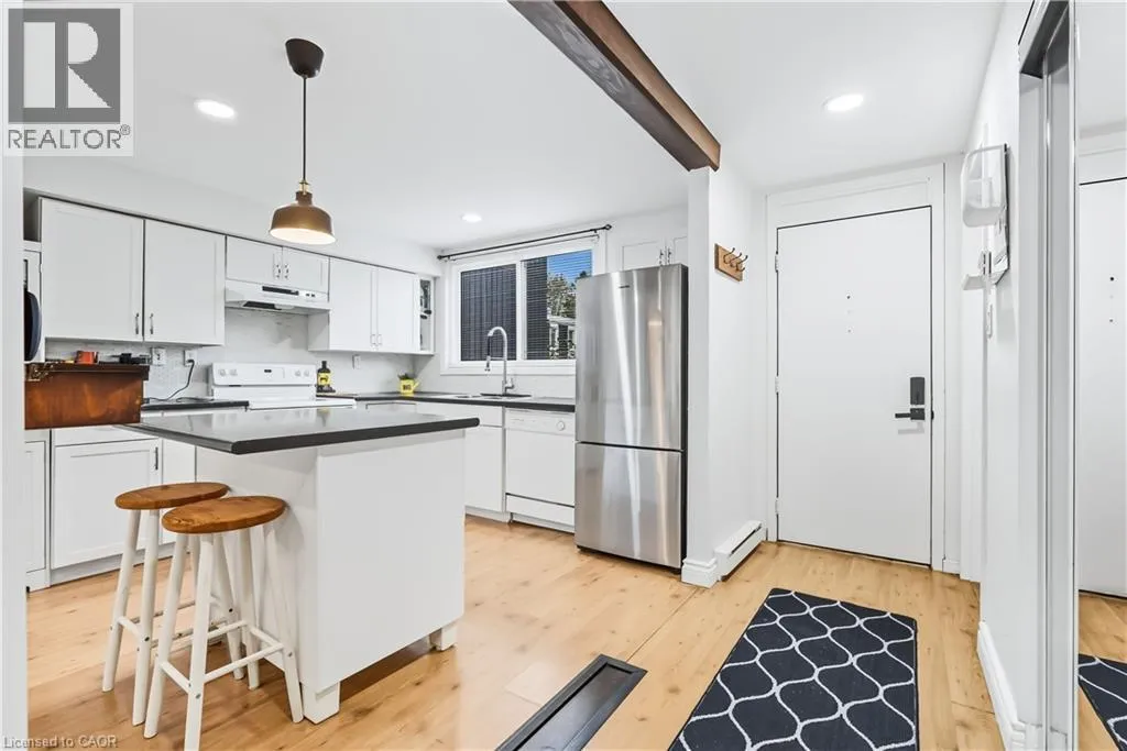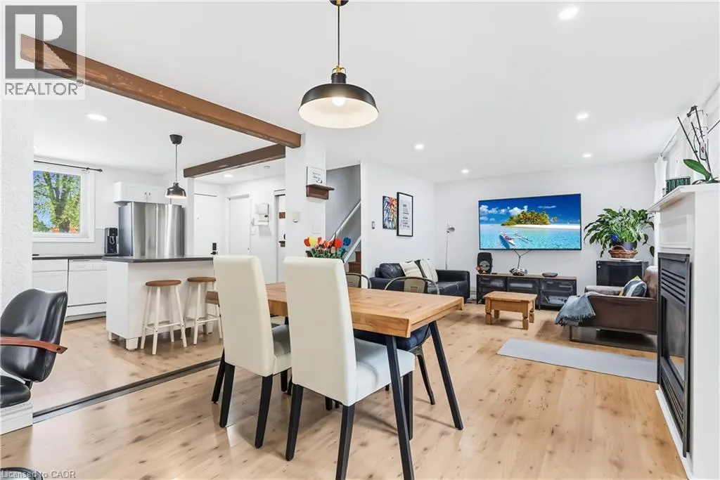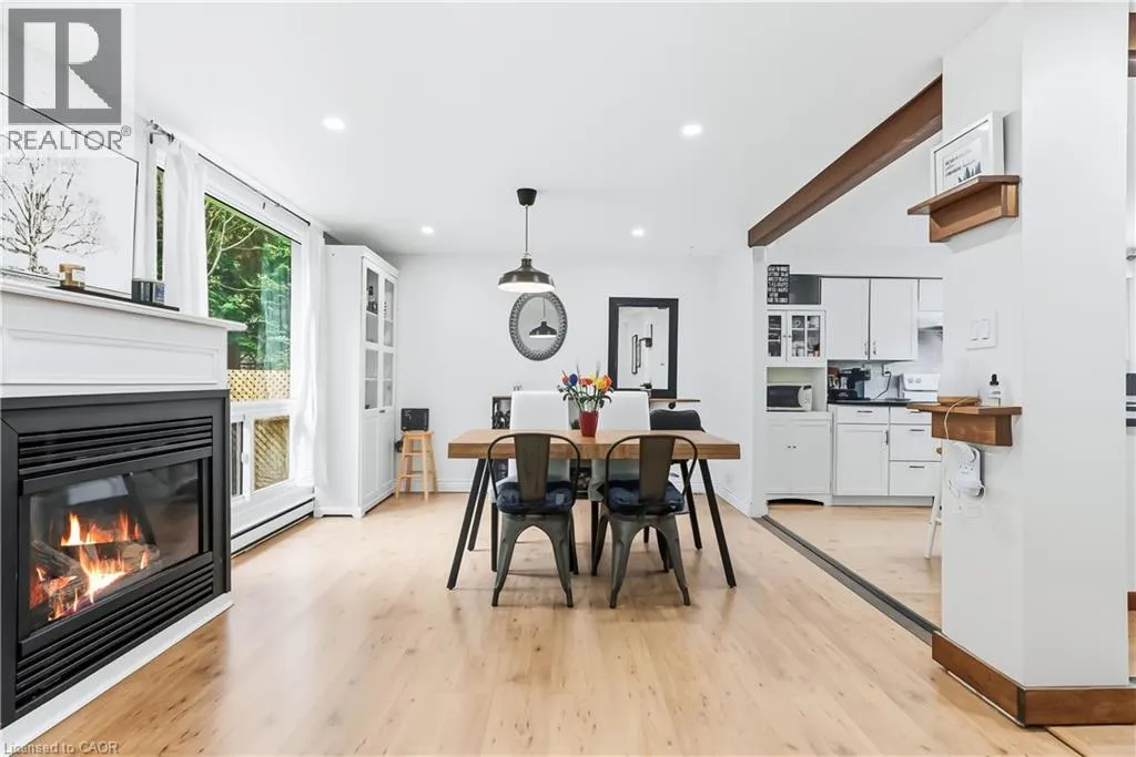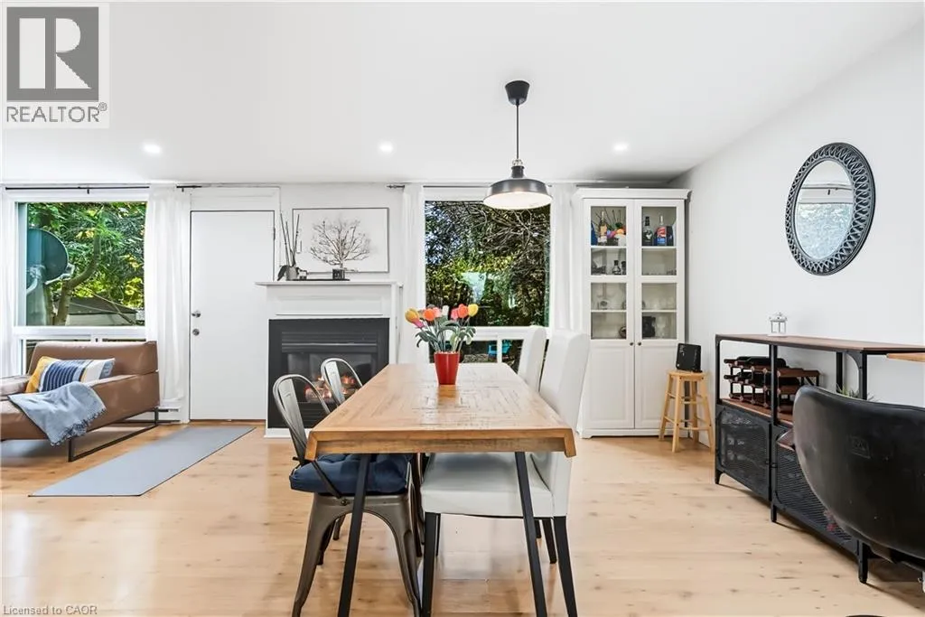 .Left on Limeridge Discover this bright and inviting 2-storey townhouse tucked away in a quiet West Mountain location. Featuring 3 spacious bedrooms, this home offers an open-concept main floor with a separate dining area, eat-in kitchen, and main-level laundry for added convenience. The cozy gas fireplace efficiently heats the entire home, keeping utility costs low. Enjoy abundant natural sunlight throughout and one of the few units offering two parking spots. Step outside to a fenced backyard that backs onto a peaceful ravine with no rear neighbours â complete with a shed for extra storage and a gazebo perfect for relaxing or entertaining. Located just minutes from major routes including the Alexander Lincoln Parkway, Limeridge Mall, schools, and amenities, this home blends comfort, convenience, and value in one perfect package. A must-see opportunity on the West Mountain! (id:27476)