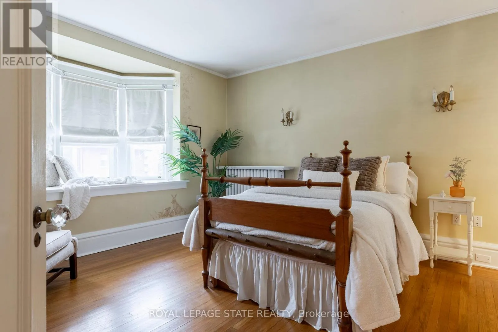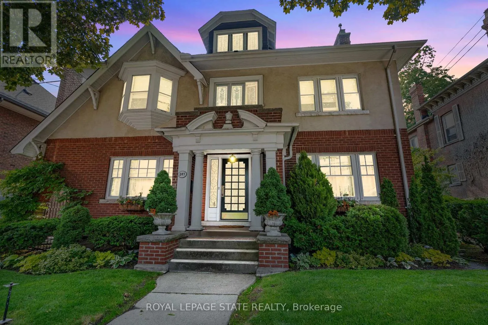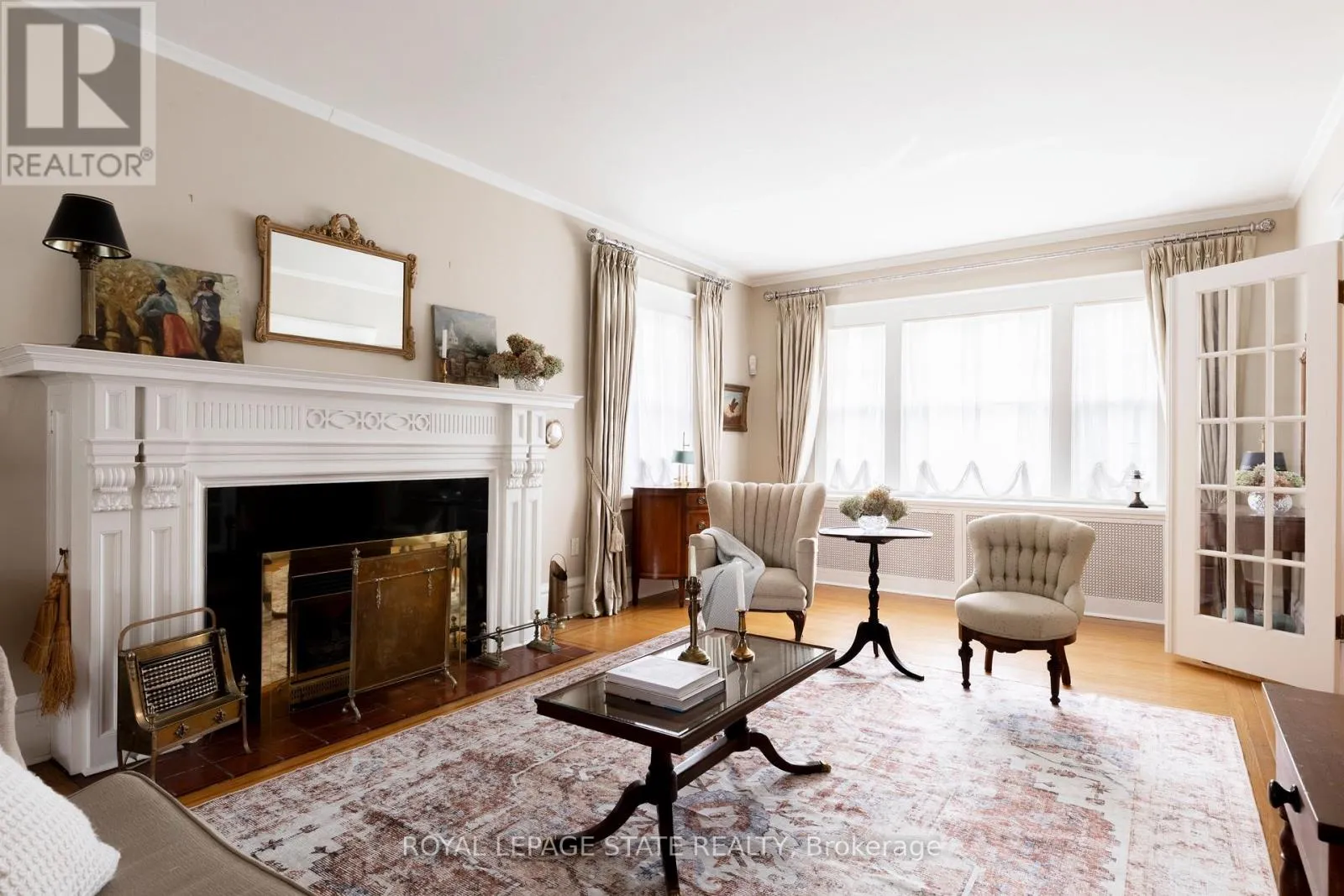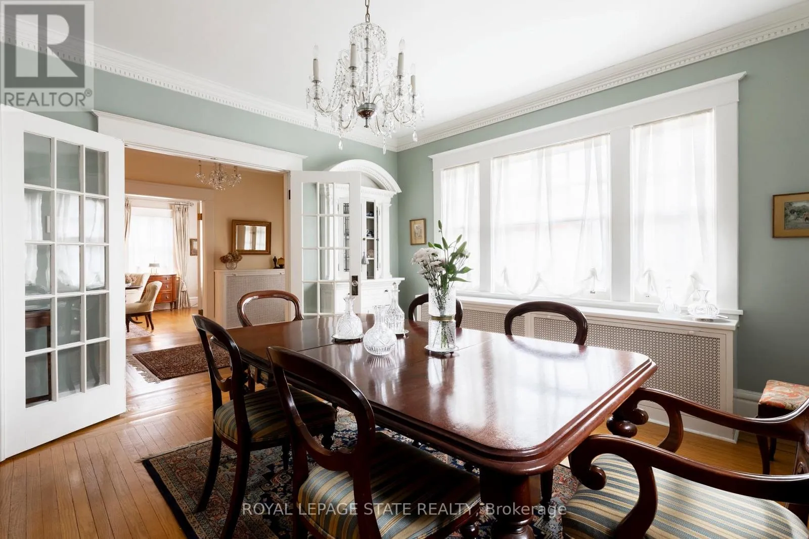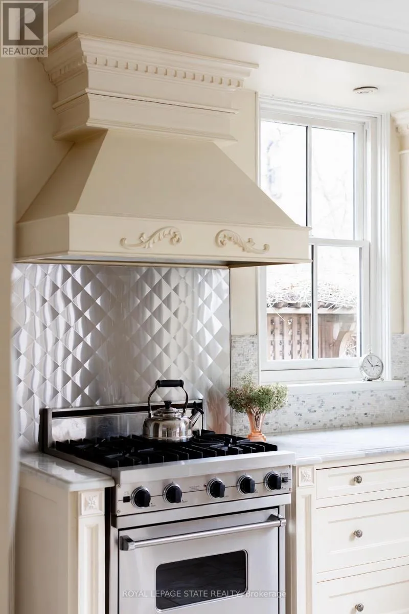 Cross Streets: Markland Street. ** Directions: From James S/Markland, W on Markland, N on MacNab S. This stately 2.5-stry residence sits on a mature 46' x 85.33' lot in Hamilton's prestigious Durand neighbourhood. Showcasing timeless curb appeal, the front walkway leads to a covered porch framed by Doric columns & an entry door w/ wrought-iron grillwork. Inside, a grand foyer w/ crown moulding, a sweeping staircase & French doors introduces elegant principal rms. The formal liv rm feat a gas FP, an intricate mantle w/ hidden side cabinet, & windows overlooking both gardens. The adjoining din rm impresses w/ built-in cabinetry, leaded stained glass, and rich millwork throughout. The kitchen is a showpiece, featuring heated limestone floors, custom cabinetry w/ beveled glass, marble counters, under-cab lighting, pantry, & premium S/S appliances incl a Viking gas range, Sub-Zero fridge, & Miele d/w. Surrounded by windows, it opens to a covered porch w/ a Phantom screen, perfect for indoor-outdoor living. A handy mudroom w/ dbl mirrored closet completes the main lvl. Heading up the main staircase, a landing of stained glass welcomes you to the 2nd level, feat a 25.9' x 13' primary suite w/ sitting area, dual closets, & access to a bright den/sunroom (heated flrs). 2 add'l bdrms - one w/ a bay window & ensuite, the other with garden views - plus a 4-pc bath w/ a jetted tub, stained glass, & hand-painted murals complete this lvl. The 3rd lvl offers a private bdrm retreat w/ a 3-pc ensuite, skylights, gas FP, storage, & cozy sitting nooks. The lower lvl adds laundry w/ custom cabinetry, a 2-pc bath, storage & workshop space. Outside, enjoy a private yard w/ a fountain, covered composite porch, retractable awning, gas BBQ hookup, detached garage + surfaced parking for 2 & security lighting. Add feat incl: hardwood flrs, custom window coverings, c/air, HEPA air purifier, a security sys & more. Walkable to the Locke St cafés, boutiques, art galleries, hospitals, GO Transit, parks & trails - Durand offers historic character & an unmatched lifestyle of quiet sophistication. (id:27476)