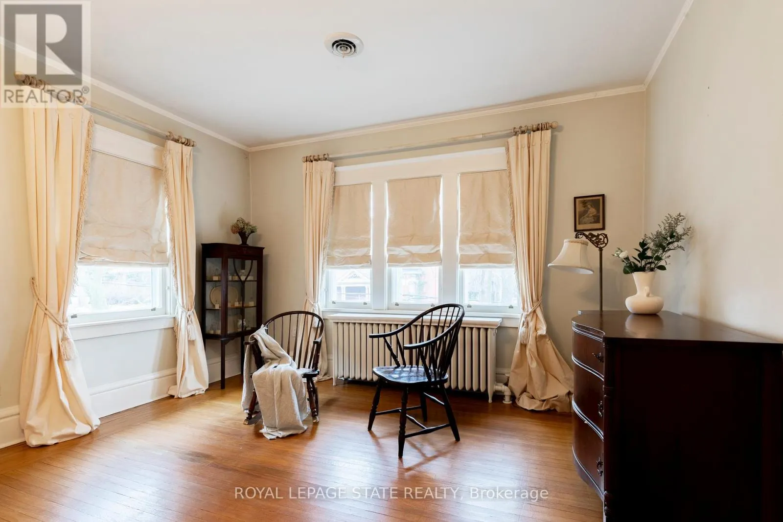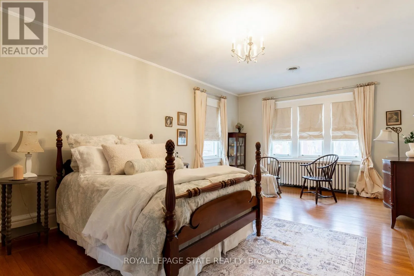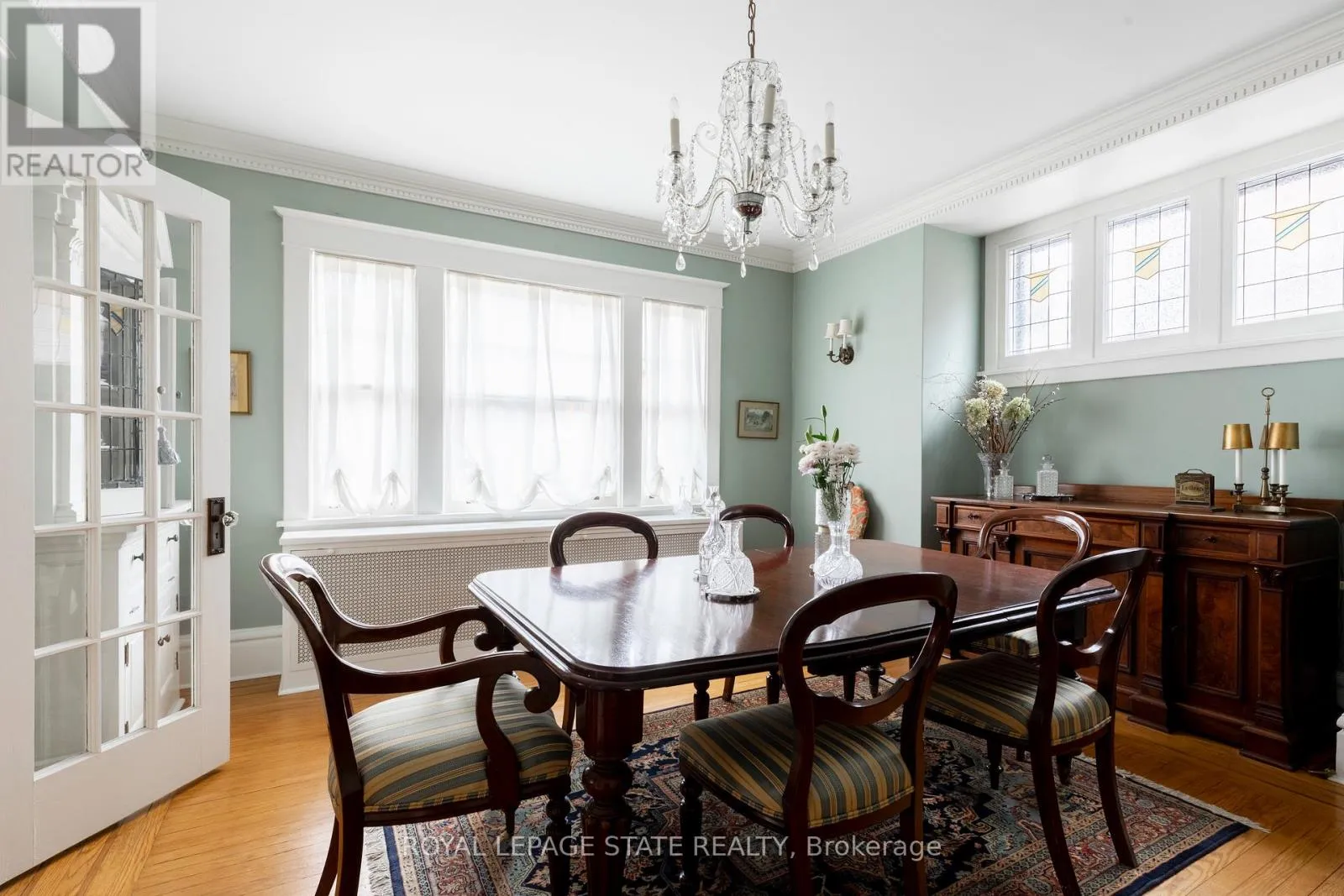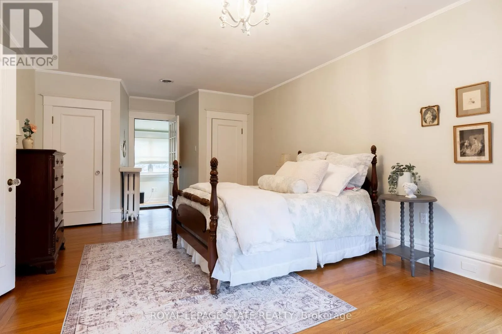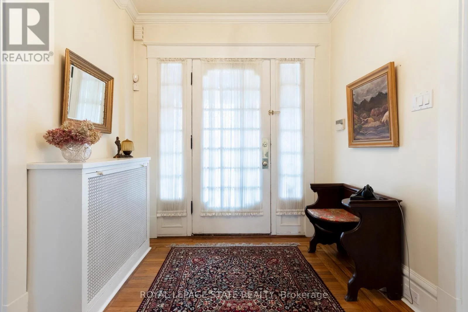 Cross Streets: Markland Street. ** Directions: From James S/Markland, W on Markland, N on MacNab S. This stately 2.5-stry residence sits on a mature 46' x 85.33' lot in Hamilton's prestigious Durand neighbourhood. Showcasing timeless curb appeal, the front walkway leads to a covered porch framed by Doric columns & an entry door w/ wrought-iron grillwork. Inside, a grand foyer w/ crown moulding, a sweeping staircase & French doors introduces elegant principal rms. The formal liv rm feat a gas FP, an intricate mantle w/ hidden side cabinet, & windows overlooking both gardens. The adjoining din rm impresses w/ built-in cabinetry, leaded stained glass, and rich millwork throughout. The kitchen is a showpiece, featuring heated limestone floors, custom cabinetry w/ beveled glass, marble counters, under-cab lighting, pantry, & premium S/S appliances incl a Viking gas range, Sub-Zero fridge, & Miele d/w. Surrounded by windows, it opens to a covered porch w/ a Phantom screen, perfect for indoor-outdoor living. A handy mudroom w/ dbl mirrored closet completes the main lvl. Heading up the main staircase, a landing of stained glass welcomes you to the 2nd level, feat a 25.9' x 13' primary suite w/ sitting area, dual closets, & access to a bright den/sunroom (heated flrs). 2 add'l bdrms - one w/ a bay window & ensuite, the other with garden views - plus a 4-pc bath w/ a jetted tub, stained glass, & hand-painted murals complete this lvl. The 3rd lvl offers a private bdrm retreat w/ a 3-pc ensuite, skylights, gas FP, storage, & cozy sitting nooks. The lower lvl adds laundry w/ custom cabinetry, a 2-pc bath, storage & workshop space. Outside, enjoy a private yard w/ a fountain, covered composite porch, retractable awning, gas BBQ hookup, detached garage + surfaced parking for 2 & security lighting. Add feat incl: hardwood flrs, custom window coverings, c/air, HEPA air purifier, a security sys & more. Walkable to the Locke St cafés, boutiques, art galleries, hospitals, GO Transit, parks & trails - Durand offers historic character & an unmatched lifestyle of quiet sophistication. (id:27476)
