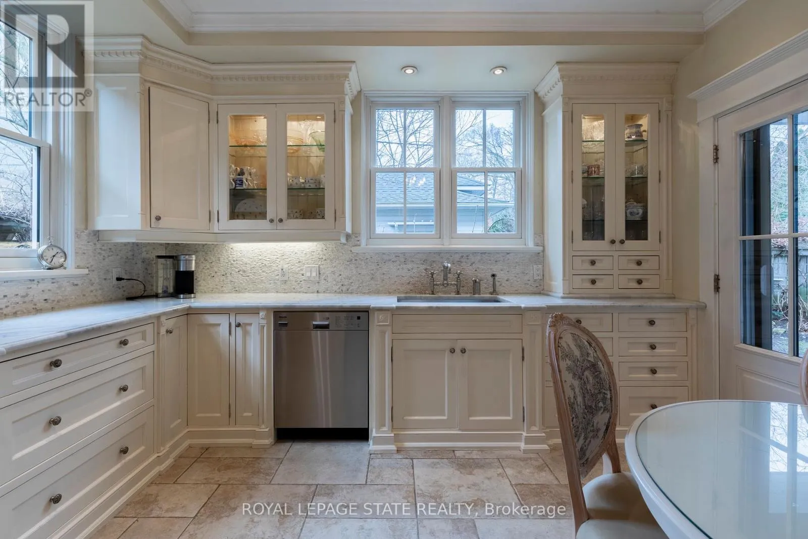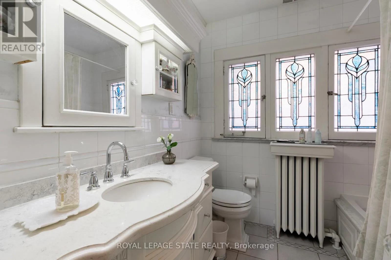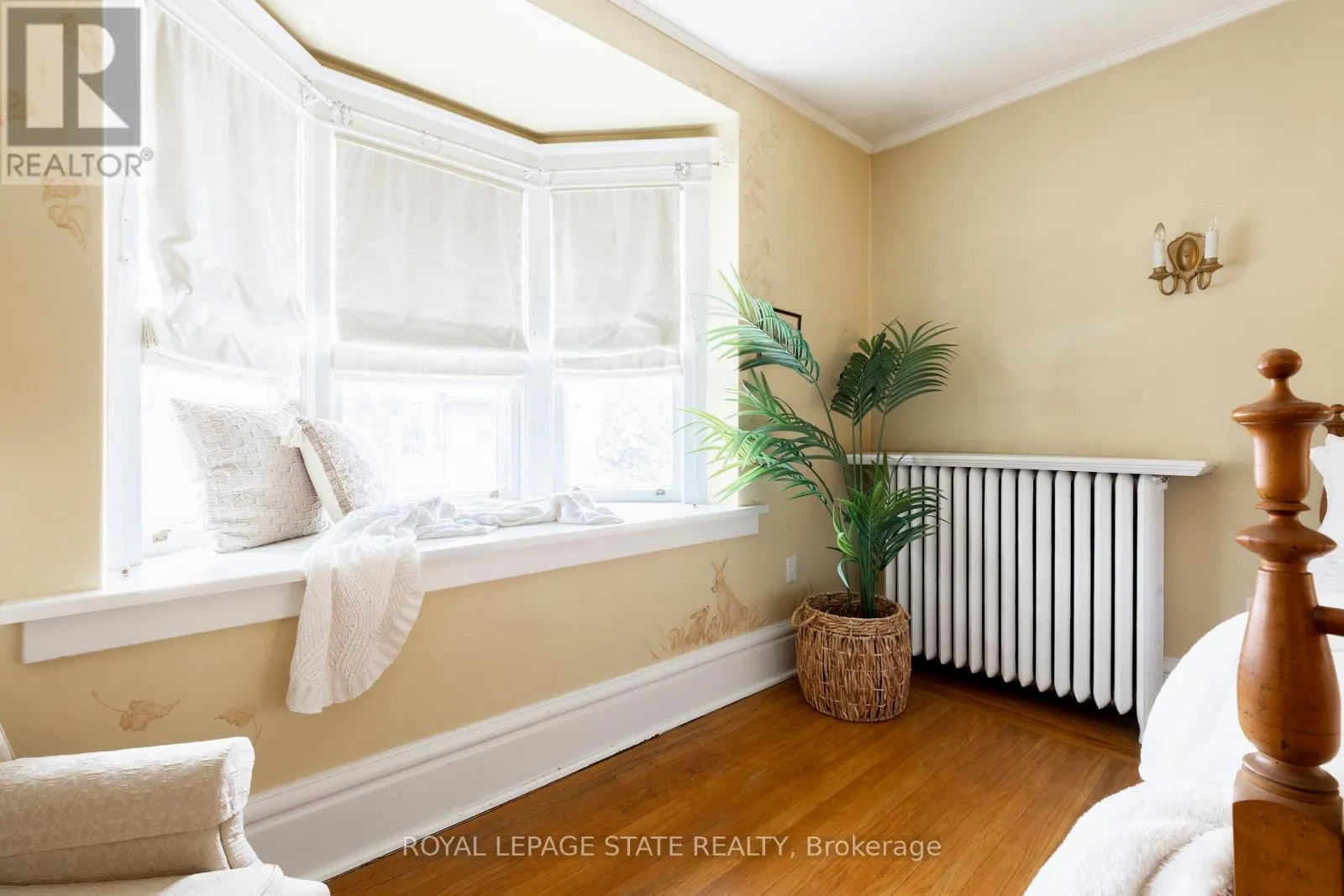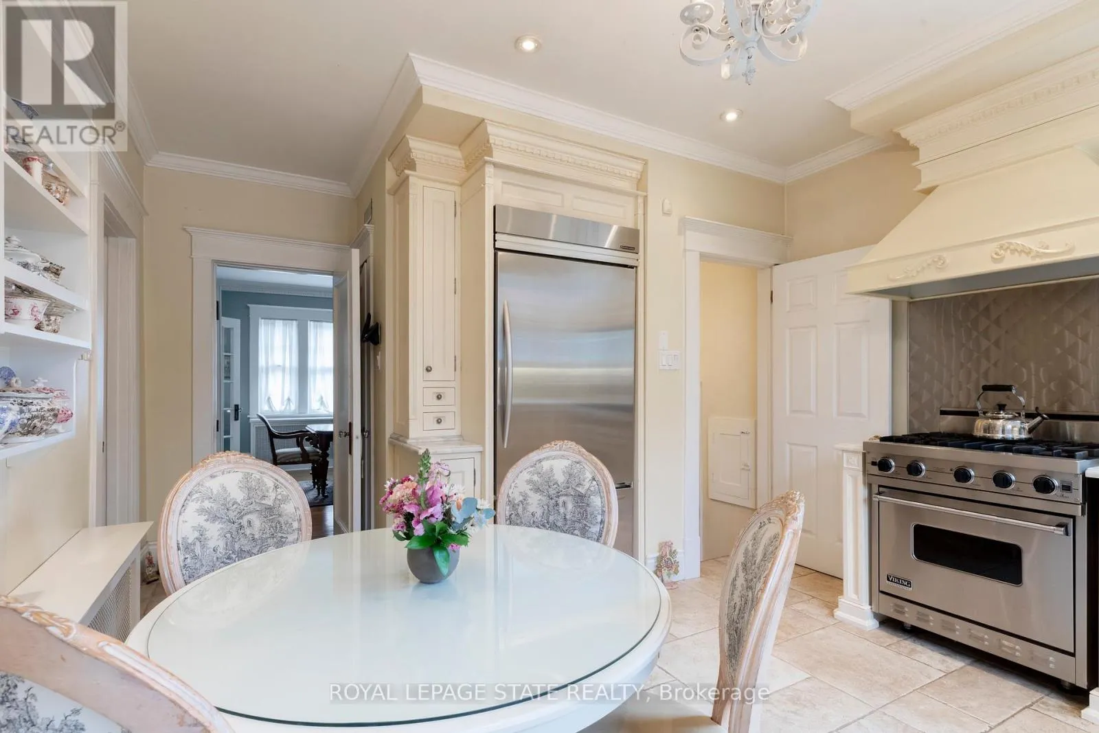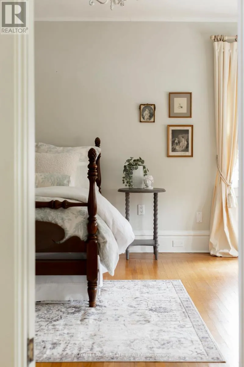 Cross Streets: Markland Street. ** Directions: From James S/Markland, W on Markland, N on MacNab S. This stately 2.5-stry residence sits on a mature 46' x 85.33' lot in Hamilton's prestigious Durand neighbourhood. Showcasing timeless curb appeal, the front walkway leads to a covered porch framed by Doric columns & an entry door w/ wrought-iron grillwork. Inside, a grand foyer w/ crown moulding, a sweeping staircase & French doors introduces elegant principal rms. The formal liv rm feat a gas FP, an intricate mantle w/ hidden side cabinet, & windows overlooking both gardens. The adjoining din rm impresses w/ built-in cabinetry, leaded stained glass, and rich millwork throughout. The kitchen is a showpiece, featuring heated limestone floors, custom cabinetry w/ beveled glass, marble counters, under-cab lighting, pantry, & premium S/S appliances incl a Viking gas range, Sub-Zero fridge, & Miele d/w. Surrounded by windows, it opens to a covered porch w/ a Phantom screen, perfect for indoor-outdoor living. A handy mudroom w/ dbl mirrored closet completes the main lvl. Heading up the main staircase, a landing of stained glass welcomes you to the 2nd level, feat a 25.9' x 13' primary suite w/ sitting area, dual closets, & access to a bright den/sunroom (heated flrs). 2 add'l bdrms - one w/ a bay window & ensuite, the other with garden views - plus a 4-pc bath w/ a jetted tub, stained glass, & hand-painted murals complete this lvl. The 3rd lvl offers a private bdrm retreat w/ a 3-pc ensuite, skylights, gas FP, storage, & cozy sitting nooks. The lower lvl adds laundry w/ custom cabinetry, a 2-pc bath, storage & workshop space. Outside, enjoy a private yard w/ a fountain, covered composite porch, retractable awning, gas BBQ hookup, detached garage + surfaced parking for 2 & security lighting. Add feat incl: hardwood flrs, custom window coverings, c/air, HEPA air purifier, a security sys & more. Walkable to the Locke St cafés, boutiques, art galleries, hospitals, GO Transit, parks & trails - Durand offers historic character & an unmatched lifestyle of quiet sophistication. (id:27476)