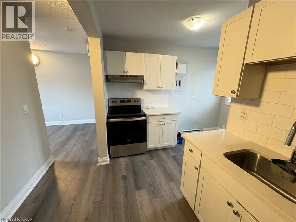 Cannon St E to Gibson Located in the heart of Hamiltonâs Gibson/Stipley neighbourhood, this charming main-floor unit in a well-maintained 6-unit building is a place youâll be proud to call home. Flooded with natural light from its large windows, this unit offers a bright and inviting living space. The sleek white kitchen features modern stainless steel appliances, providing both style and functionality and room for kitchen table and chairs. The primary bedroom easily accommodates queen-sized furniture, ensuring a restful retreat, while the second room is perfect as a guest bedroom or home office. The updated 3-piece bathroom features a sleek walk-in shower, adding a modern touch. Luxury laminate flooring runs throughout the unit, combining style with durability for a polished look. For added convenience, laundry facilities are available in the neighbouring building at 83 Gibson. Don't miss the opportunity to make this beautiful unit your next home! $1595 plus heat and hydro (id:27476)