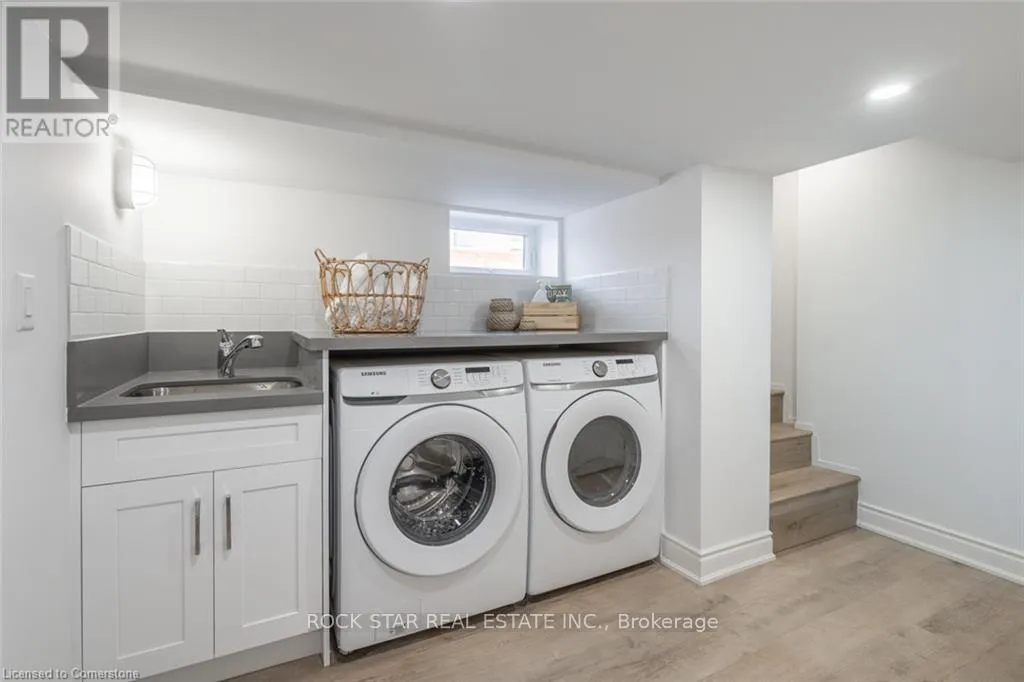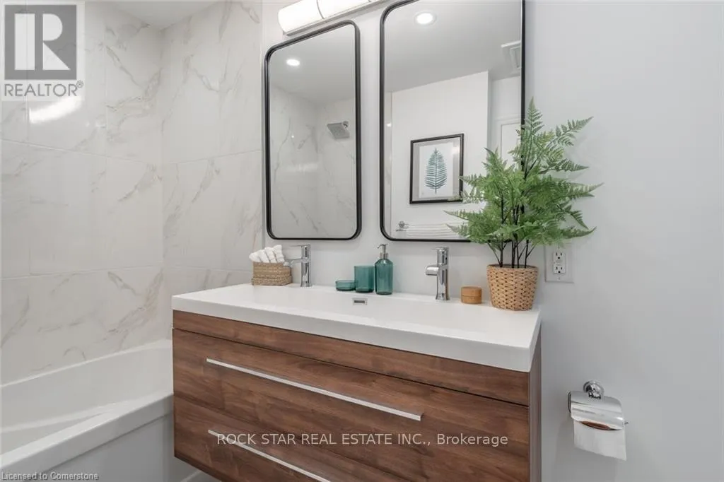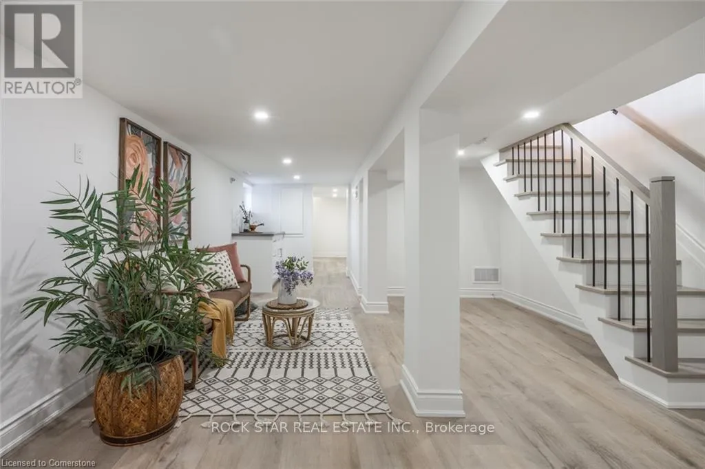 Cross Streets: Barnesdale Ave. ** Directions: MAIN ST E, NORTH ON BARNESDALE AVE S TO EDWARD. Luxury Living with Investment Potential A Fully Renovated Home with ADU Opportunity Step into hotel quality luxury in this meticulously renovated home, where top-tier finishes and thoughtful design create a bright, sophisticated, and move-in-ready space. This property offers elevated modern living with the added potential of a third income-generating unit! The open-concept main floor feels straight out of a luxury boutique hotel, featuring designer flooring, a stylish powder room with a modern vanity and custom wallpaper. The gourmet chefs kitchen is a masterpiece, showcasing sleek white cabinetry, brand-new appliances, and a striking full-height tiled backsplash that adds a touch of contemporary elegance. Upstairs, you'll find two bright and spacious bedrooms, each with ample closet space and a tranquil atmosphere. The 4 piece bathroom rivals a five-star spa, boasting a double sink vanity, a luxurious deep soaking tub, a sleek glass-enclosed rainfall shower, and premium finishes throughout. The fully finished basement with a separate entrance offers incredible flexibility whether as an in-law suite, rental unit, or private guest space. It includes a beautiful wet bar, a 3-piece bathroom with hotel-inspired finishes, a laundry area with an additional sink and brand-new washer & dryer, plus plenty of storage. A huge opportunity awaits with the detached garage, already equipped with hydro. This space can be converted into an Additional Dwelling Unit (ADU), creating a valuable third unit for rental income, a guest house, or a private workspace. With the city's push for more housing solutions, this could be a lucrative investment! Top-to-Bottom Upgrades for Peace of Mind: New roof shingles (2018) ,New AC & Furnace (2021), Updated plumbing & electrical, Fully finished basement with interior waterproofing, New windows (2021), Detached garage with hydro & automatic door opener (2021) ADU Potential (id:27476)