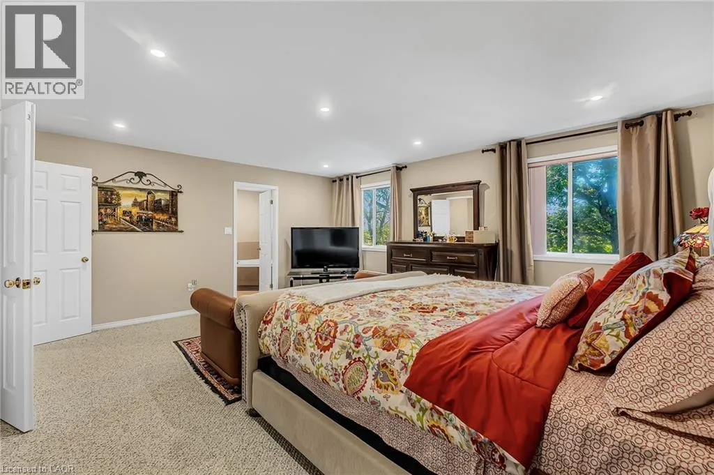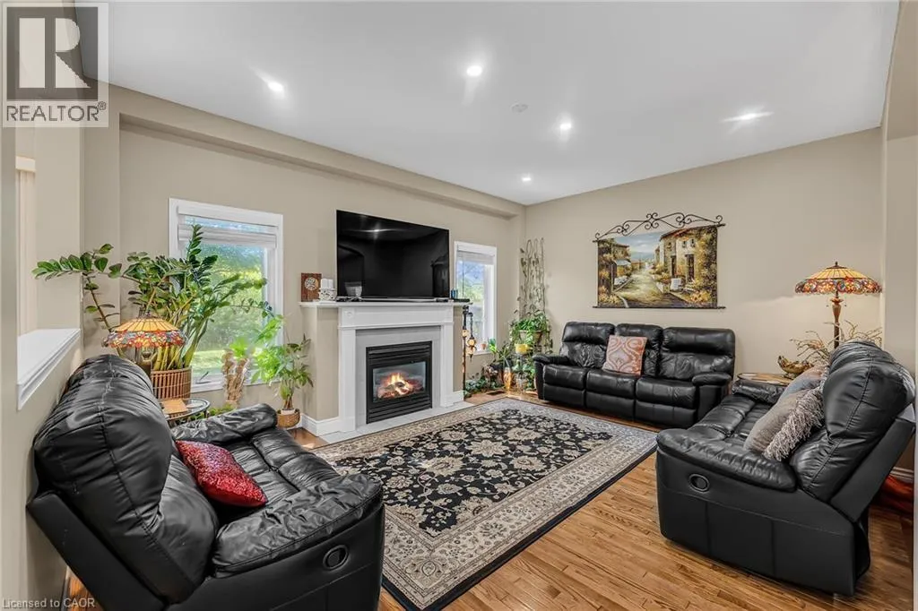 From Stone Church Road, turn onto Giovanna Drive, then continue onto Pantano Drive. Welcome to 35 Pantano Drive â a beautifully maintained all-brick 4+2 bedroom, 3.5-bath detached home offering over 3,000 sq. ft. of total living space, nestled on a quiet, family-friendly crescent on Hamilton Mountain. Designed with comfort and sophistication in mind, this elegant residence features 9 ft ceilings on the main floor, hardwood flooring, pot lights throughout, formal living and dining areas, a bright family room with a gas fireplace, and a high-end kitchen renovated in 2023, showcasing extended-height cabinetry, quartz countertops, a full-height backsplash, generous pantry storage, and premium stainless steel appliances. The second floor offers four generously sized bedrooms, including a spacious primary suite with a walk-in closet and private ensuite, as well as the convenience of an upper-level laundry room. All bathrooms are upgraded with quartz countertop vanities and stylish modern finishes. The fully finished basement adds versatility with two additional bedrooms, a full bathroom, a large recreation area, and a cold room. Step outside to enjoy the landscaped backyard with greenspace views, a large deck, garden shed, and interlock patio. Additional upgrades include an interlocking driveway (2022), new roof (2021), inside entry from the garage, automatic garage door opener, and manicured curb appeal. Conveniently located just minutes from William Connell Park, top-rated schools, shopping, and major highways, this move-in-ready home offers the perfect blend of space, luxury, and location. (id:27476)