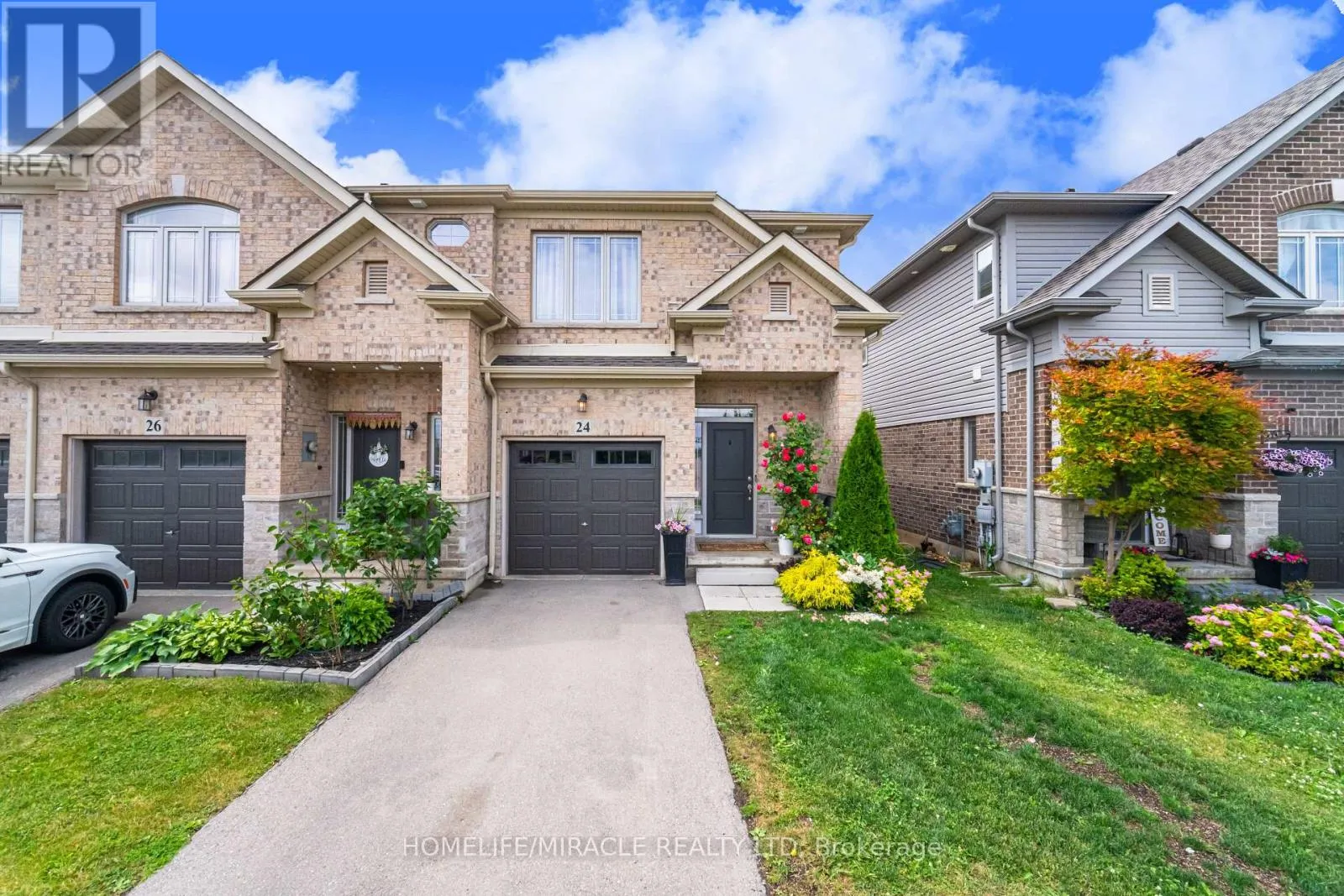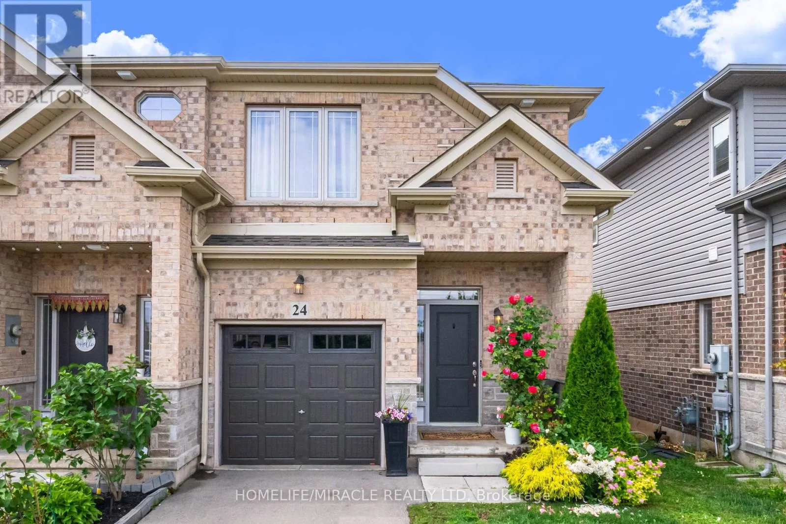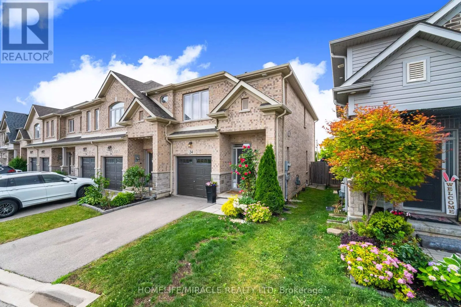 Cross Streets: Rymal Road/Kingsborough Dr. ** Directions: RymalRoad/Kingsborough Dr. Presenting 24 KINGSBOROUGH DR. An Exceptional End Unit Freehold Townhouse with 1522 Sq Ft in a Sought after Stoney Creek Mountain. House offers an amazing Location, Steps to All Major Retail Shopping and Minute to Red Hill Expressway. House is absolutely Loaded with Upgrades including an Open Concept Main Floor Plan, 9ft Smooth Ceiling, Freshly Painted (Jun 2025) . Modern Kitchen with High end Ceramic, Extended Kitchen Cabinets, Elegant Backsplash, Granite C/T, Breakfast Centre Island, Under Mount Kitchen Sink and Stainless Steel Appliances. Open Concept Living Room with New Hardwood Floor (2025) and Pot Lights. Dining with Walk Out Patio Doors Over Looking to a Tastefully Landscaped Concrete Private Backyard for Summer enjoyment. Leading to Second Level Boasts Hallway Hardwood Floor, Master Bedroom with W/I Closet and 4Pc Modern Ensuite with Standing Shower. Bright Spacious and Sun Filled 2nd and 3rd Bedrooms. Visitor Bath with High end Ceramics. Conveniently Located 2nd Level Laundry with Double Door and Uppers. Very small Road and Snow Removal POTL Fee, Private Driveway and No Side walk. This House Exemplifies Top Quality Finishing. Book your showing with Full Confidence. (id:27476)