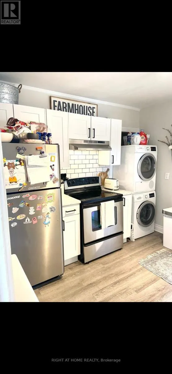 Cross Streets: Barton/Birge. ** Directions: Barton To Emerald. left on emerld. 2 bedroom 1 bathroom upper unit available December 1 2025. Spacious living room area with plenty of natural light, large open kitchen complete with stacked washer dryer and modern white countertops and backsplash. A perfect place to enjoy a meal together. 2 well sized bedrooms and an updated 4 piece bathroom complete this unit. Water and gas included in lease price. Electricity is extra. Parking is available for additional fee. Enjoy the ease and access of living in a highly walkable neighbourhood with added convenience of being close to the transit system. (id:27476)