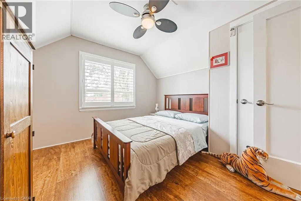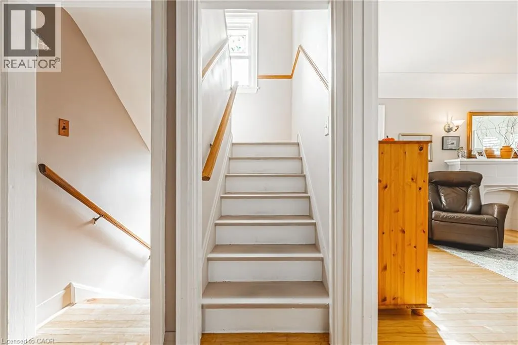 Upper James to Inverness to Buchanan Welcome to this charming updated 1.5-storey home in Hamiltonâs desirable Centremount community! Featuring 2+1 bedrooms and 2.5 bathrooms, this beautifully updated and maintained home offers comfort, style, and functionality on every level. The main floor is filled with bright natural light, showcasing hardwood flooring and California shutters throughout the living room, dining area, and family room. The updated kitchen includes stainless steel appliances and easy access to the covered backyard deck with a lift making the home wheel chair accessibleâ perfect for entertaining or enjoying your morning coffee surrounded by mature trees. Upstairs, youâll find two spacious bedrooms with new plank flooring and a convenient 2-piece powder room. The fully finished basement adds exceptional living space, featuring a cozy rec room with gas fireplace, an additional bedroom, a 3-piece bath, and a separate entrance â ideal for guests, in-laws, or potential income opportunities. New furnace and A/C installed August 2025.With beautiful curb appeal and a private backyard oasis, this home combines the best of city living and serene surroundings. Conveniently located on the Mountain close to parks, schools, shopping, and highway access, this Centremount gem is move-in ready and full of charm! (id:27476)