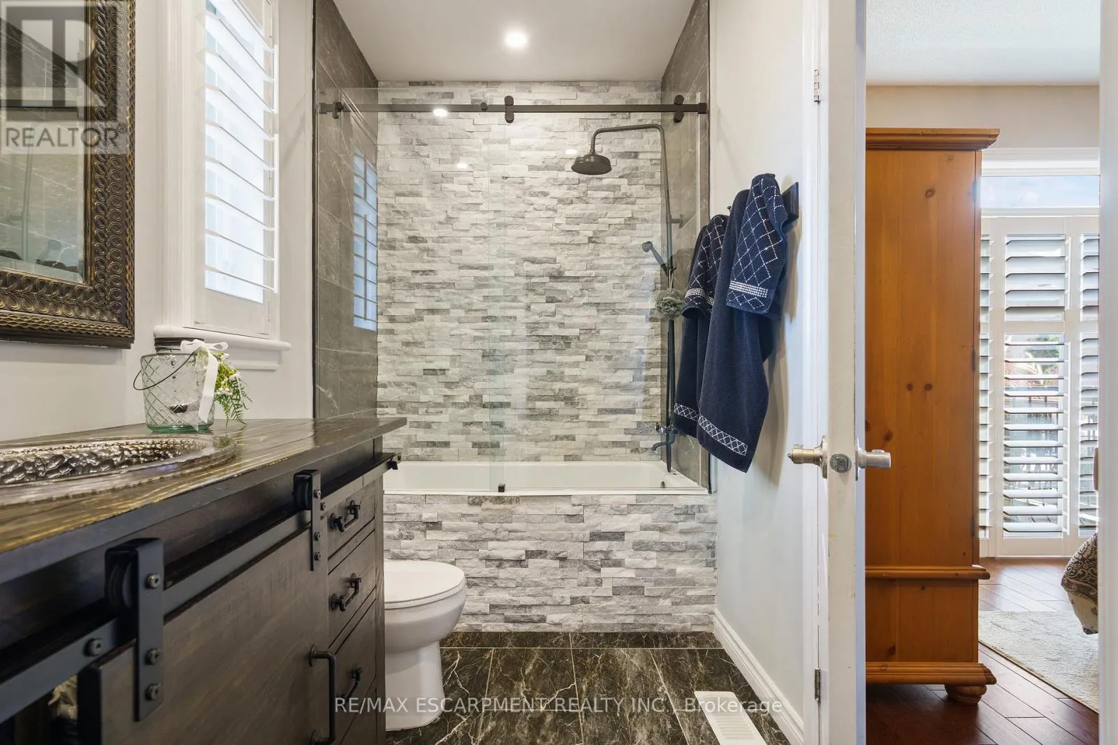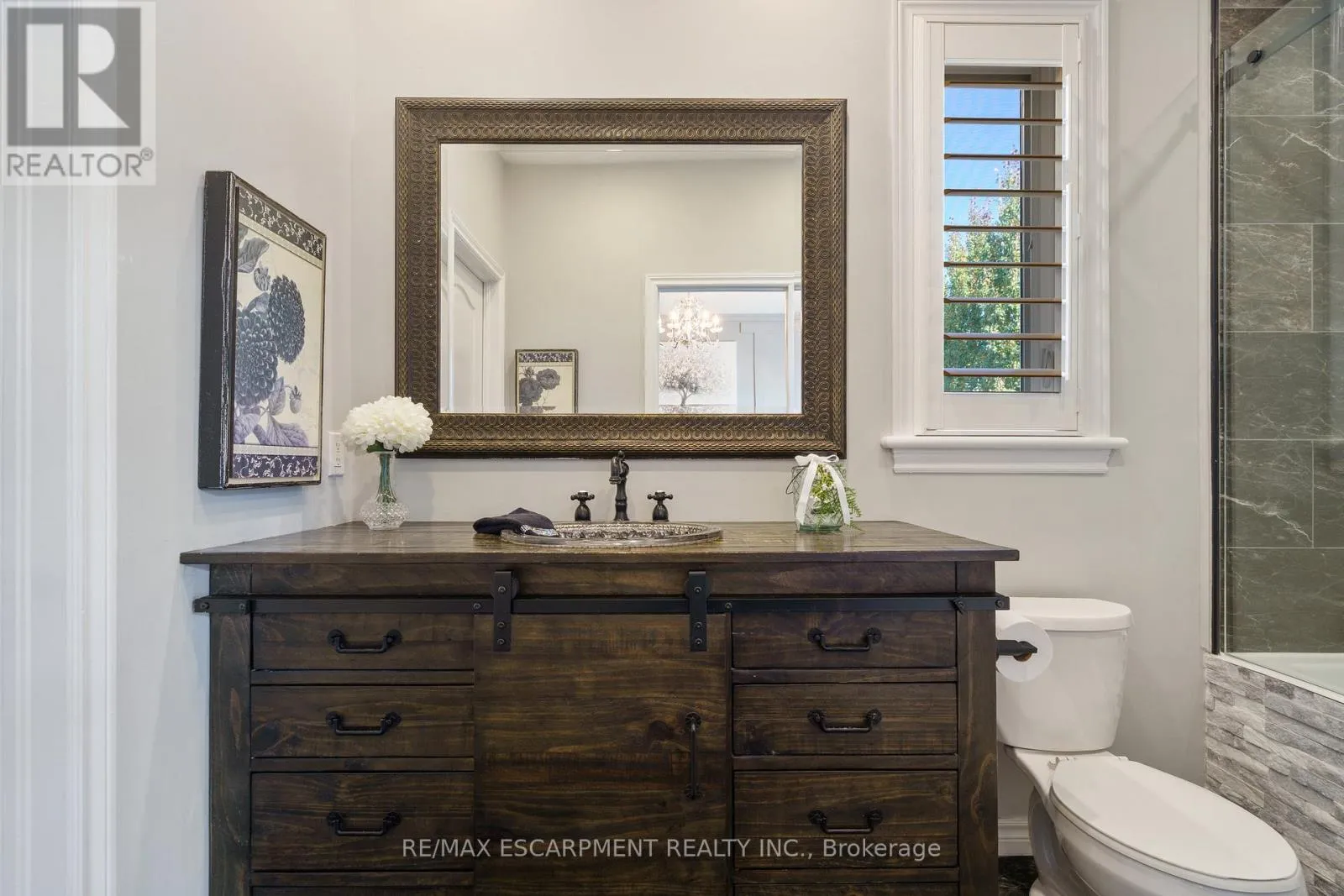 Rymal Rd W & Hazelton Welcome to 21 Shade Forest Trail, an exceptional 4+1 bedroom, 3+1 bathroom home located on the west Hamilton Mountain overlooking Bishop Tonnos Park. With over 3000 sq ft of living space as well as a fully finished walkout inlaw suite ideal for multi generational living, this home is sure to impress. The main floor features a gourmet kitchen with oversized 8x8 granite island with convenient breakfast bar seating. The main floor master bedroom is perfectly located and has his & hers closets, a recently renovated 4 piece ensuite & juliette balcony. Spacious living room with access to a back deck that overlooks the saltwater fiberglass pool (2021). Separate dining room perfect for entertaining. A versatile office/bedroom, powder room & laundry room with garage access complete this level. The loft area provides additional living space with 2 bedrooms, a 4 pc bath & office area. The fully finished walk out basement features a full in-law suite with 2nd kitchen, rec room area, bedroom, 3-pc bath & private back entrance. Hardwood floors, California shutters, vaulted ceilings. Recent updates include refinished stairs, pool, front porch railings, loft carpet & landscaped front & back yards. Situated in a desirable neighbourhood with excellent highway access, schools & amenities nearby. (id:27476)
