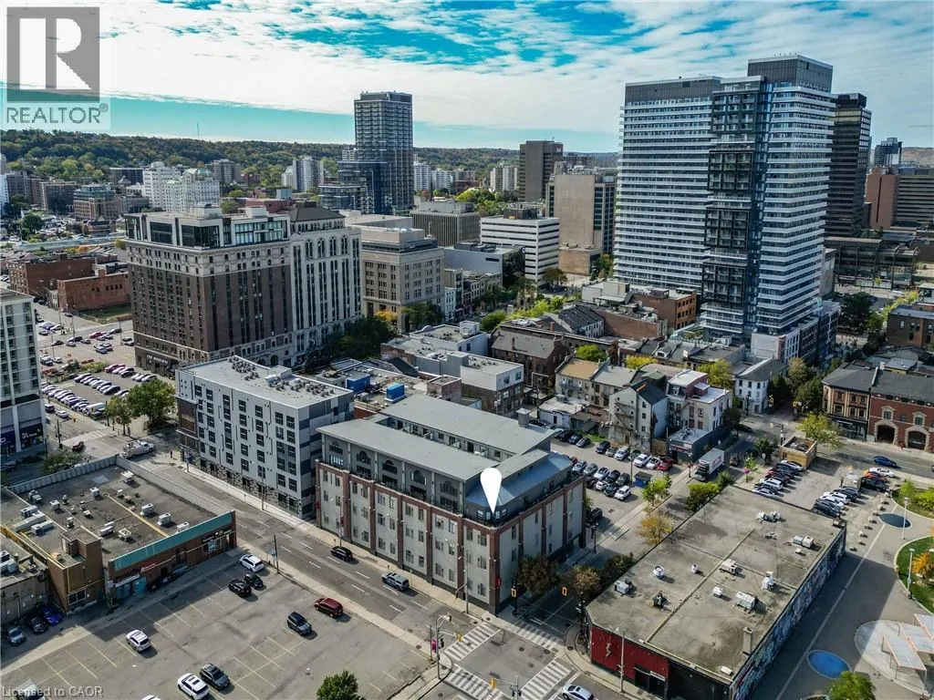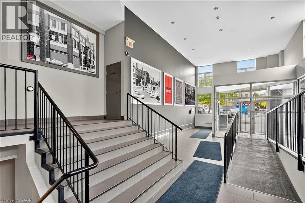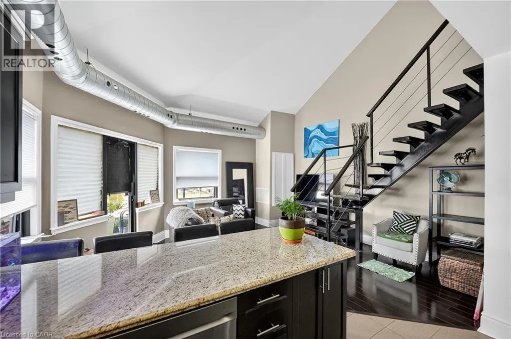 From QEW, Exit Nikola Tesla Blvd, Merge onto Burlington/Industrial, Left onto Birch Ave, right on Cannon St E, Left on Catherine St N, Right onto King William St. URBAN ELEGANCE IN THE HEART OF DOWNTOWN ⦠Experience the best of downtown living in this stunning 2-storey PENTHOUSE condo at 404-80 King William Street, part of the coveted FilmWork Lofts - a boutique building steeped in history and modern design. Once home to the Hamilton Spectator printing press, this unique conversion blends industrial charm with contemporary style, offering a one-of-a-kind urban lifestyle. Step inside and discover a bright, open-concept layout where soaring ceilings and exposed ductwork reflect the buildingâs authentic character. The living room, finished with warm HARDWOOD flooring, flows seamlessly onto your northeast-facing corner balcony, perfect for morning coffee or evening relaxation. The kitchen features GRANITE countertops, ceramic tile flooring, and stainless-steel appliances, creating a sleek and functional space ideal for the home chef. This thoughtfully designed loft includes two spacious bedrooms and two full 4-piece bathrooms, offering both privacy and comfort. The PRIMARY BEDROOM SUITE is located on the upper level and enjoys natural light and an airy sense of openness only a true loft can provide. Additional conveniences include in-suite laundry, one underground parking space, and a LOCKER (#3272) for extra storage. Owners can also enjoy BBQ privileges on their private balcony. Built in 2010, FilmWork Lofts is home to just 38 live-work lofts and 12 exclusive penthouses, creating an intimate community for professionals and creatives alike. Its prime downtown location boasts exceptional walkability - just steps to the Hamilton GO Station, Farmers Market, and the James Street North Arts District, known for its galleries, boutiques, and vibrant culinary scene. With a Walk Score of 85, Transit Score of 88, and Bike Score of 91, this property embodies the convenience and culture of true city living. Live. Work. Thrive. Downtown. CLICK ON MULTIMEDIA for virtual tour, drone photos, floor plans & More. (id:27476)