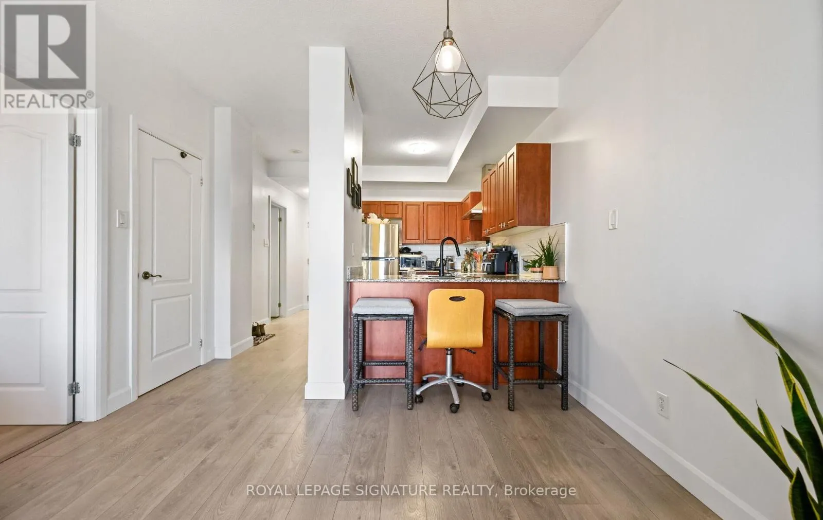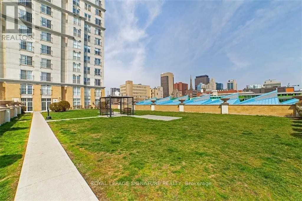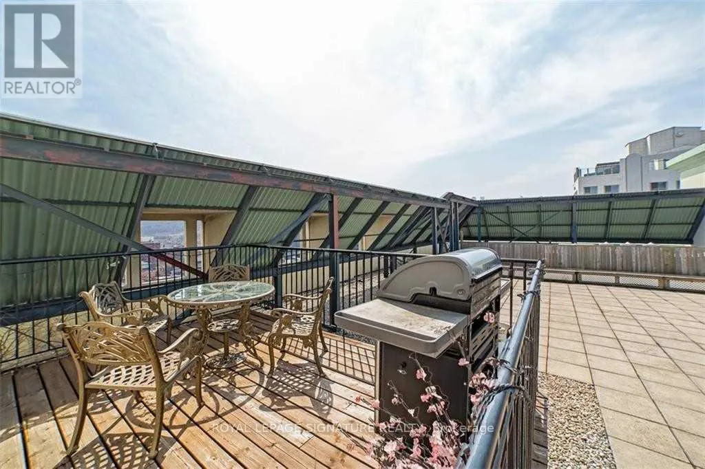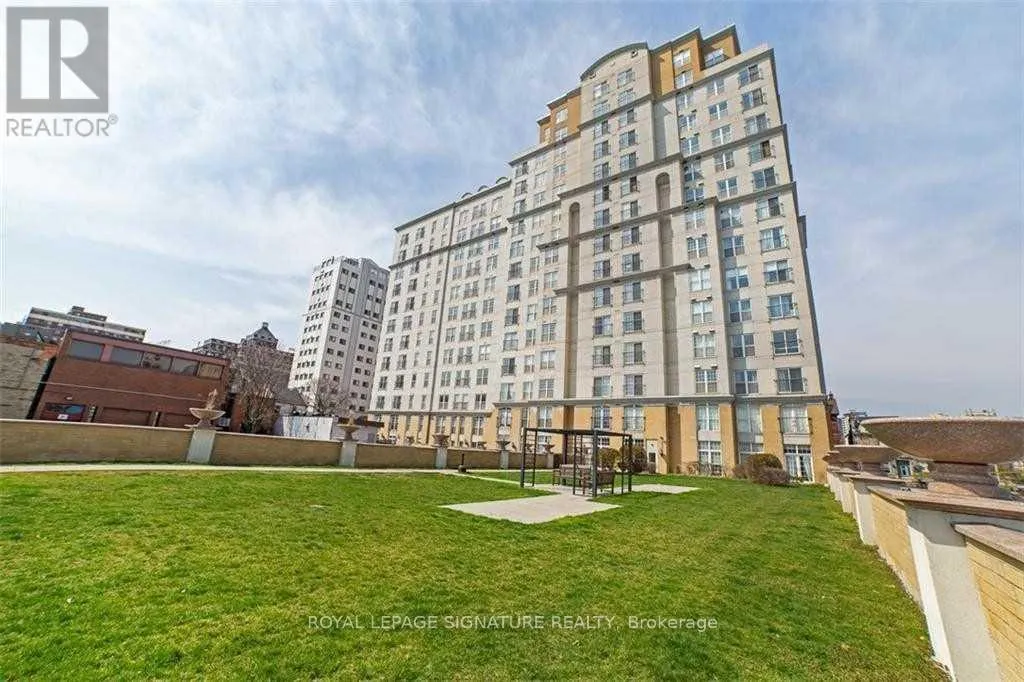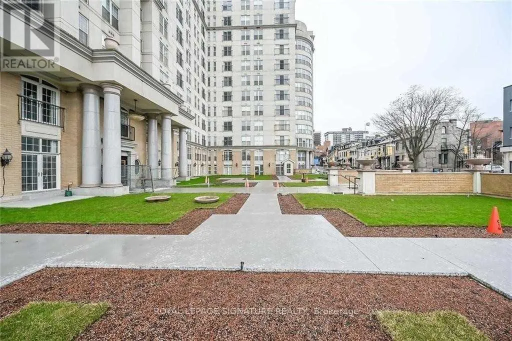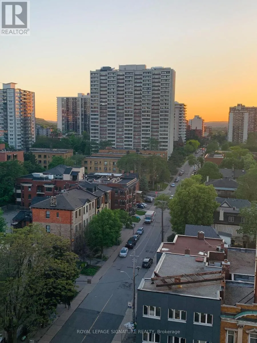 Main Street and James St S Welcome to Chateau Royal, where urban sophistication meets comfort in the heart of Hamilton.This beautifully renovated executive one-bedroom, one-bath condominium offers over 760 square feet of bright, airy living space in the highly sought-after Durand neighbourhood. Fully updated in 2022, it combines modern finishes with timeless elegance. With nine-foot ceilings, newer flooring throughout, and a fresh, neutral palette, the suite feels open and inviting. The contemporary kitchen features stainless steel appliances (2022), and the bathroom has been completely refreshed in a sleek, modern style. Additional highlights include in-suite laundry, a large walk-in closet, a generous front closet, and central heating and air conditioning. Its west exposure provides abundant natural light, with large windows showcasing city views, sunset vistas, and a Juliette balcony.Ideally located next to the Hamilton GO Station and minutes from Highway 403, this home offers exceptional convenience. Enjoy nearby cafes, restaurants, and the charm of Durand's historic streets, with St. Joseph's Hospital and scenic escarpment trails close by. Residents of Chateau Royal enjoy outstanding amenities, including 24-hour concierge and security, a fitness centre with sauna, rooftop terrace, landscaped courtyard with barbecue area, and a party room with| pool table. A storage locker is included, and public parking is available nearby. (id:27476)