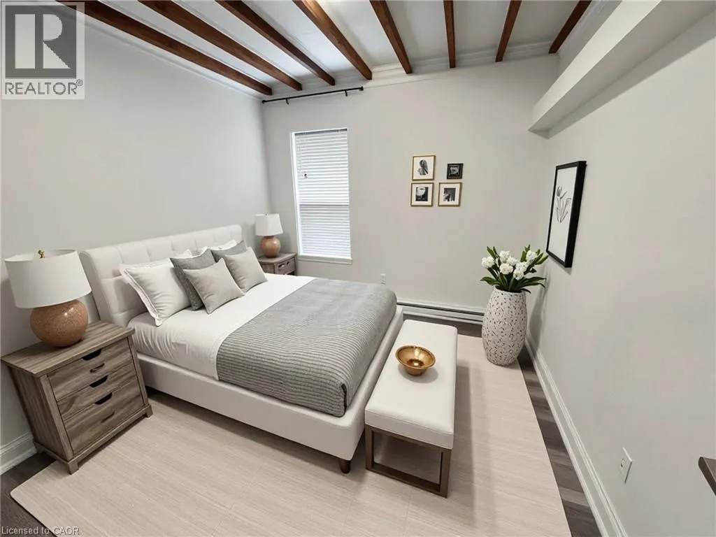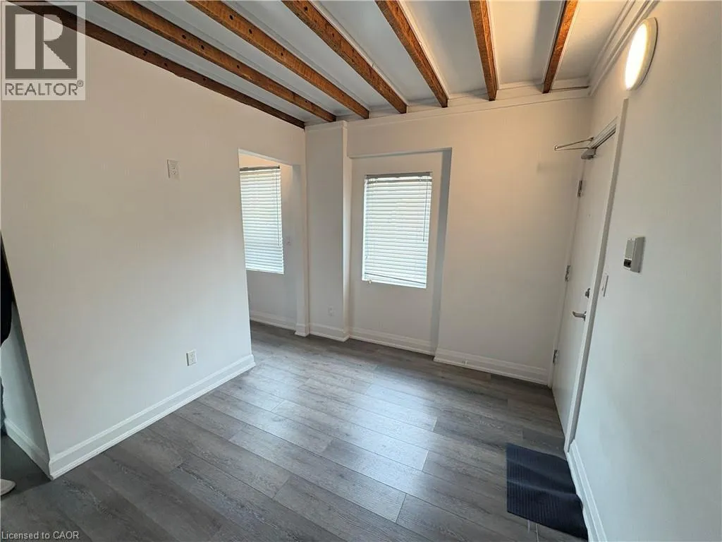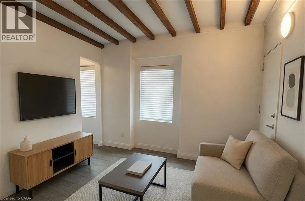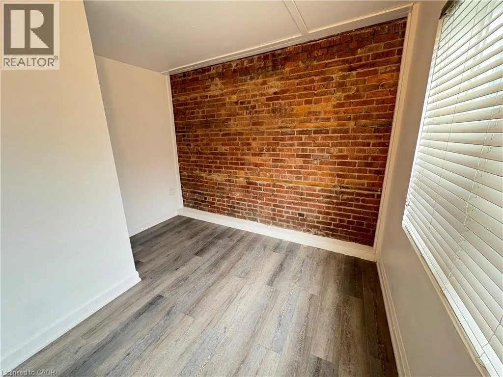 Cannon St E & Gibson Welcome Home to 83 Gibson Ave, Unit 2 â Hamilton This charming two-bedroom unit, located in a well-kept six-unit building, is a place youâll be proud to call home. From the moment you walk in, youâll feel its character and warmth, highlighted by exposed brick and rustic wood beams that give the space unique charm. The open living area provides plenty of room to create your perfect setup. The primary bedroom easily accommodates a queen-size bed, while the second bedroom â featuring a beautiful exposed brick wall and sliding barn-style door â makes an ideal home office or guest room. The bright white kitchen offers ample cupboard and counter space, along with room for a cozy bistro-style table and chairs. A three-piece bathroom includes a modern walk-in shower, and youâll enjoy direct access to a private balcony â perfect for some fresh air or morning coffee. Laundry facilities are conveniently located in the basement of the building. $1595 plus heat/hydro *Some photos virtually staged (id:27476)