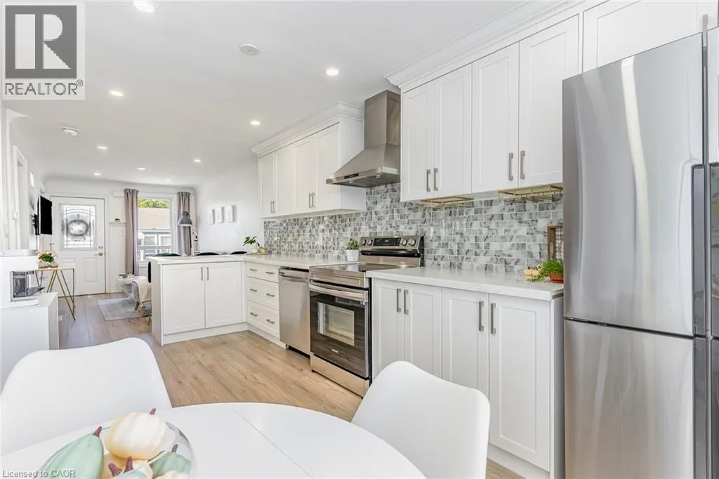 East 31st between Munn and Crockett Condo alternative in ideal Hamilton Mountain location! Walking distance to The Juravinski, Shops and Restaurants of Concession Street, Schools, Parks and Public Transit. Quick drive to the Sherman Cut and the LINC for commuters. This 2 bedroom, 1 bathroom bungalow was updated in 2021 with new electrical, plumbing, flooring, and HVAC. Enjoy a new (2021), large eat-in kitchen complete with quartz countertops, bar seating, and direct access to the rear deck and yard. An updated 4 pc bath (2021) complete with ensuite laundry and 2 bedrooms both with closets. 1 car front yard parking. Do not miss out, book your showing today! (id:27476)