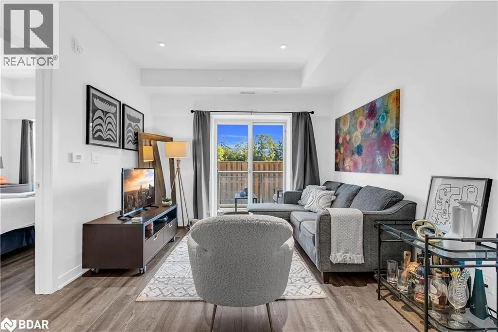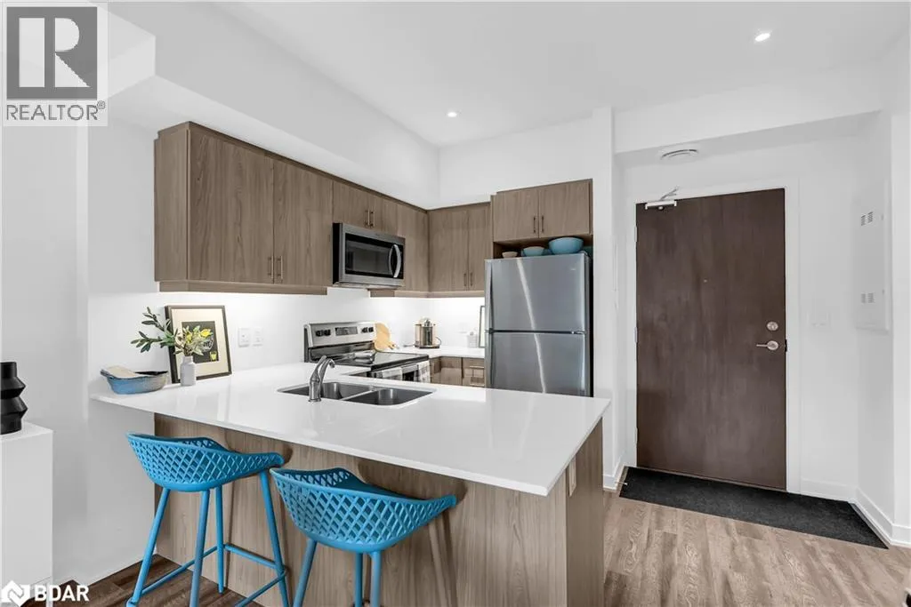 right on Shaver left on Garner Rd. Welcome to Unit 206 at 16 Markle Road. This beautifully upgraded 1-bedroom condo offers over 600 square feet of intelligently designed living space in one of Ancasterâs most desirable communities. This home feels like itâs straight out of a magazine spread. The suite features wide-plank flooring. Full-height shaker cabinetry. Quartz countertops. Stainless steel appliances. And a rare bonus for a 1-bedroom layout â a guest powder room in addition to the full 4-piece ensuite. Enjoy a functional open-concept design with a spacious bedroom. A private balcony overlooking peaceful green space. And a layout that blends style and simplicity. Included is 1 underground parking space and a secure storage locker. The building offers exceptional amenities. A fully equipped fitness centre. Stylish party room. Outdoor patio with BBQs and fire table. Plus ample visitor parking. Steps from Starbucks. LCBO. Grocery stores. Restaurants. And scenic walking trails. With quick access to Highway 403. The Linc. And public transit. This is the perfect opportunity for first-time buyers. Downsizers. Or professionals seeking modern low-maintenance living in a premium location. (id:27476)