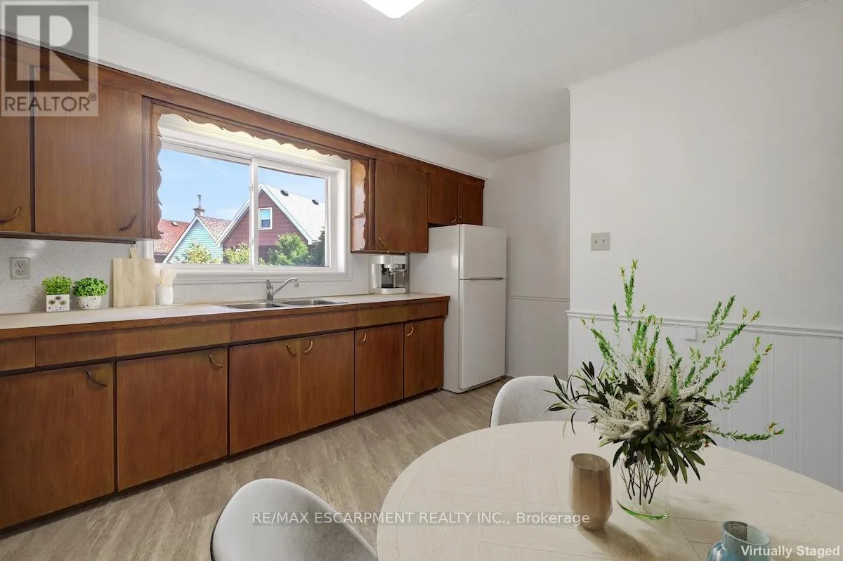 Cross Streets: Barton St E to Wentworth St N. ** Directions: Barton St E to Wentworth St N, East on Monroe St, North on Niagara St. Welcome to this impeccably maintained five-bedroom, two-bathroom gem, boasting dual kitchens and nearly 2,300 square feet of versatile living space across multiple levels-ideal for growing families or multi-generational living. Complete with charming curb appeal and an oversized driveway accommodating up to three vehicles for added convenience. Inside, the thoughtful layout truly shines: the main level features a bright, inviting living room and dining area adorned with gleaming hardwood floors and expansive bay windows that flood the space with abundant natural light, a custom kitchen that's a chef's delight with rich oak cabinetry and sleek stainless steel appliances, plus a convenient full bathroom on the same floor. Ascend to the second level for even more flexibility, including a second full kitchen perfect for in-law suites or entertaining guests, two generously proportioned bedrooms, and an oversized four-piece bathroom for ultimate comfort. Need additional room? The third level offers two more spacious bedrooms, each equipped with ample closets providing excellent storage solutions. The fully finished basement, accessible via a separate side entrance, adds tremendous value with a vast recreation room ideal for family gatherings or movie nights, plus a fifth bedroom suited for guests, a home office, or hobby space. Outside, escape to your private backyard oasis-beautifully landscaped with a large deck for al fresco dining and relaxation, a serene pond for tranquil moments, mature trees ensuring natural privacy, and a handy storage shed for tools and extras. Nestled in a welcoming, family-friendly neighbourhood with effortless highway access and proximity to schools, parks, shopping, and all essential amenities, this home perfectly combines everyday convenience with timeless charm-envision making it yours! RSA. (id:27476)