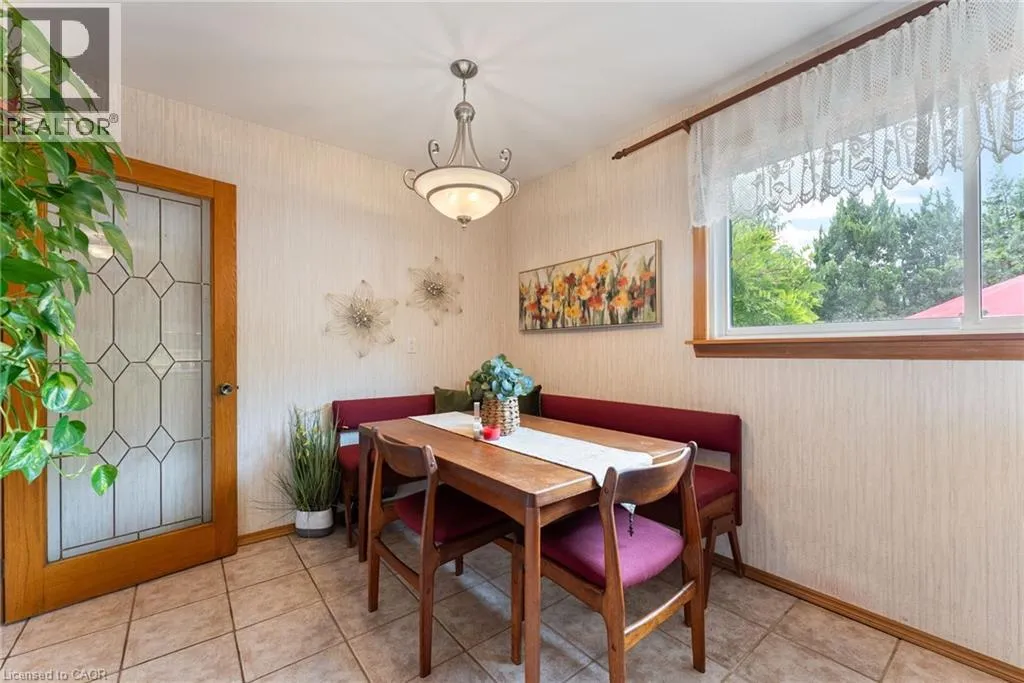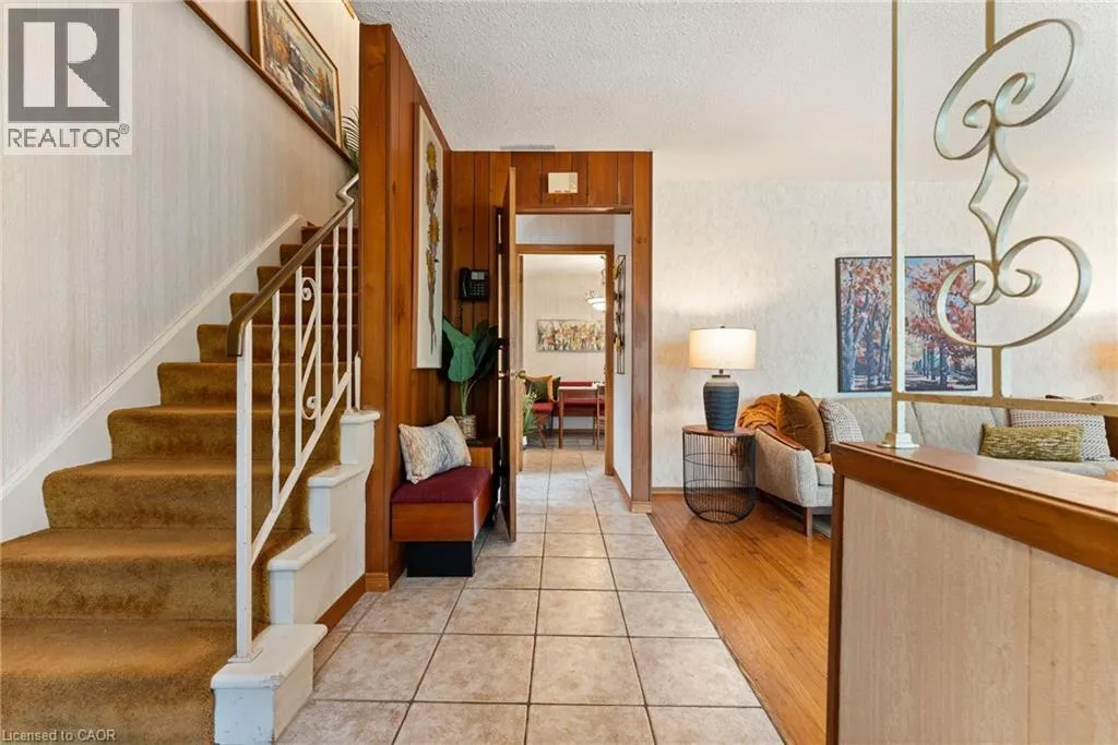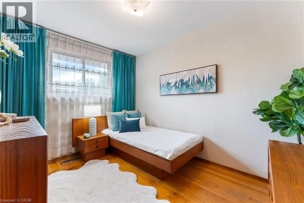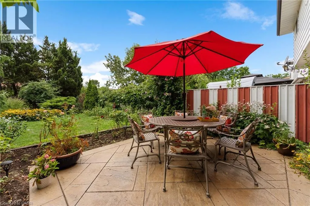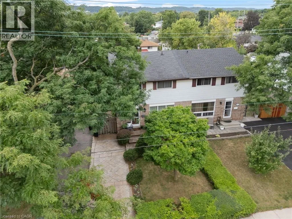 Barton St, right on Bell Manor, Right on Berkindale Drive Picture perfect and move in ready this spacious semi detached home offers rare 4 upper bedrooms with stamped concrete drive for two vehicle parking and fully fenced yard to your private lovingly landscaped yard with character gardening shed, spacious concrete patio for outdoor entertaining, calming pond & convenient separate side door entry to access main floor or finished lower level recroom with loads of builtins. Great curb appeal with mini porch patio that leads you inside where you are greeted by a spacious foyer with large living room boasting triple window and original character hardwood floors. The updated oak style eat in kitchen with generous dinette overlooks the tranquil gardens plus a convenient 2 piece bath completes the main level. Upstairs you will find original hardwood floors with 4 bedrooms, lots of closet space throughout and a functional 4 piece main bath. Updates include: Roof in Sept of 2025, furnace, most windows, concrete walks / patio / drive, ceramics to kitchen & foyer with lots of care throughout. Close to schools and shopping with easy highway access in a family friendly neighbourhood. Move in ready and the perfect place to call Home Sweet Home. (id:27476)