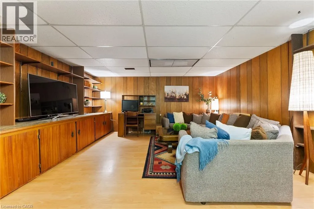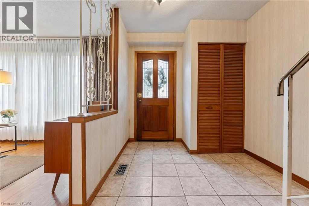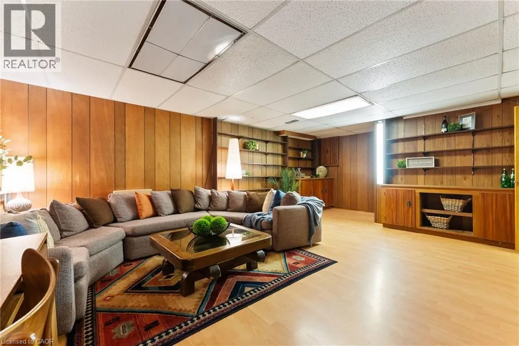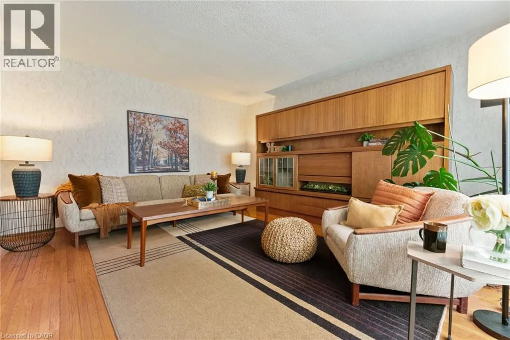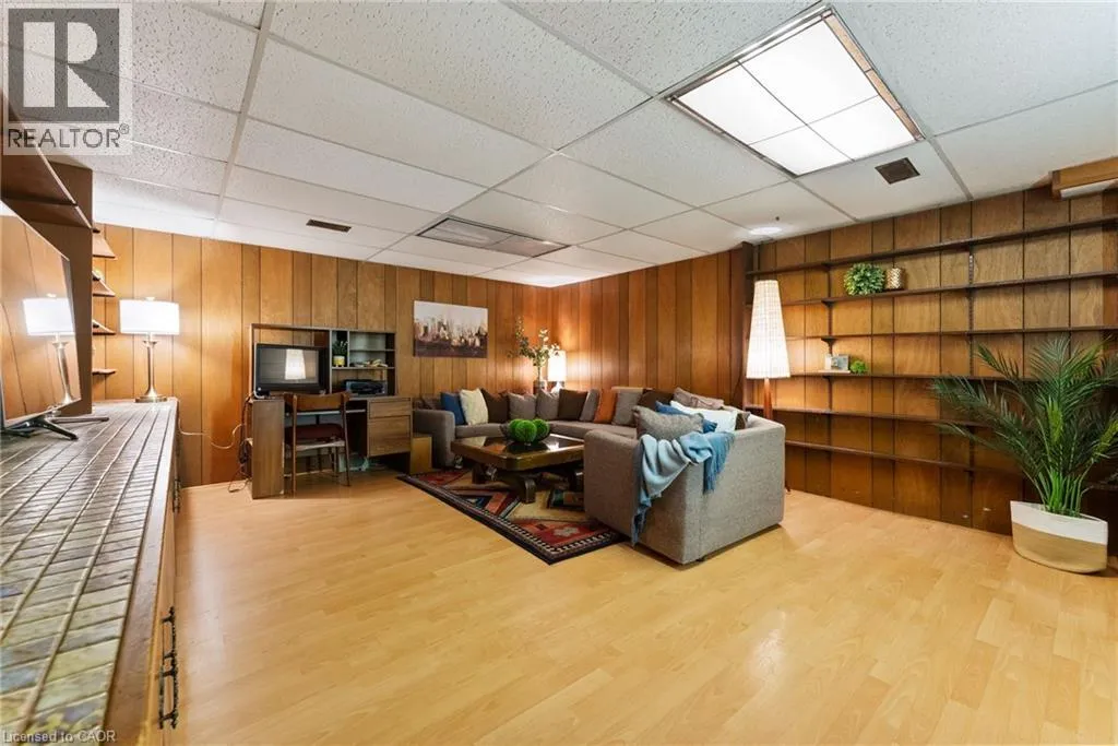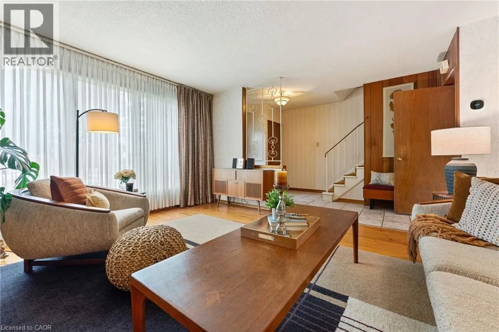 Barton St, right on Bell Manor, Right on Berkindale Drive Picture perfect and move in ready this spacious semi detached home offers rare 4 upper bedrooms with stamped concrete drive for two vehicle parking and fully fenced yard to your private lovingly landscaped yard with character gardening shed, spacious concrete patio for outdoor entertaining, calming pond & convenient separate side door entry to access main floor or finished lower level recroom with loads of builtins. Great curb appeal with mini porch patio that leads you inside where you are greeted by a spacious foyer with large living room boasting triple window and original character hardwood floors. The updated oak style eat in kitchen with generous dinette overlooks the tranquil gardens plus a convenient 2 piece bath completes the main level. Upstairs you will find original hardwood floors with 4 bedrooms, lots of closet space throughout and a functional 4 piece main bath. Updates include: Roof in Sept of 2025, furnace, most windows, concrete walks / patio / drive, ceramics to kitchen & foyer with lots of care throughout. Close to schools and shopping with easy highway access in a family friendly neighbourhood. Move in ready and the perfect place to call Home Sweet Home. (id:27476)