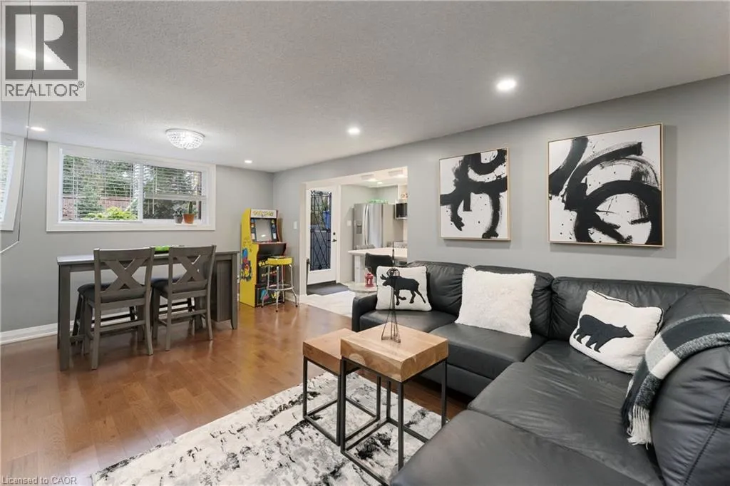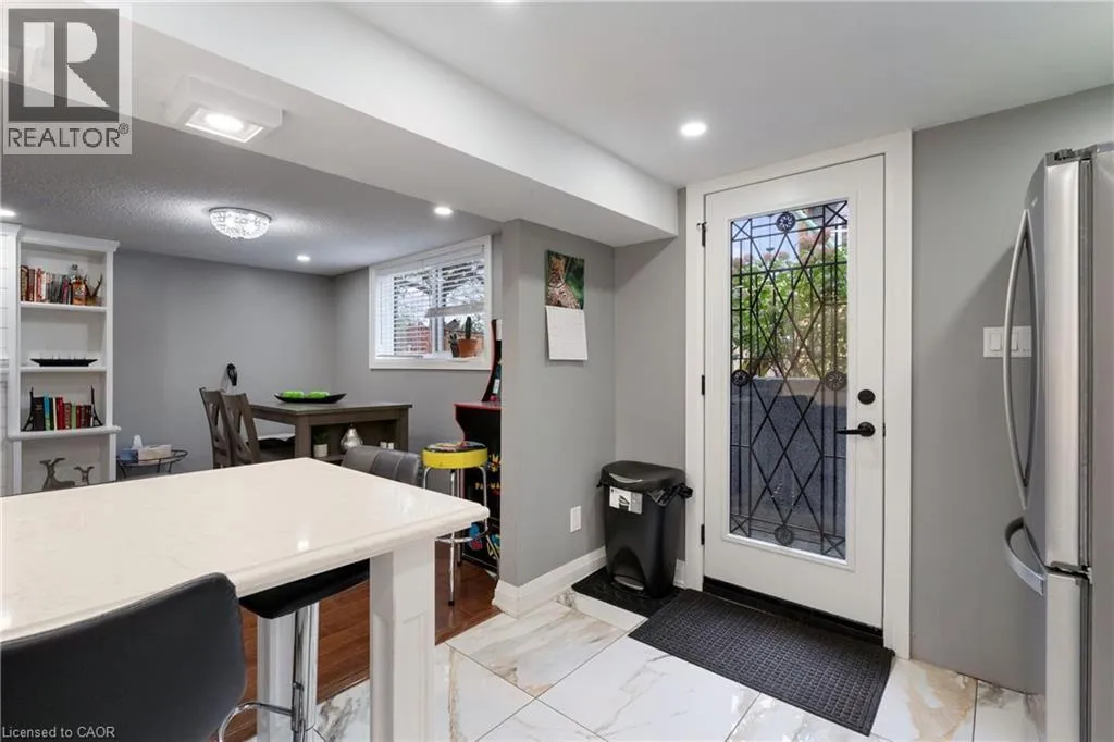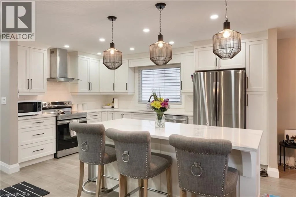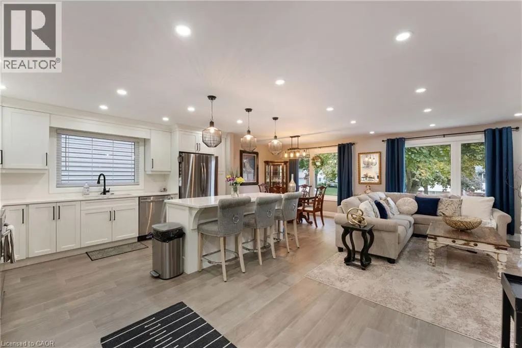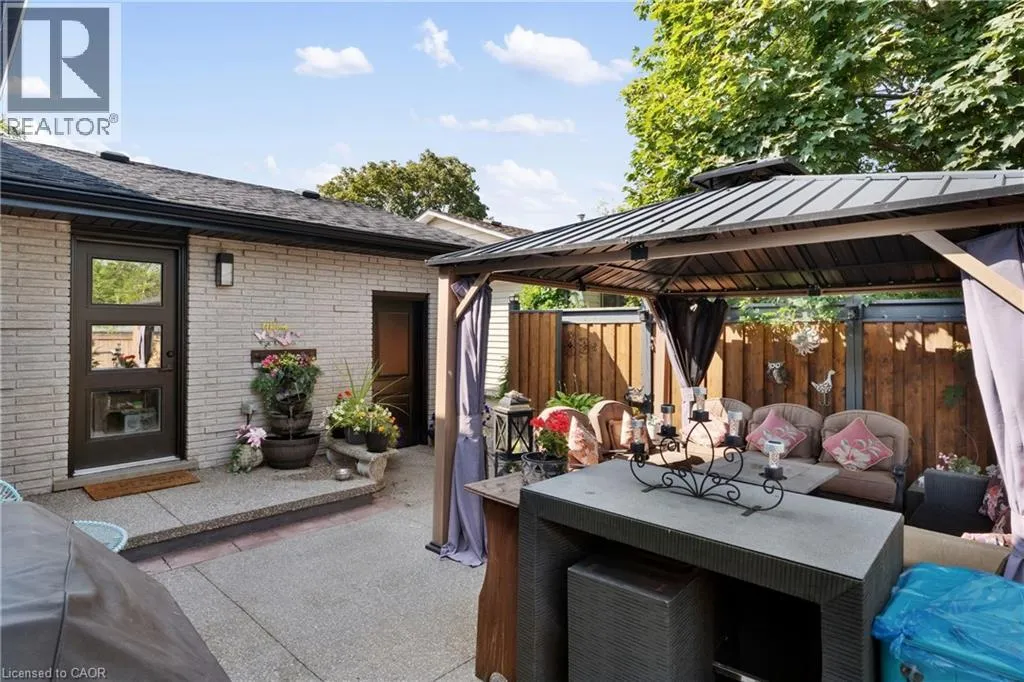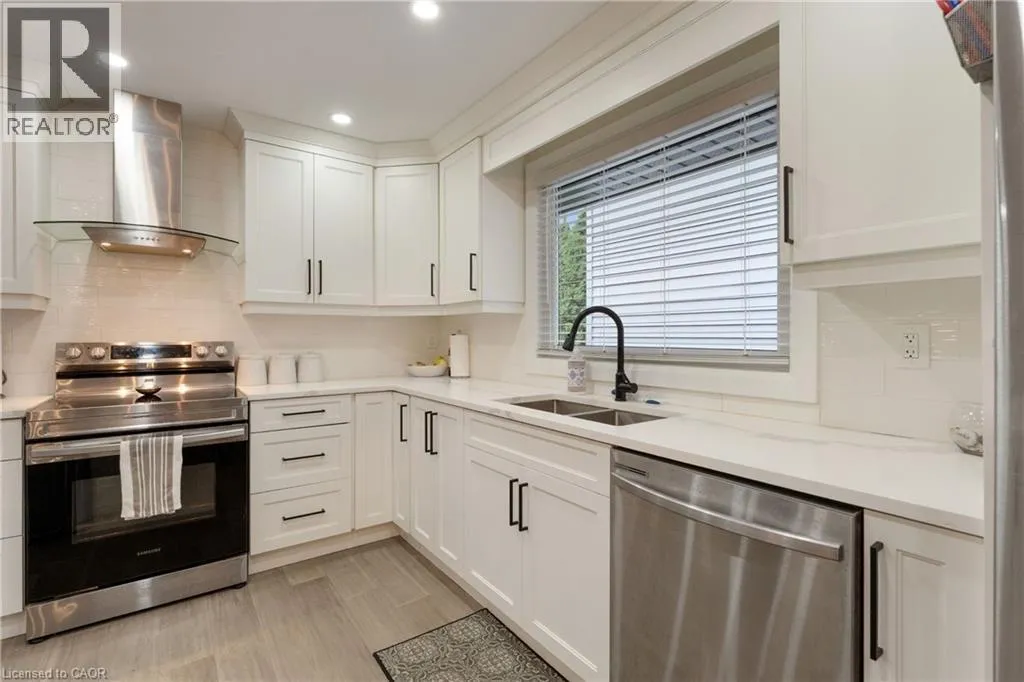 Greenhill to Bunkerhill to Hanover Pl Bright, well-appointed raised-ranch bungalow in the heart of the Gershome neighbourhood, offering an exceptional turnkey living opportunity. The home features a fully self-contained in-law suite with its own walk-out entrance, perfect for multi-generational living. Both levels showcase custom kitchens with quartz counters, stainless appliances, ample storage and stylish finishes. The main level greets you with engineered hardwood, pot lights, crisp trim, and a seamless flow from living to dining to kitchen. The main floor den could easily revert back to a third bedroom. Two designer bathrooms (one on each level) feature custom vanities and modern fixtures. In the lower level, the in-law space includes its own laundry and living areas, giving total autonomy to residents. Many systems and finishes have been renewed: high-efficiency furnace, AC, windows, exterior roof, fascia, eavestrough, insulated garage door, new front entry door, updated doors/trim/hardware throughout, and repointed/epoxy coated foundation steps. The yard is a private oasis with a steel-roofed gazebo, custom luxury playhouse, inground sprinkler, exposed-aggregate patio, gas BBQ hookup, and new fencing. Situated in Gershome, youâll enjoy proximity to schools, parks, transit, and quick access to the Red Hill Valley Parkway. Summers can be spent golfing at nearby Glendale Golf & Country Club, or hiking the trails and escarpment. This home is truly move-in ready and versatile. (id:27476)