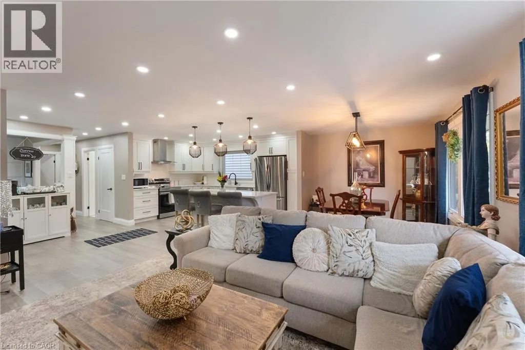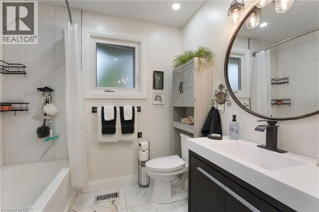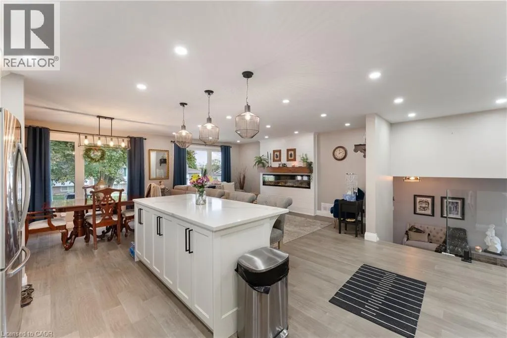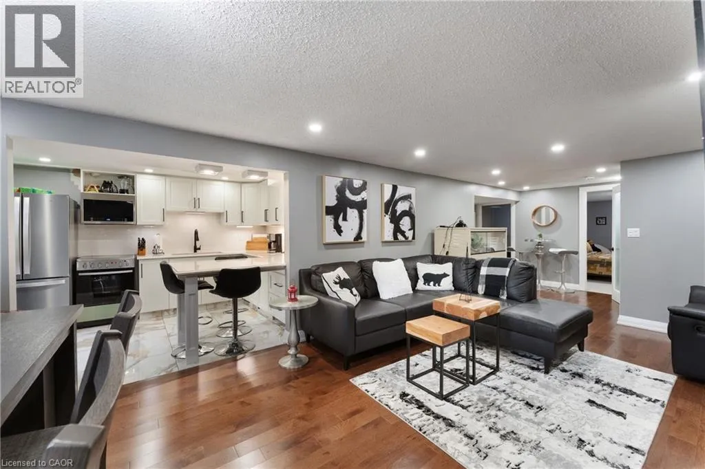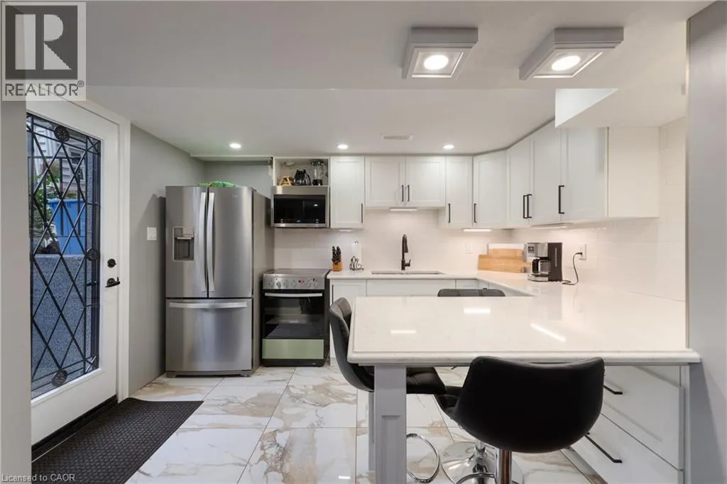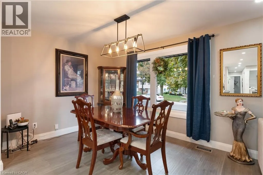 Greenhill to Bunkerhill to Hanover Pl Bright, well-appointed raised-ranch bungalow in the heart of the Gershome neighbourhood, offering an exceptional turnkey living opportunity. The home features a fully self-contained in-law suite with its own walk-out entrance, perfect for multi-generational living. Both levels showcase custom kitchens with quartz counters, stainless appliances, ample storage and stylish finishes. The main level greets you with engineered hardwood, pot lights, crisp trim, and a seamless flow from living to dining to kitchen. The main floor den could easily revert back to a third bedroom. Two designer bathrooms (one on each level) feature custom vanities and modern fixtures. In the lower level, the in-law space includes its own laundry and living areas, giving total autonomy to residents. Many systems and finishes have been renewed: high-efficiency furnace, AC, windows, exterior roof, fascia, eavestrough, insulated garage door, new front entry door, updated doors/trim/hardware throughout, and repointed/epoxy coated foundation steps. The yard is a private oasis with a steel-roofed gazebo, custom luxury playhouse, inground sprinkler, exposed-aggregate patio, gas BBQ hookup, and new fencing. Situated in Gershome, youâll enjoy proximity to schools, parks, transit, and quick access to the Red Hill Valley Parkway. Summers can be spent golfing at nearby Glendale Golf & Country Club, or hiking the trails and escarpment. This home is truly move-in ready and versatile. (id:27476)