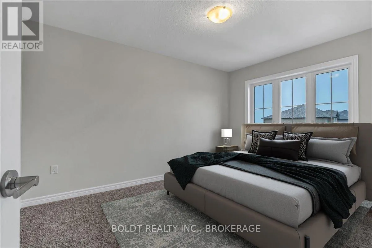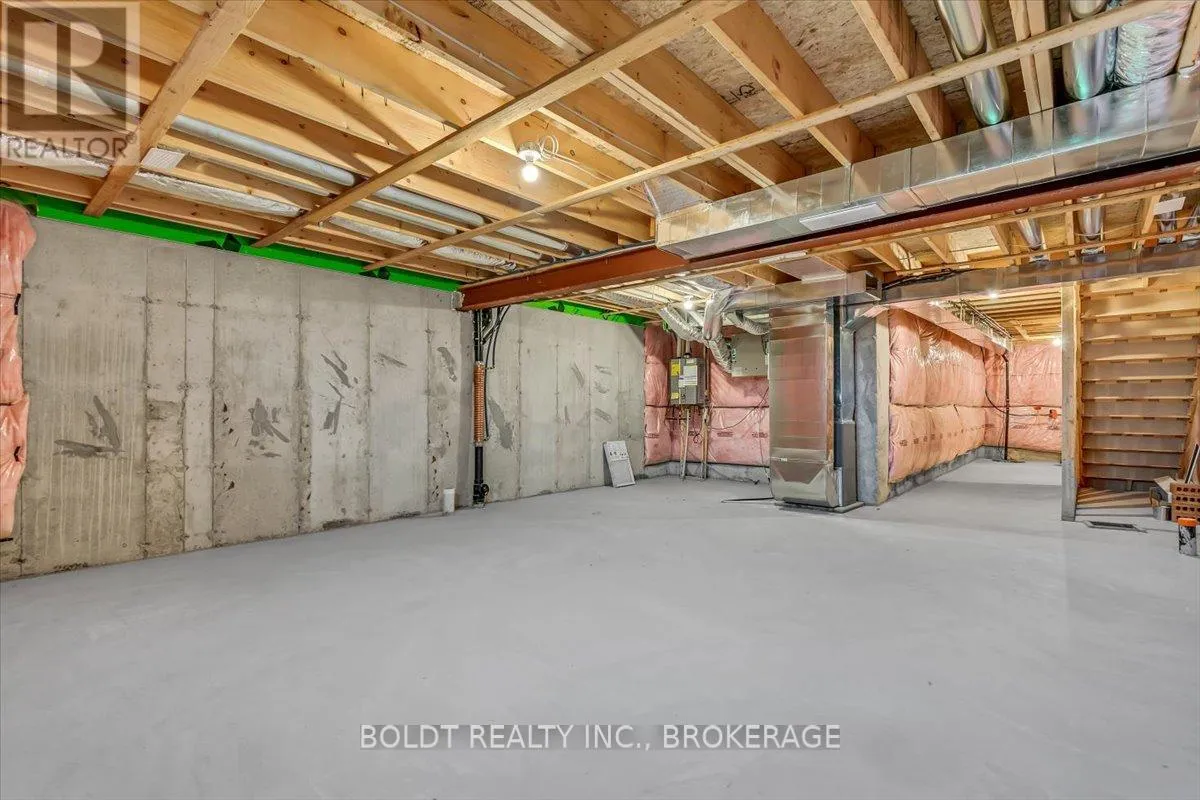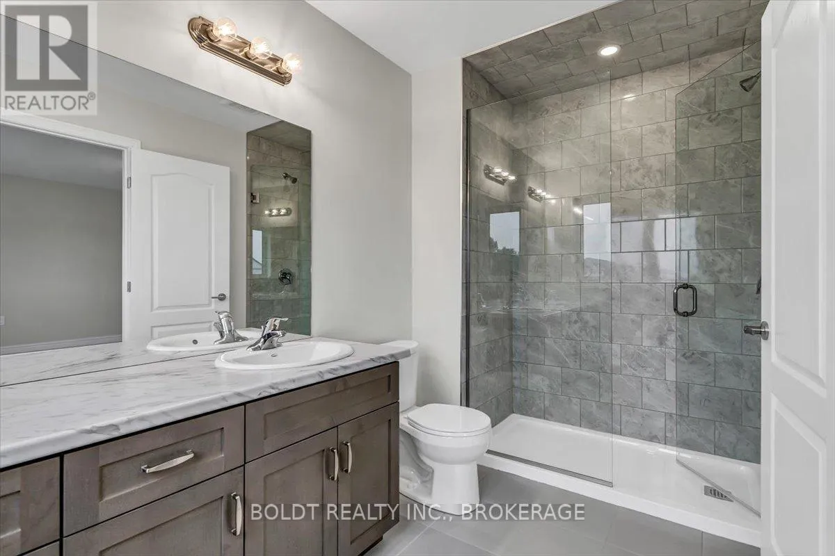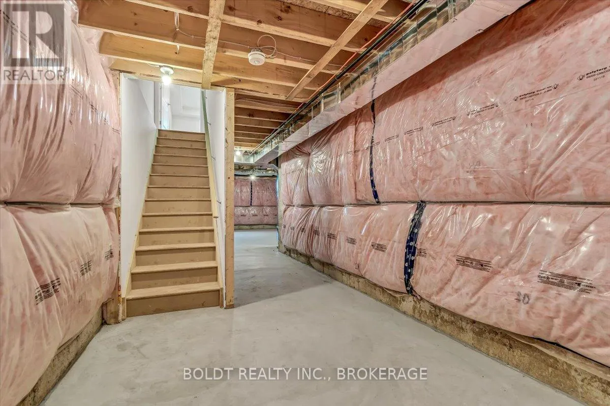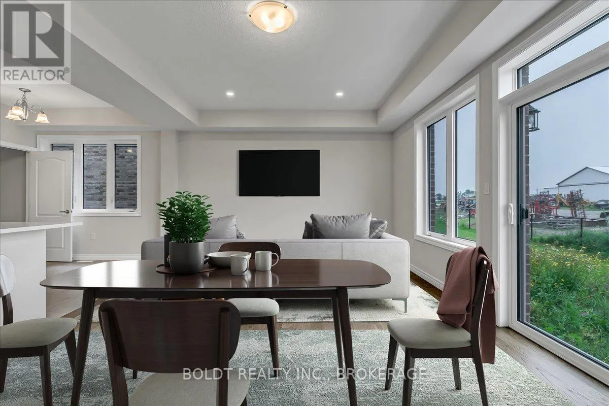 Cross Streets: Tanglewood Dr/Maggie Johnson. ** Directions: Turn left on Tanglewood drive from Maggie Johnson Drive. We are pleased to introduce to you this two year old luxury townhome built by John Bruce Robinson. This end unit 3 bedroom townhome is perfectly located on Tanglewood Drive with existing homes. As you approach this home you are presented with a modern exterior design featuring brick, stone, and vinyl siding. Covered porch to enjoy your morning coffee. The driveway allows for two parking spots and is not shared with an adjacent home. As you enter the home you are presented with a spacious foyer and 2-piece bathroom. Staircase perfectly located with oak railing and wide hallway leading to your open concept living space. The kitchen has many upgrades which includes stainless-steel appliances, cabinets finished to the ceiling with elegant crown moulding, plenty of cabinet space, upgraded quarts countertop with tile backsplash, breakfast bar with ample amount of space for your family to use in the busy mornings. The living room features engineering hardwood floors that are ready to be designed and furnished to your liking with sliding doors leading to the backyard and large windows giving the space plenty of natural light. On the second level you are presented with a spacious primary bedroom which features a large bathroom with his & hers sink, stand-up shower & glass door, and large walk-in closet. The main 4-piece bathroom features tile flooring and surrounding the tub. The other two bedrooms have plenty of space for your family. The walk-in laundry room has closed in tile floor & drain for the washer & dryer for ease of mind. The basement layout allows for easy separation of utility room and open space to be finished to your liking. Walking distance to all the amenities you need and easy access to regional road 56. Book your private showing today! (id:27476)