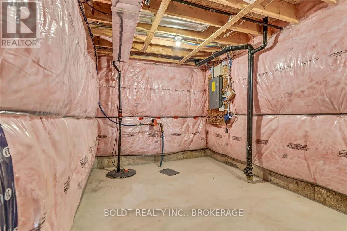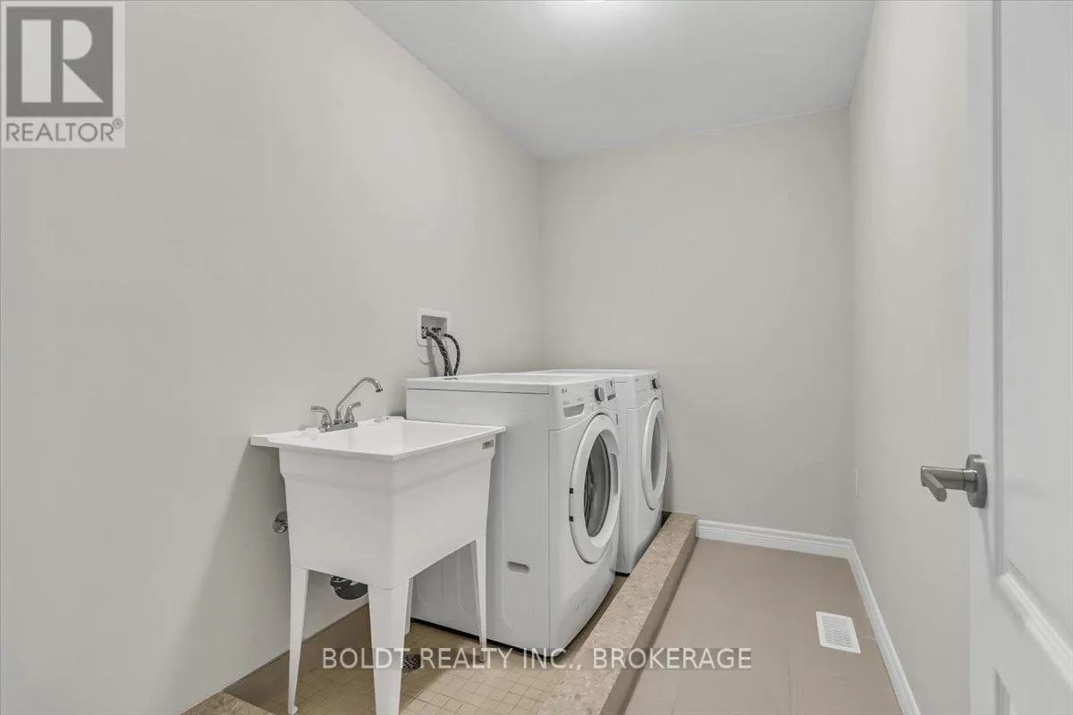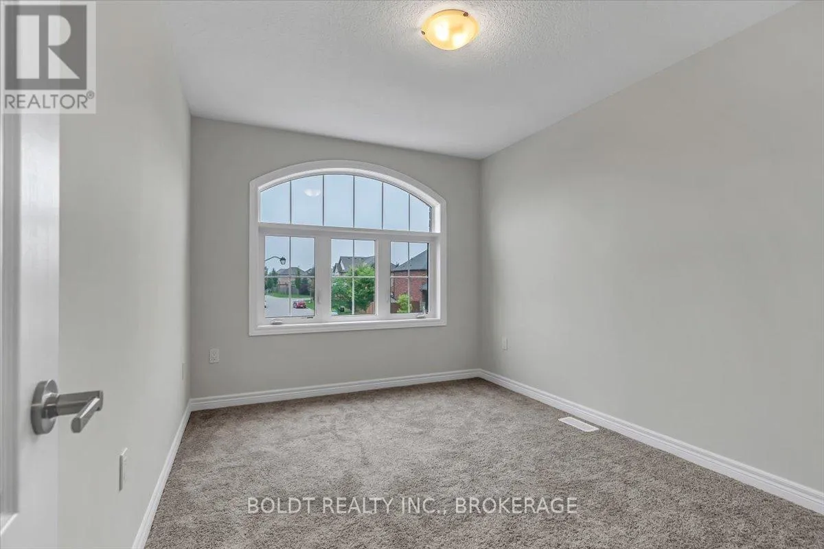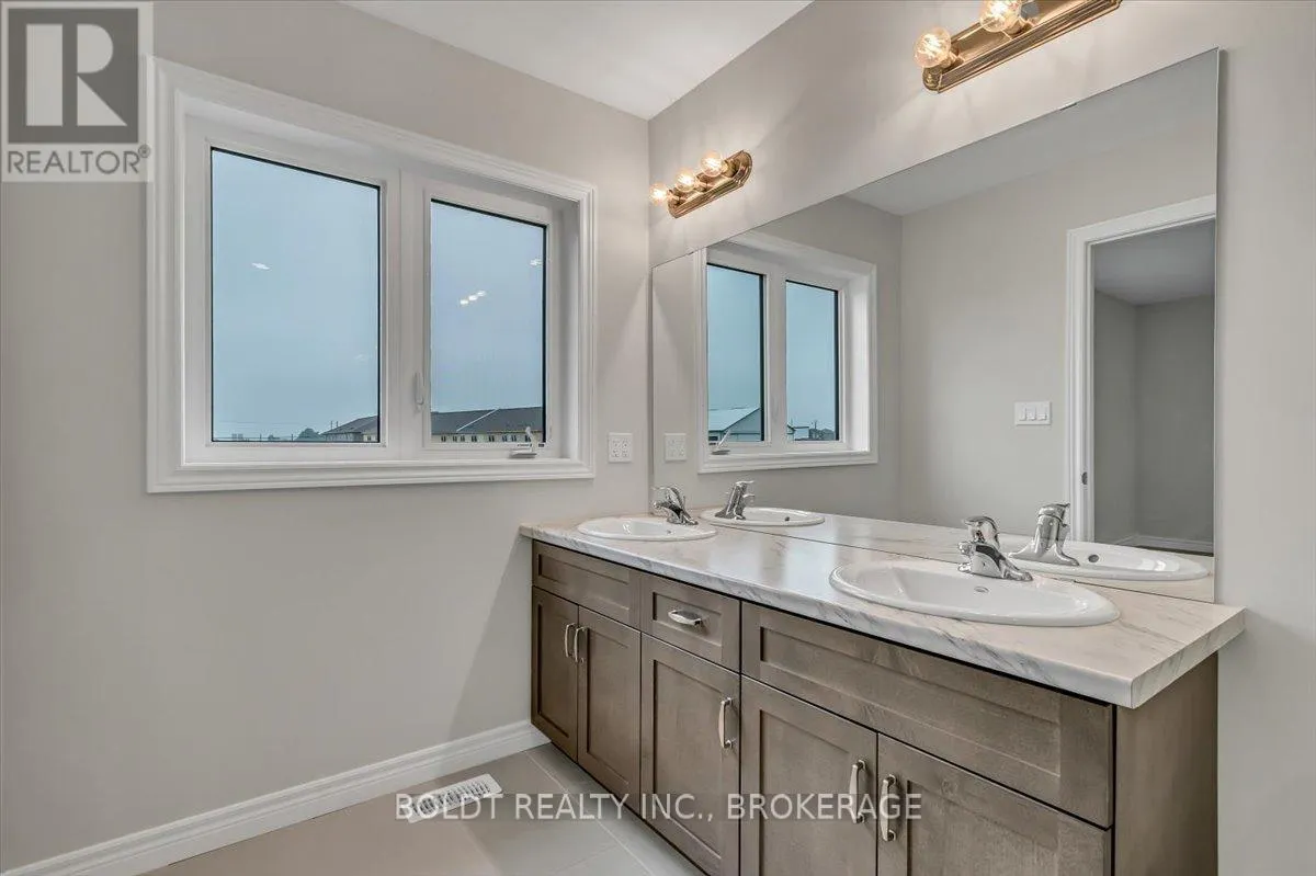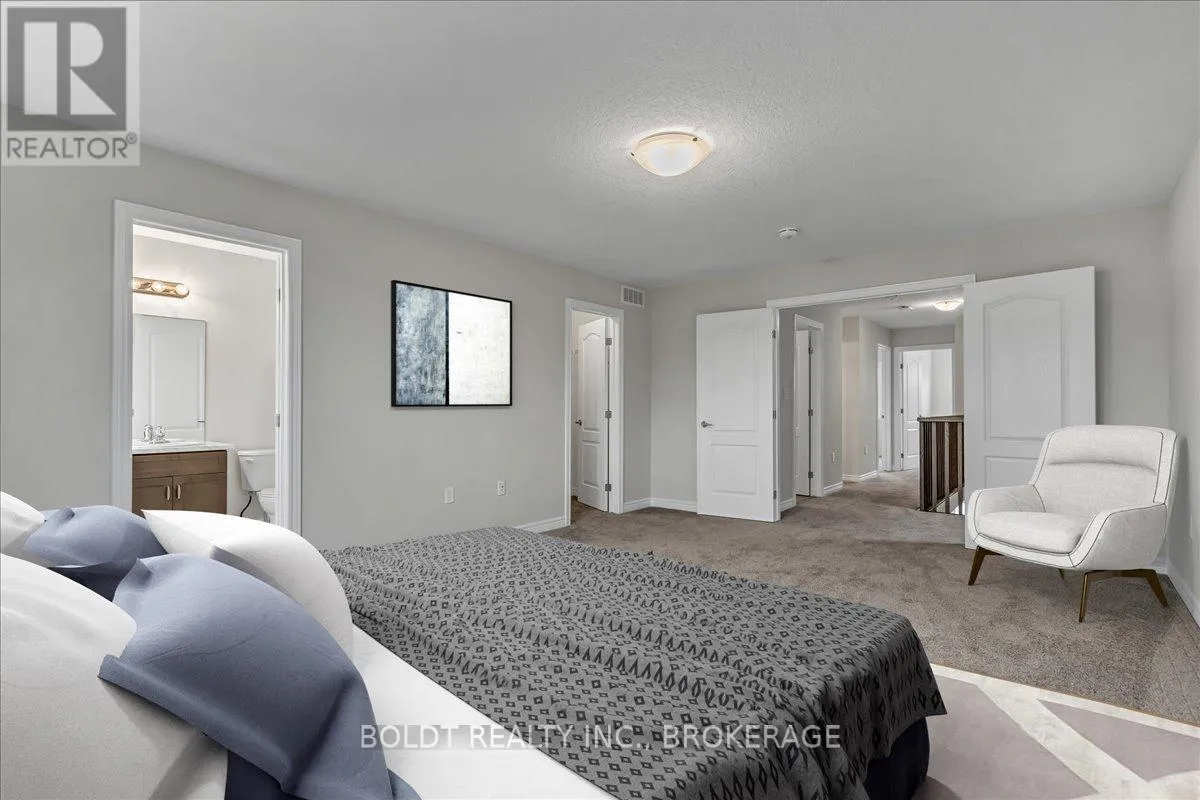 Cross Streets: Tanglewood Dr/Maggie Johnson. ** Directions: Turn left on Tanglewood drive from Maggie Johnson Drive. We are pleased to introduce to you this two year old luxury townhome built by John Bruce Robinson. This end unit 3 bedroom townhome is perfectly located on Tanglewood Drive with existing homes. As you approach this home you are presented with a modern exterior design featuring brick, stone, and vinyl siding. Covered porch to enjoy your morning coffee. The driveway allows for two parking spots and is not shared with an adjacent home. As you enter the home you are presented with a spacious foyer and 2-piece bathroom. Staircase perfectly located with oak railing and wide hallway leading to your open concept living space. The kitchen has many upgrades which includes stainless-steel appliances, cabinets finished to the ceiling with elegant crown moulding, plenty of cabinet space, upgraded quarts countertop with tile backsplash, breakfast bar with ample amount of space for your family to use in the busy mornings. The living room features engineering hardwood floors that are ready to be designed and furnished to your liking with sliding doors leading to the backyard and large windows giving the space plenty of natural light. On the second level you are presented with a spacious primary bedroom which features a large bathroom with his & hers sink, stand-up shower & glass door, and large walk-in closet. The main 4-piece bathroom features tile flooring and surrounding the tub. The other two bedrooms have plenty of space for your family. The walk-in laundry room has closed in tile floor & drain for the washer & dryer for ease of mind. The basement layout allows for easy separation of utility room and open space to be finished to your liking. Walking distance to all the amenities you need and easy access to regional road 56. Book your private showing today! (id:27476)