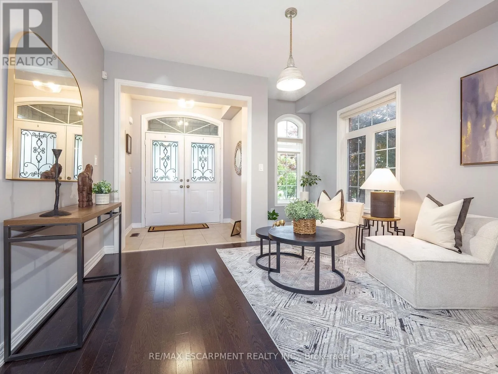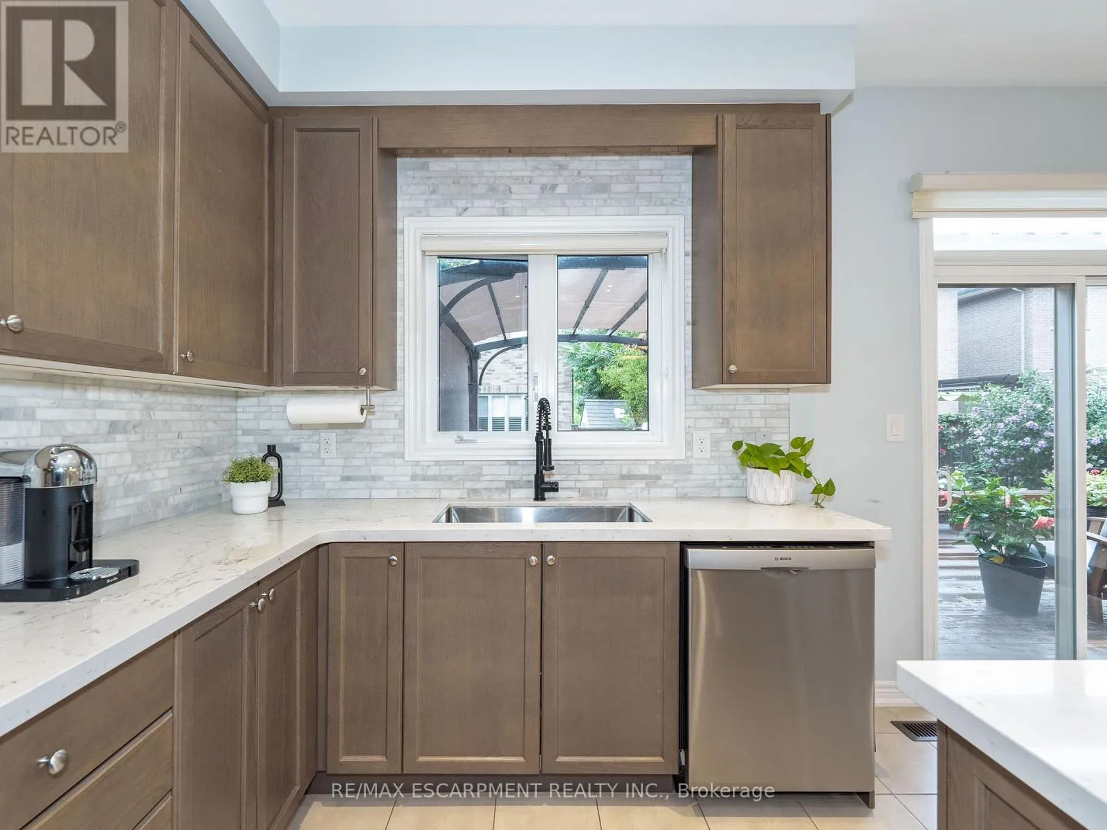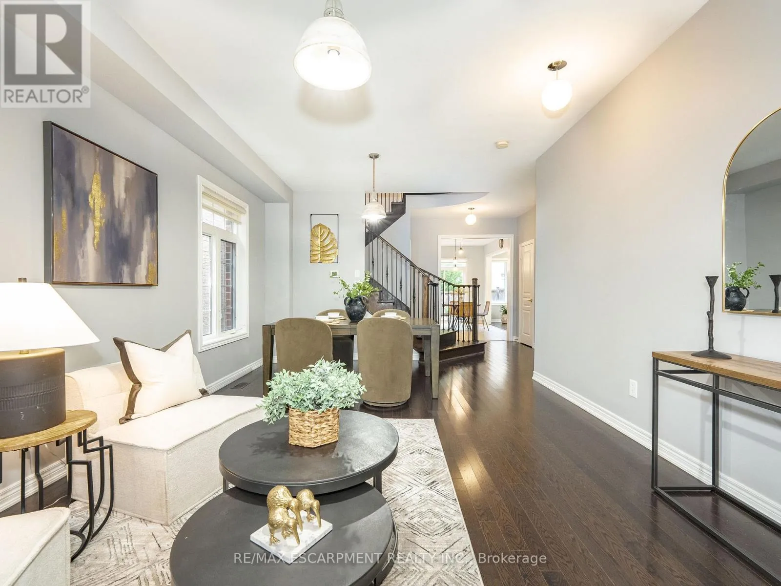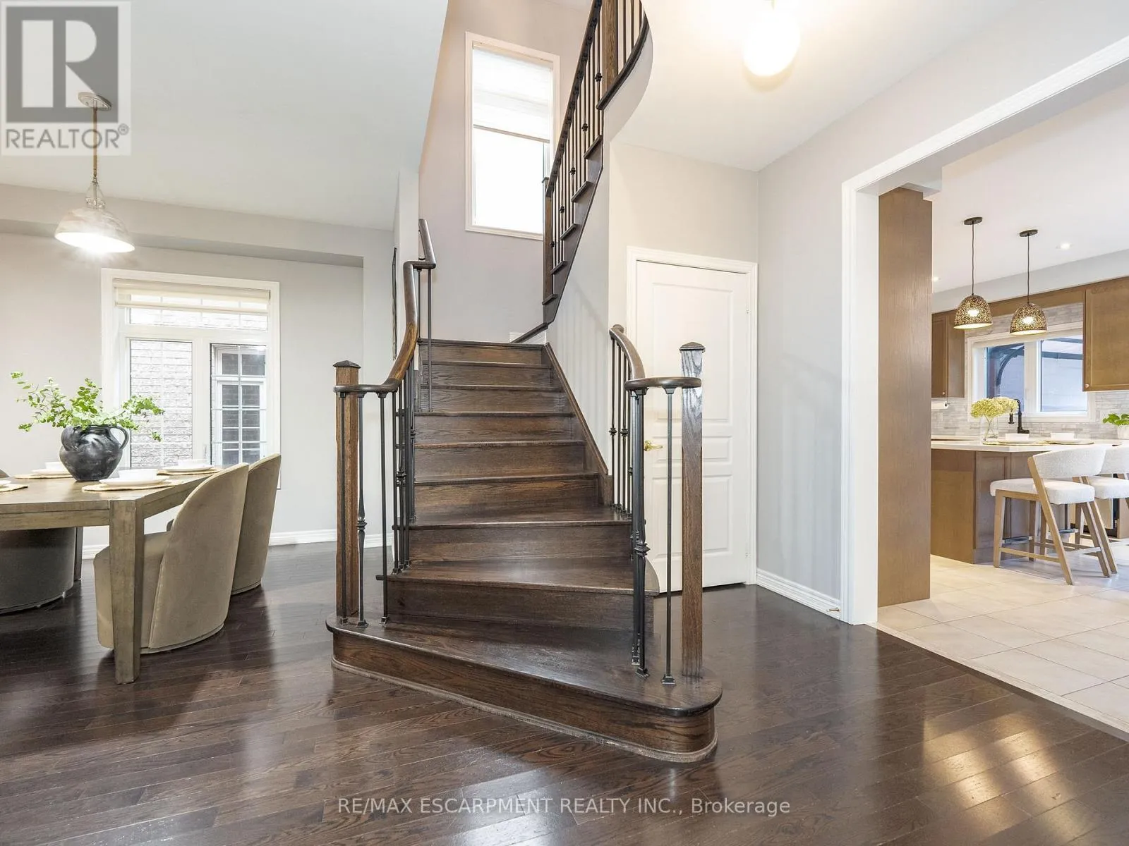 Cross Streets: Dundas To Burke. ** Directions: Dundas to Burke, Burke to McKnight Ave. Stunning 4-bedroom, 4-bathroom 2,575 sq. ft. home in highly sought-after East Waterdown. Designed with modern living in mind, this residence boasts a bright open-concept layout filled with natural light, soaring 9-foot ceilings, and elegant oak hardwood floors and tiles throughout, a completely carpet-free home. Main foyer opens into the huge living/dining area. Spacious mud-room with custom built-in closet and access to garage. The large eat-in kitchen features upgraded cabinetry and premium stainless steel appliances perfect for both everyday meals and entertaining. Upstairs, youll find spacious 4 bedrooms and three bathrooms and three baths including two with their own ensuites, including a luxurious 5-piece retreat and a stylish 4-piece washroom. The large backyard offers plenty of space for family gatherings, gardening, or simply relaxing outdoors. Ideally located close to top-rated schools, scenic hiking trails, and beautiful parks, this home blends comfort, style, and convenience in one exceptional package. The following updates were completed in 2019: Backyard Deck, Front Yard, Kitchen, Bathrooms, Hardwood on Second Floor, Second Floor Built-In Closets, Built-In Shelves on First floor and in-Basement Lighting. (id:27476)