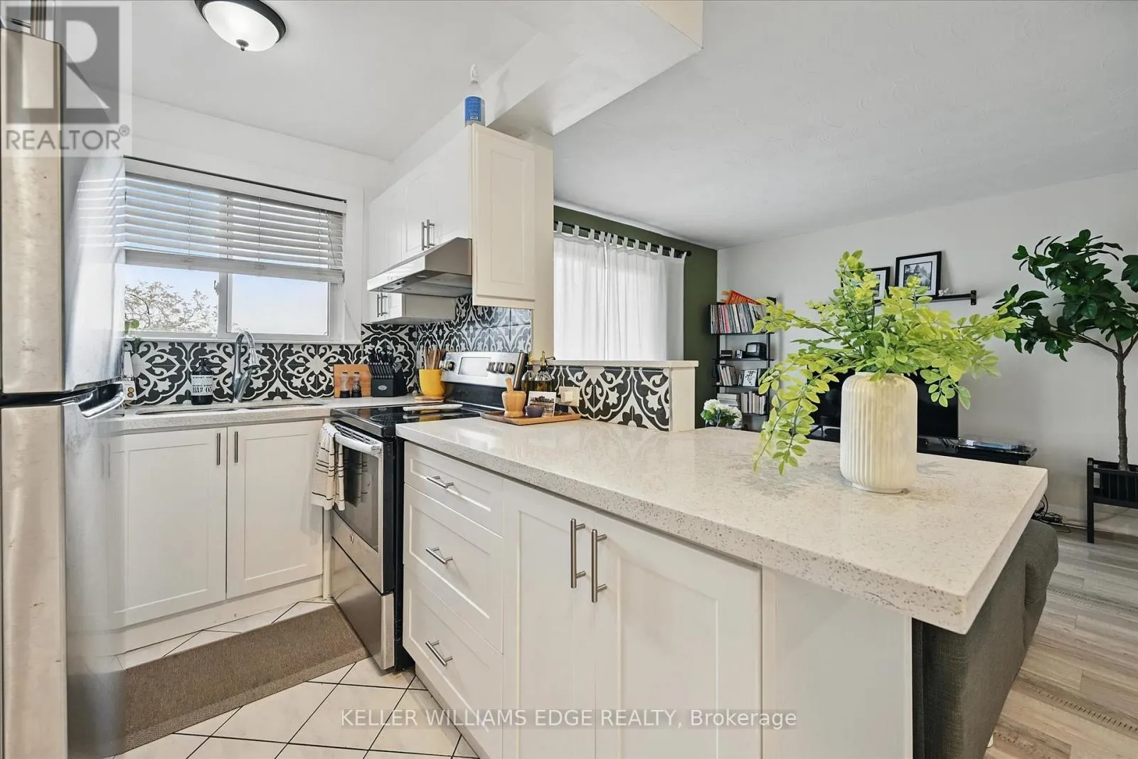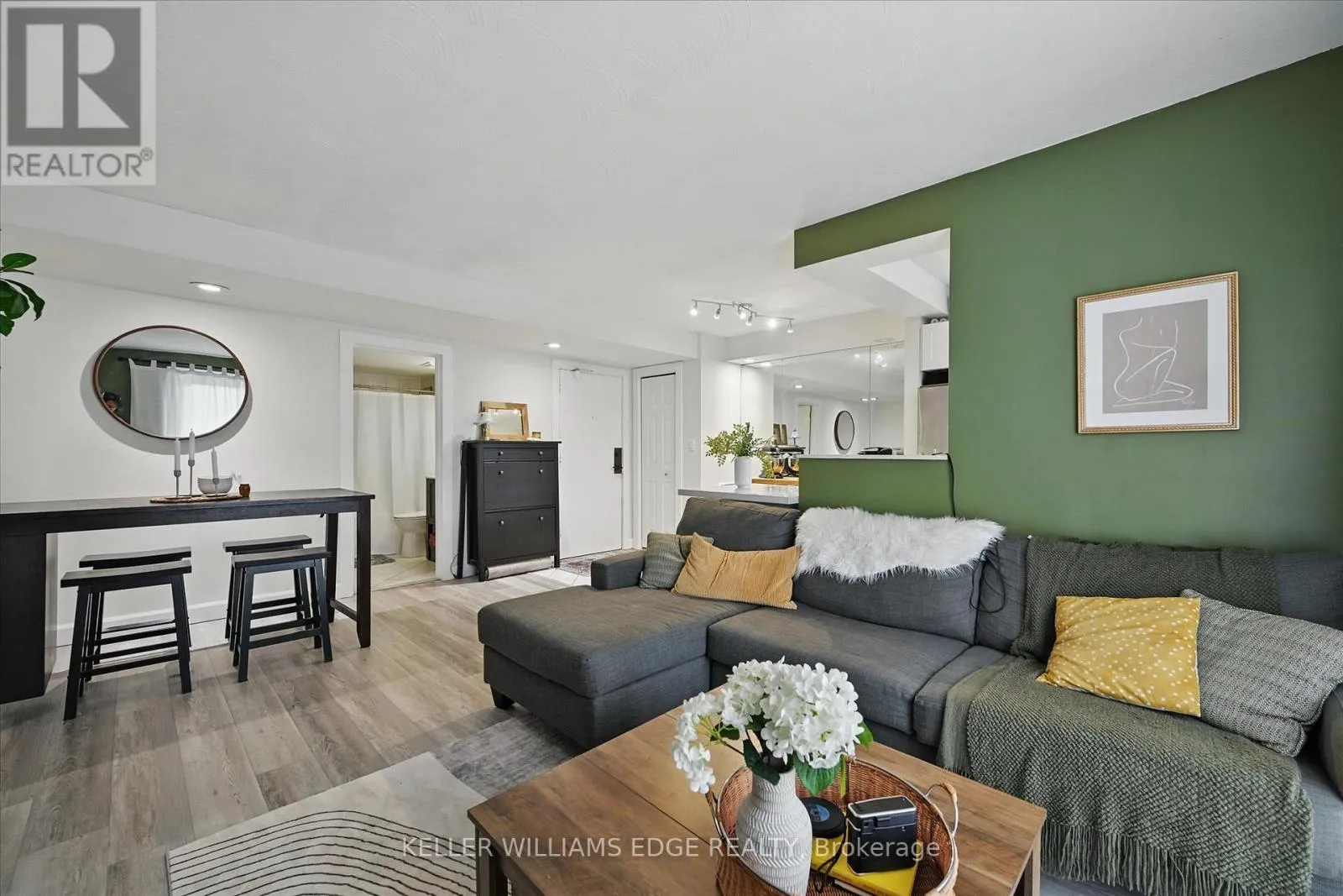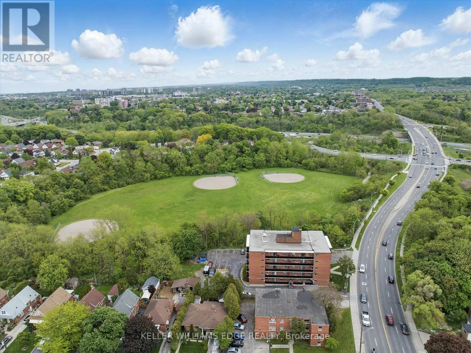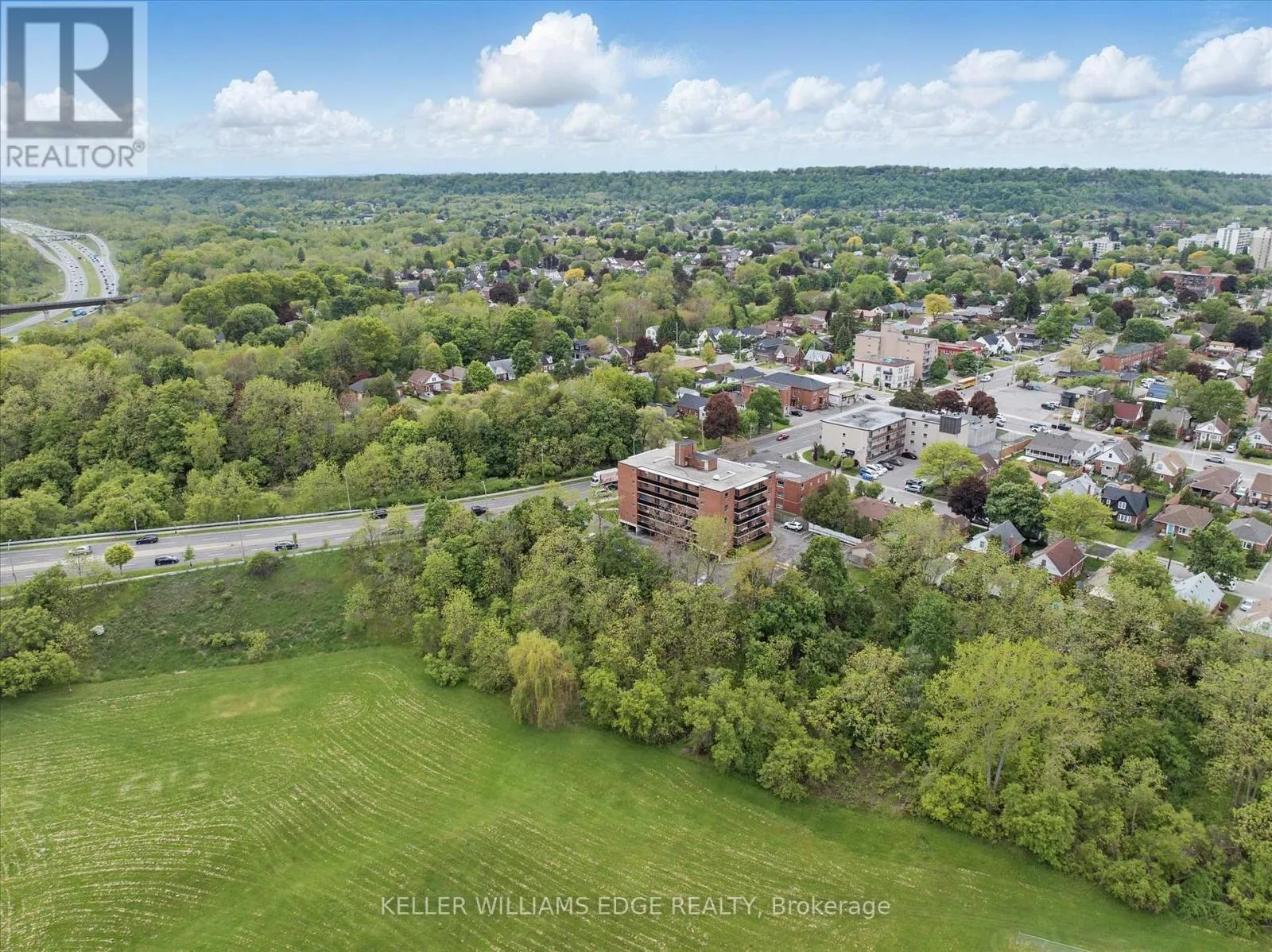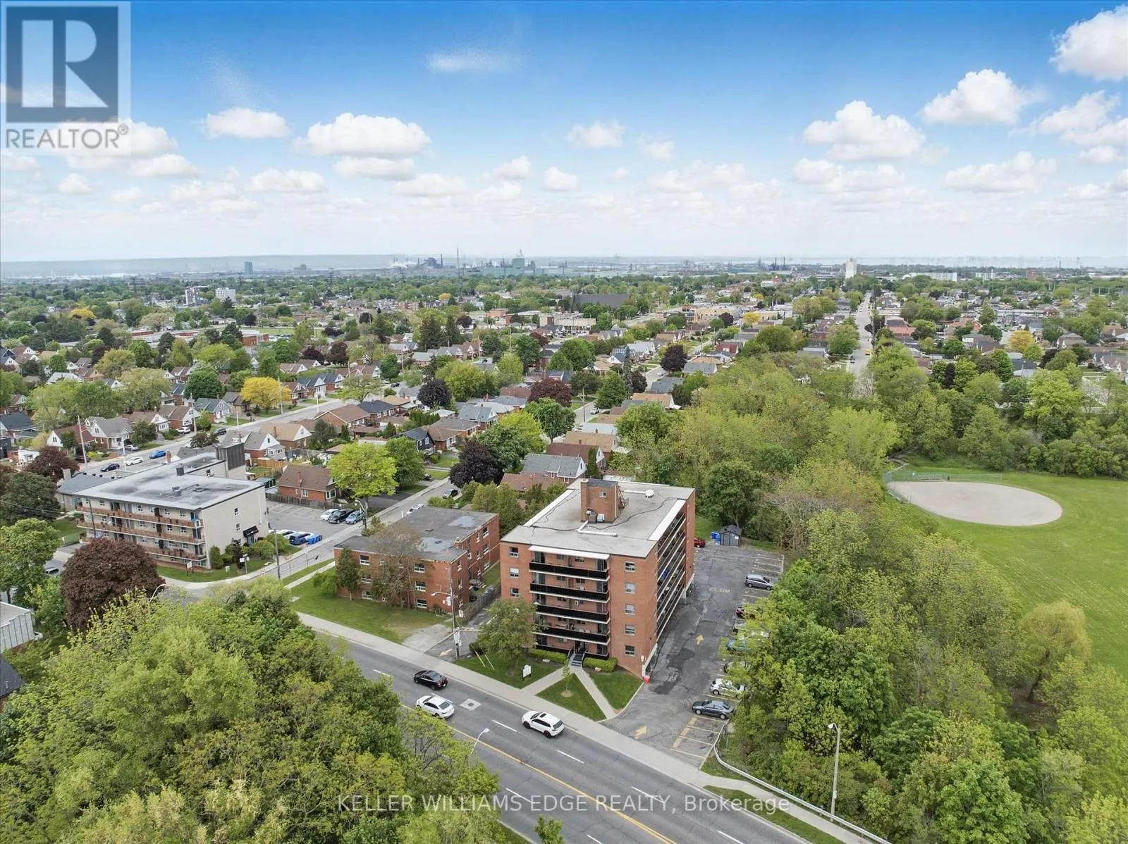 Cross Streets: Parkdale Ave S. ** Directions: King St E & Parkdale Ave S. Welcome to this bright and stylish 1-bedroom, 1-bathroom condo offering 618 square feet of comfortable, well-designed living space on the 4th floor of a quiet and well-maintained building in East Hamilton. The updated kitchen features quartz countertops, a double undermount sink, and a convenient breakfast bar, all open to the spacious living area with walk-out to a private balcony -perfect for enjoying morning coffee or evening sunsets. The bedroom is generously sized, and the unit offers great natural light throughout. Additional highlights include secure building entry, elevator access, low monthly condo fees, a clean and well-kept on-site laundry room, one dedicated parking space, and a storage locker just around the corner from the unit. The building is surrounded by mature trees and green space, with plenty of visitor parking available. Located just minutes from the Red Hill Valley Parkway, the Lincoln Alexander Parkway, and the QEW, this location is ideal for commuters. You're also close to Red Hill Bowl Park and an entrance to the Red Hill Valley Trail, offering easy access to nature right outside your door. A fantastic opportunity for first-time buyers, downsizers, or anyone seeking move-in-ready, low-maintenance living in a connected and friendly neighbourhood. (id:27476)