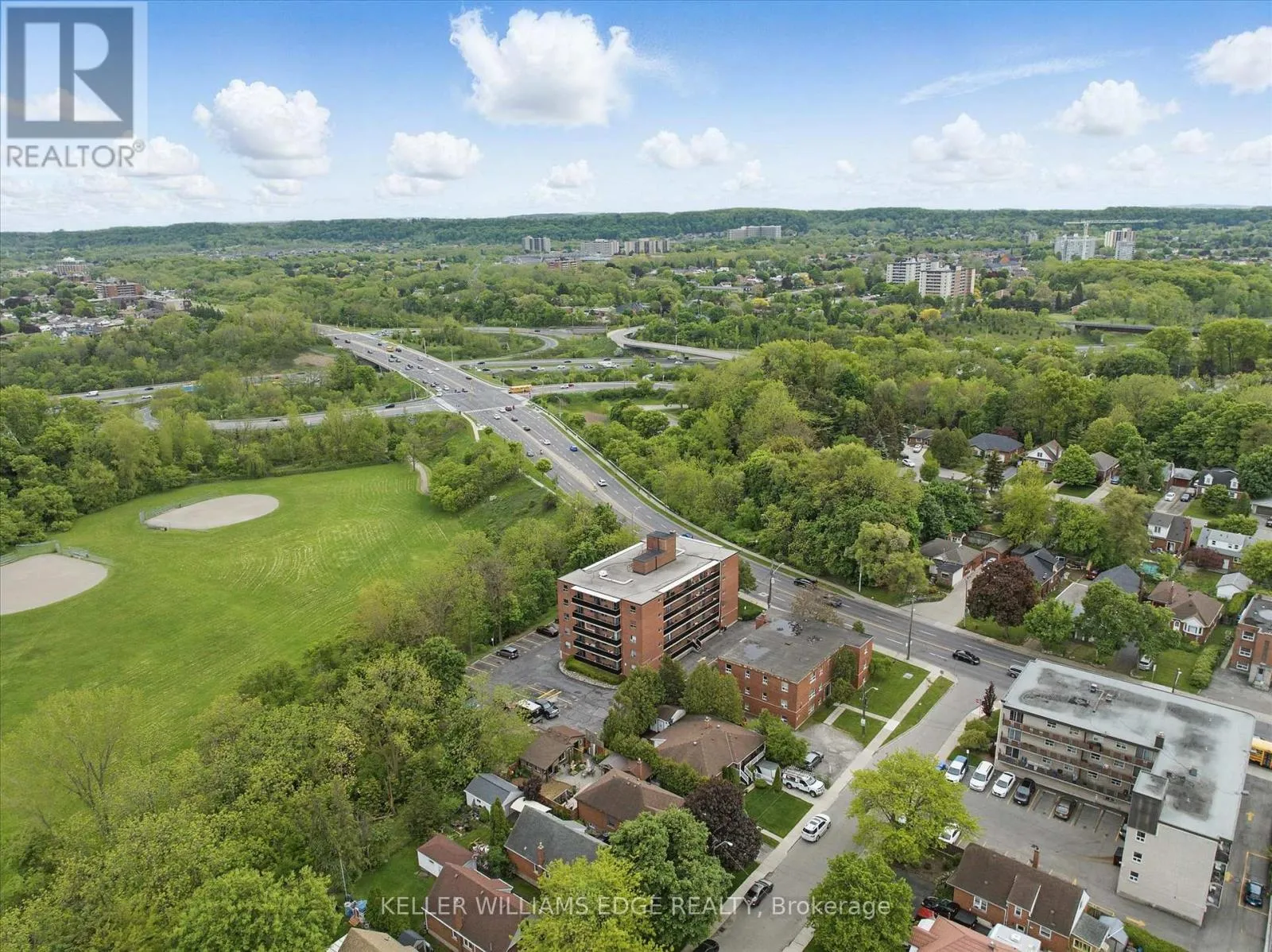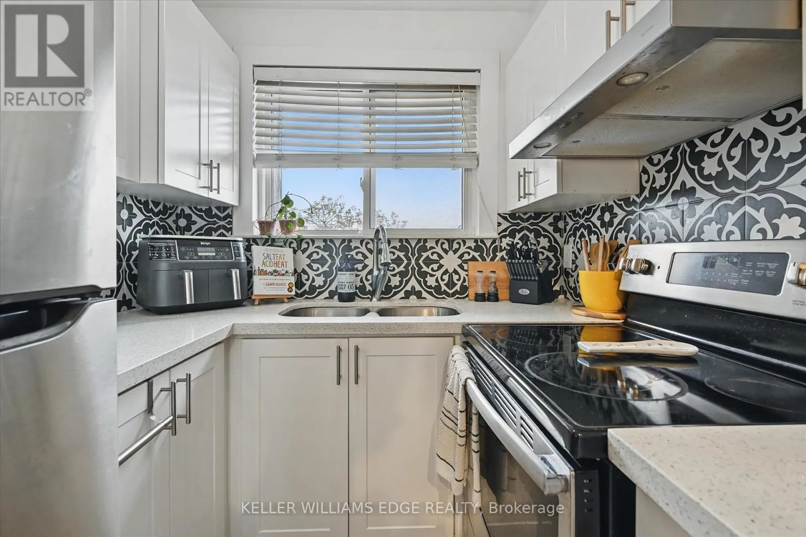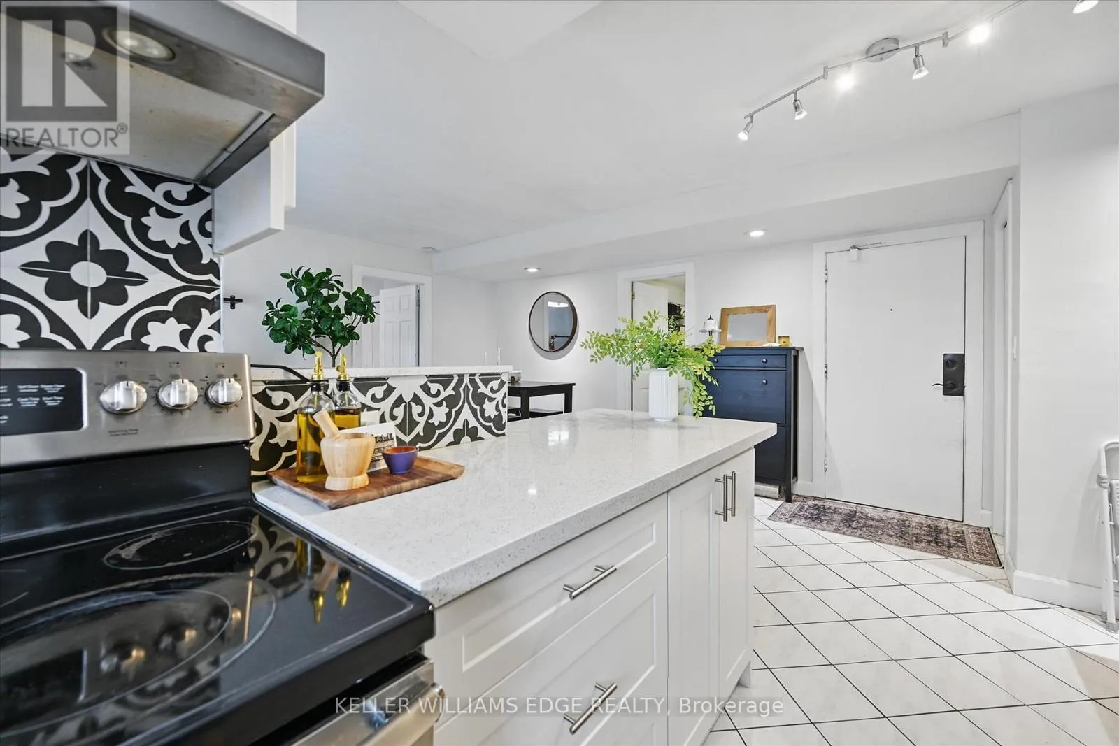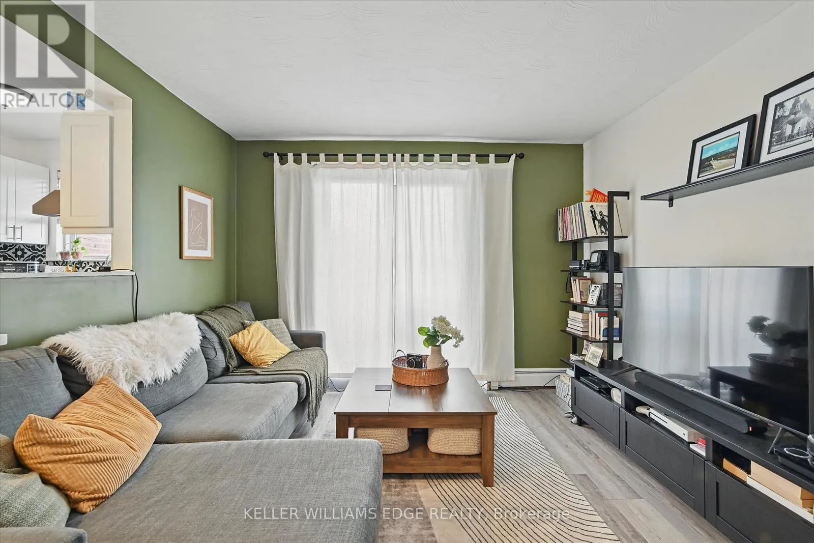 Cross Streets: Parkdale Ave S. ** Directions: King St E & Parkdale Ave S. Welcome to this bright and stylish 1-bedroom, 1-bathroom condo offering 618 square feet of comfortable, well-designed living space on the 4th floor of a quiet and well-maintained building in East Hamilton. The updated kitchen features quartz countertops, a double undermount sink, and a convenient breakfast bar, all open to the spacious living area with walk-out to a private balcony -perfect for enjoying morning coffee or evening sunsets. The bedroom is generously sized, and the unit offers great natural light throughout. Additional highlights include secure building entry, elevator access, low monthly condo fees, a clean and well-kept on-site laundry room, one dedicated parking space, and a storage locker just around the corner from the unit. The building is surrounded by mature trees and green space, with plenty of visitor parking available. Located just minutes from the Red Hill Valley Parkway, the Lincoln Alexander Parkway, and the QEW, this location is ideal for commuters. You're also close to Red Hill Bowl Park and an entrance to the Red Hill Valley Trail, offering easy access to nature right outside your door. A fantastic opportunity for first-time buyers, downsizers, or anyone seeking move-in-ready, low-maintenance living in a connected and friendly neighbourhood. (id:27476)