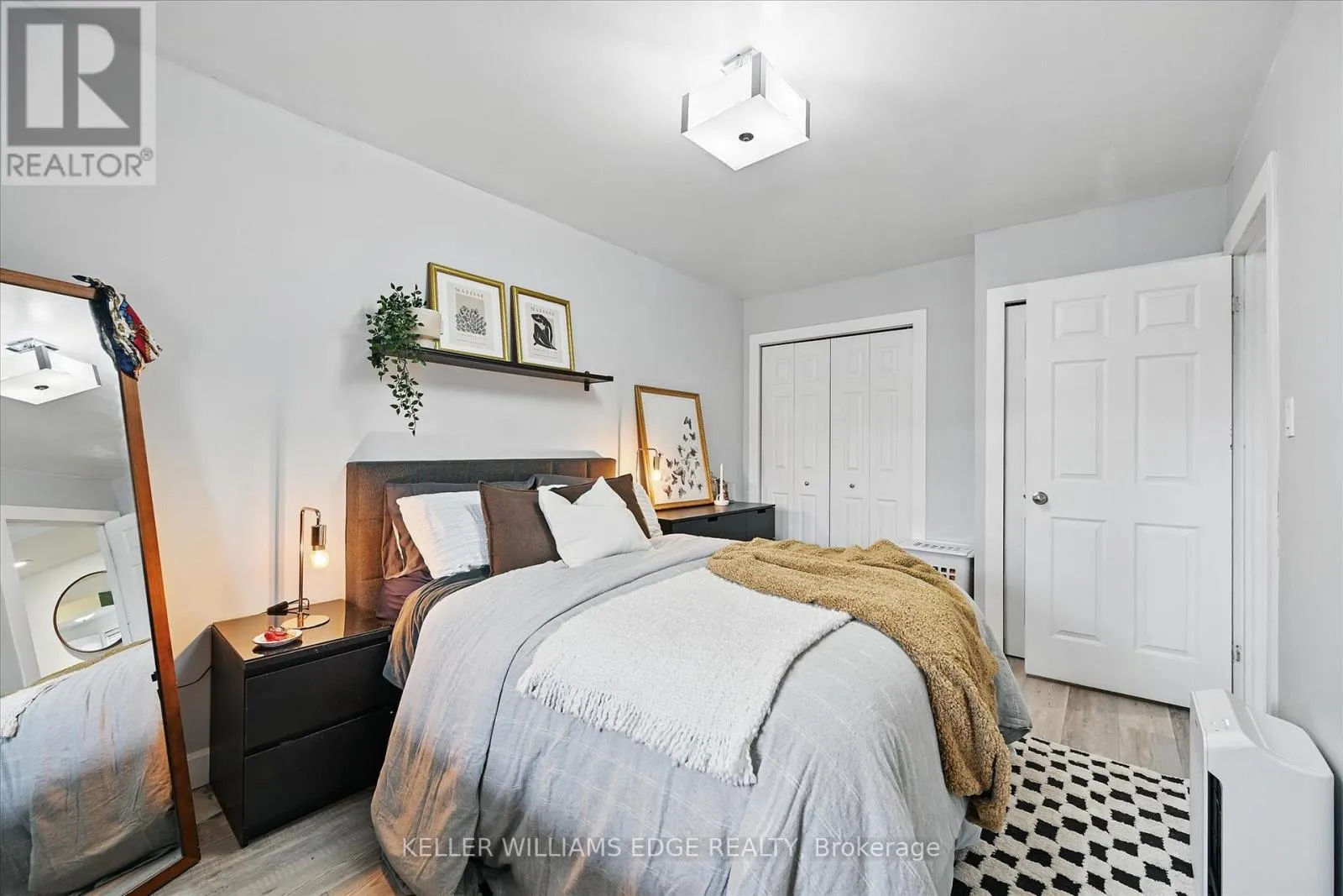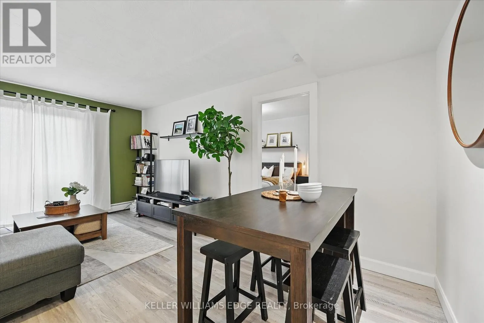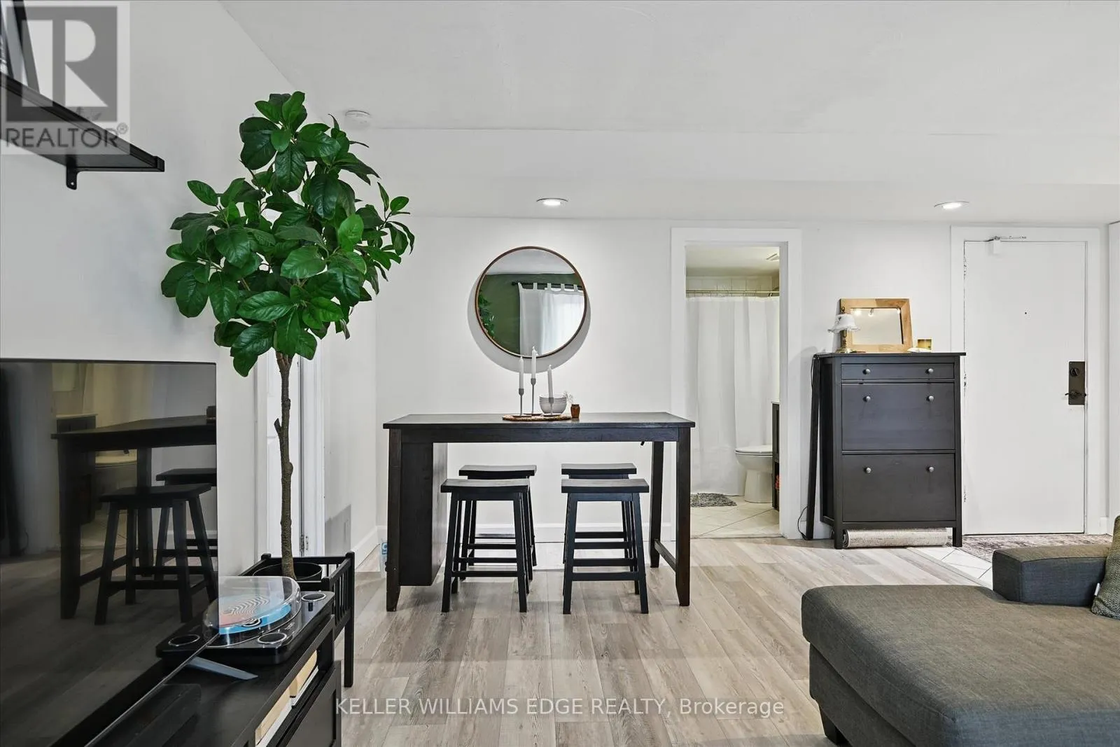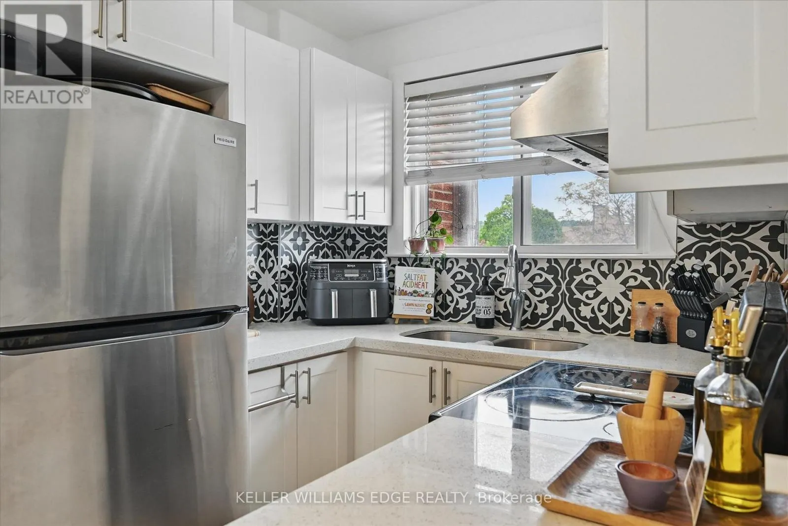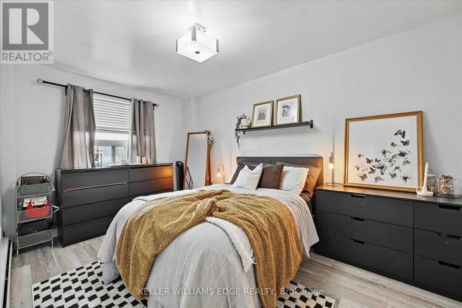 Cross Streets: Parkdale Ave S. ** Directions: King St E & Parkdale Ave S. Welcome to this bright and stylish 1-bedroom, 1-bathroom condo offering 618 square feet of comfortable, well-designed living space on the 4th floor of a quiet and well-maintained building in East Hamilton. The updated kitchen features quartz countertops, a double undermount sink, and a convenient breakfast bar, all open to the spacious living area with walk-out to a private balcony -perfect for enjoying morning coffee or evening sunsets. The bedroom is generously sized, and the unit offers great natural light throughout. Additional highlights include secure building entry, elevator access, low monthly condo fees, a clean and well-kept on-site laundry room, one dedicated parking space, and a storage locker just around the corner from the unit. The building is surrounded by mature trees and green space, with plenty of visitor parking available. Located just minutes from the Red Hill Valley Parkway, the Lincoln Alexander Parkway, and the QEW, this location is ideal for commuters. You're also close to Red Hill Bowl Park and an entrance to the Red Hill Valley Trail, offering easy access to nature right outside your door. A fantastic opportunity for first-time buyers, downsizers, or anyone seeking move-in-ready, low-maintenance living in a connected and friendly neighbourhood. (id:27476)