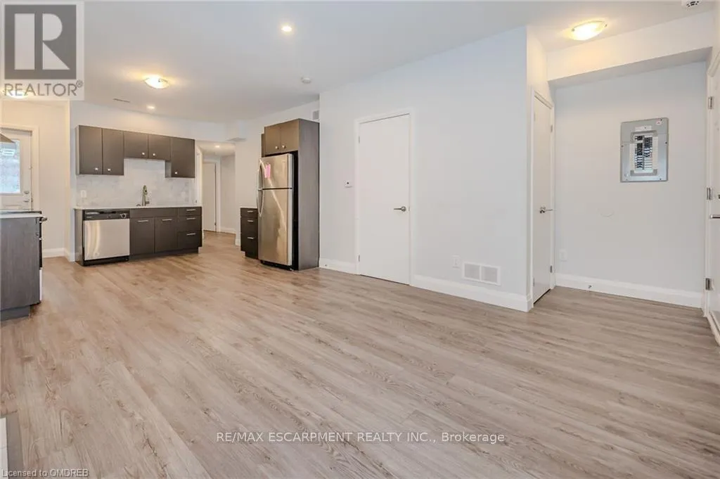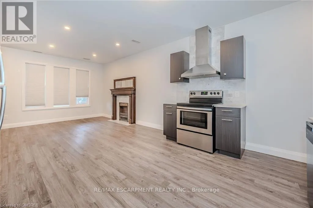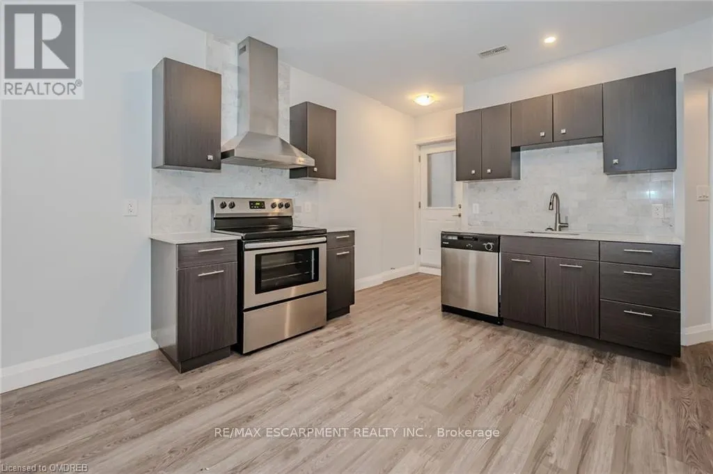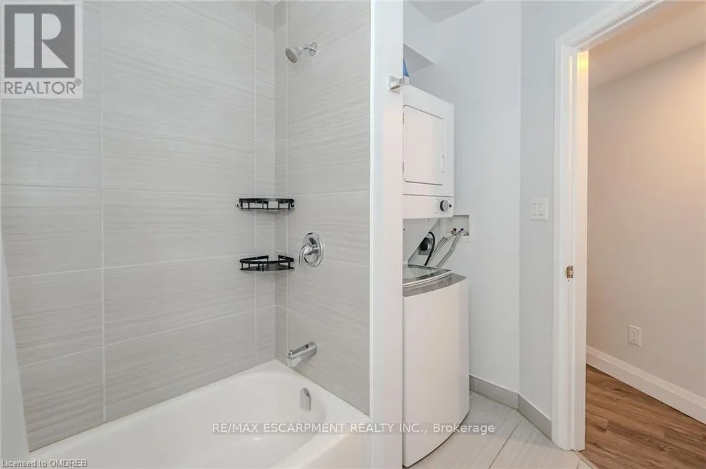 Cathcart St & Cannon St E Welcome to this bright and updated 1-bedroom, 1-bathroom condo in Hamilton's Beasley neighbourhood. The unit features laminate floors, large windows, and a modern kitchen with stainless steel appliances, stone counters, and a tile backsplash. The updated 4-piece bathroom includes a bath/shower combo and tile floors, and you'll also enjoy the convenience of in-suite laundry. Located close to shopping, parks, Lake Ontario, and major highways, this home offers both comfort and everyday convenience in a great central location. Parking for 1, flexible possession. Tenant to pay utilities. (id:27476)
