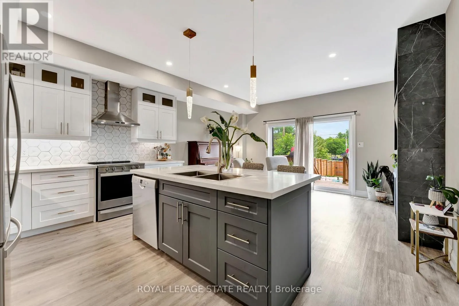 Cross Streets: Dundurn St S. ** Directions: Dundurn St S and Melbourne St. This thoughtfully built semi-detached home, located in the heart of Kirkendall, is perfectly situated just steps from Locke Streets popular restaurants, cafes, and shops. The fully finished lower level features 9' coffered ceilings and offers flexible space for a home office, gym, or family room. The open-concept main floor includes a modern eat-in kitchen with stainless steel appliances and quartz countertops, flowing into a bright living area with sliding doors that open to a large backyard great for everyday living or hosting friends. The second floor includes 3 bedrooms and 3.5 baths, including a spacious primary suite with its own ensuite. Additional features include a tiled garage and easy access to a shared community garden, dog park, and children's playground. Close to schools and churches, and with convenient highway access, this gem offers comfort, culture, and a strong sense of community. Some photos VS (id:27476)