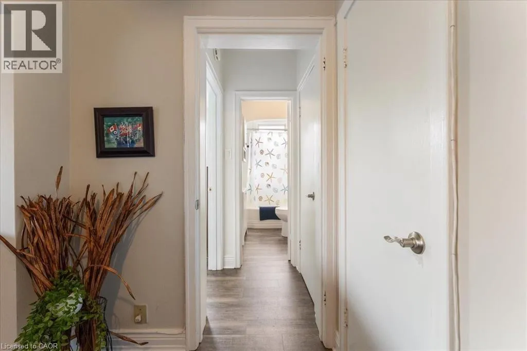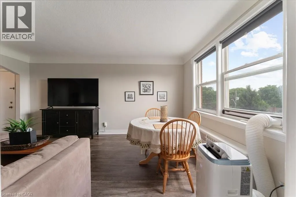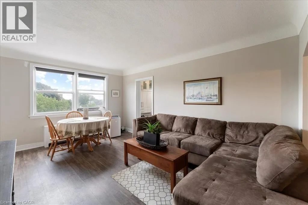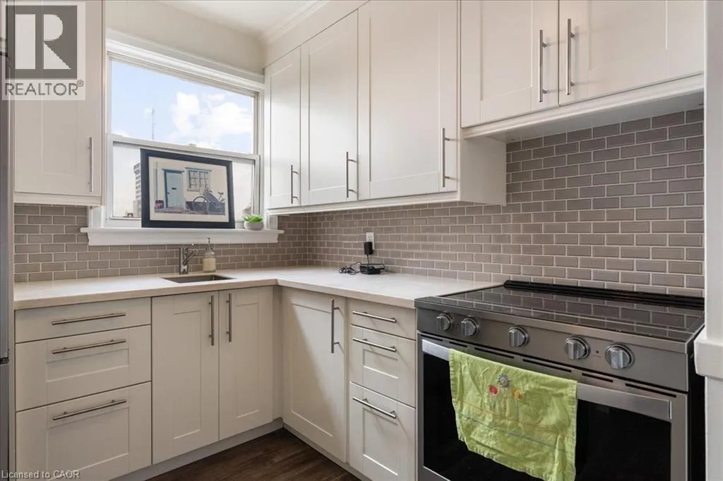 North on East 36th off Concession, Building on East side of Street Building B Charming, turn-key 1 bed, 1 bath unit in desired, well maintained and affordable East Brow Co-operative. This unit has undergone extensive updates including a lovely kitchen featuring white cabinetry w/ crown moulding, corian counters, built-in pantry/display cabinet, included stainless steel whirlpool fridge and stove. Updated toilet and vanity in bathroom. Durable and attractive vinyl plank flooring throughout unit. Electrical updated to breakers. Charming archways and coved ceilings in open living room/dining room. Lots of closet space, and additional storage included with exclusive use locker(in basement). Enjoy the quiet rear of the building location of this unit with views of quaint and mature neighbourhood. Wander out front of the building to take in the east Hamilton escarpment views. Walk to great restaurants and shops on Concession. Easy access to trails, transit, airport and Juravinski Hospital. Co-op fees $568 monthly includes: property taxes, parking, heat, water and exterior maintenance. Hydro is ownerâs responsibility. Pets are welcome with some restrictions. (id:27476)