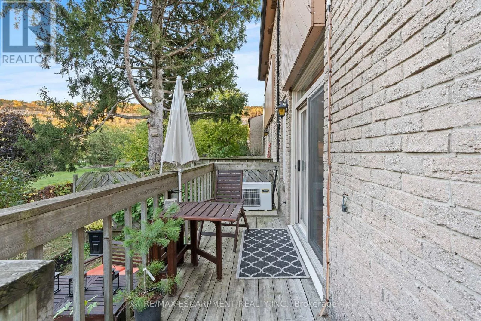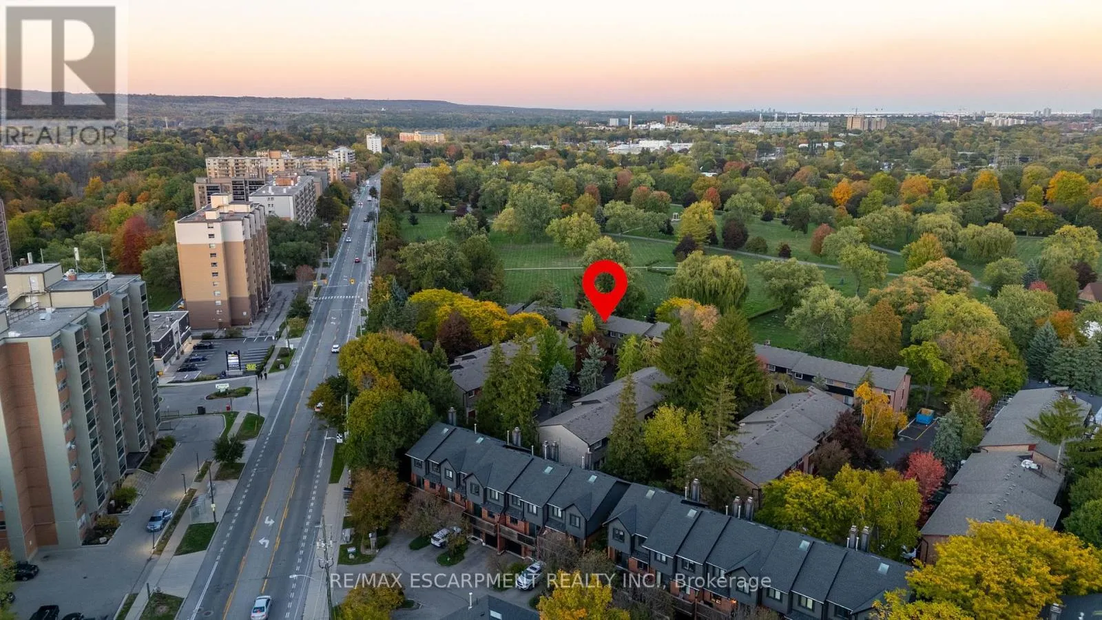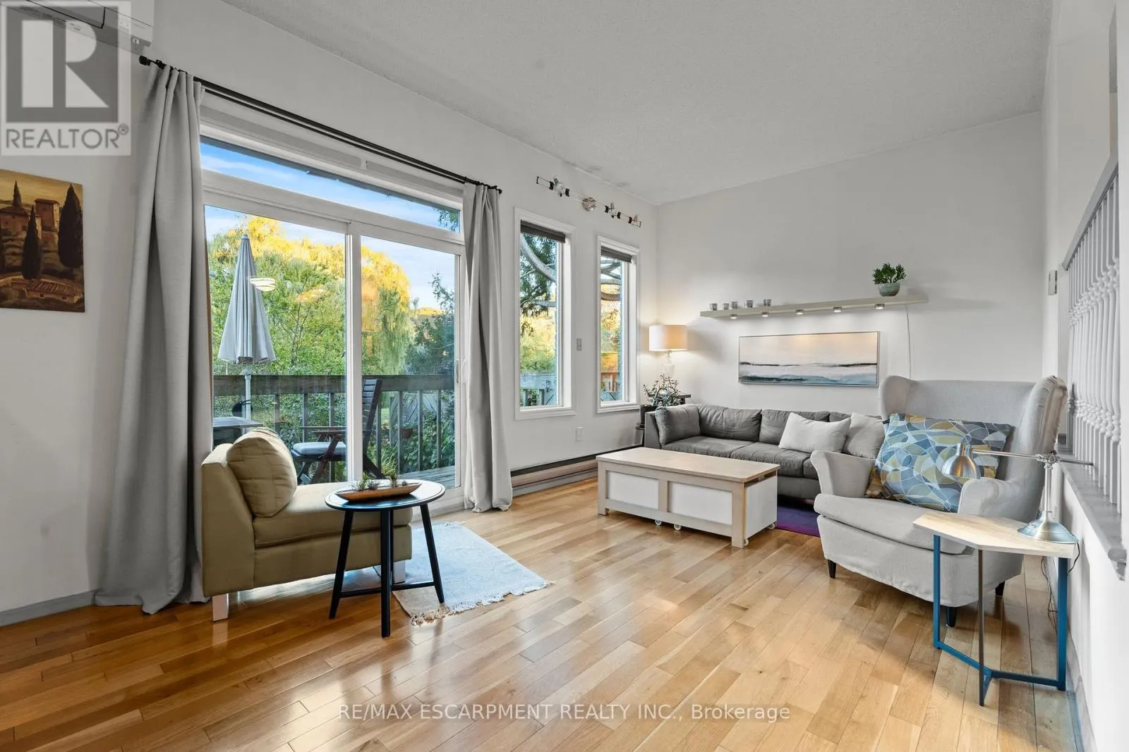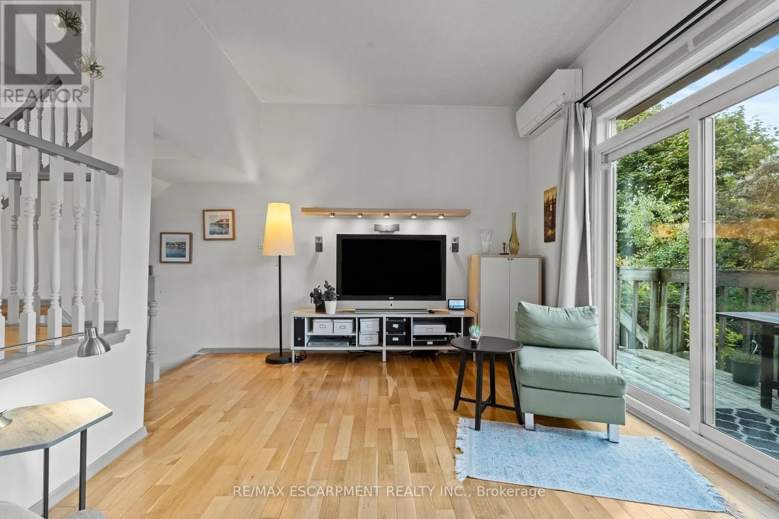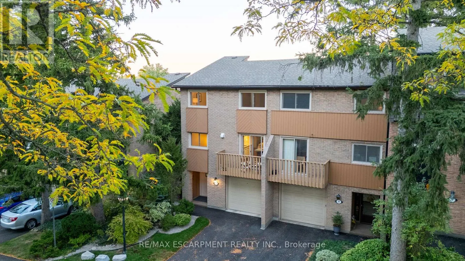 Whitney Ave Beautiful end unit townhouse located in the highly desirable Ainslie Wood West Hamilton area. Just minutes from Tiffany Falls, scenic trails, parks, restaurants, everyday amenities, public transit, Highway 403, Lincoln M. Alexander Pkwy, and McMaster University/Hospital. Nestled among mature trees, this home offers a walk-out from the living room to a private backyard with stunning escarpment views. The entertaining area offers a bright light filled living room with sliding patio door with transom window, and a spacious dining area just off the kitchen. There is also a main floor den that's perfect as a kids' playroom, additional bedroom/guest room, or home office-flexible space to suit your family's needs. The upper level offers a 4-piece bathroom with an updated vanity & 3 spacious bedrooms (primary with oversized closet and all with custom closet doors). Hardwood floors on the upper levels. Finished basement complete with a convenient powder room-ideal for extra living space, a play area, or a family rec room. Equipped with an efficient Mitsubishi ductless heat pump split unit system for both heating and air conditioning, ensuring year-round comfort. 100 Amp Breaker. Parking for two vehicles with both a garage and driveway space. (id:27476)