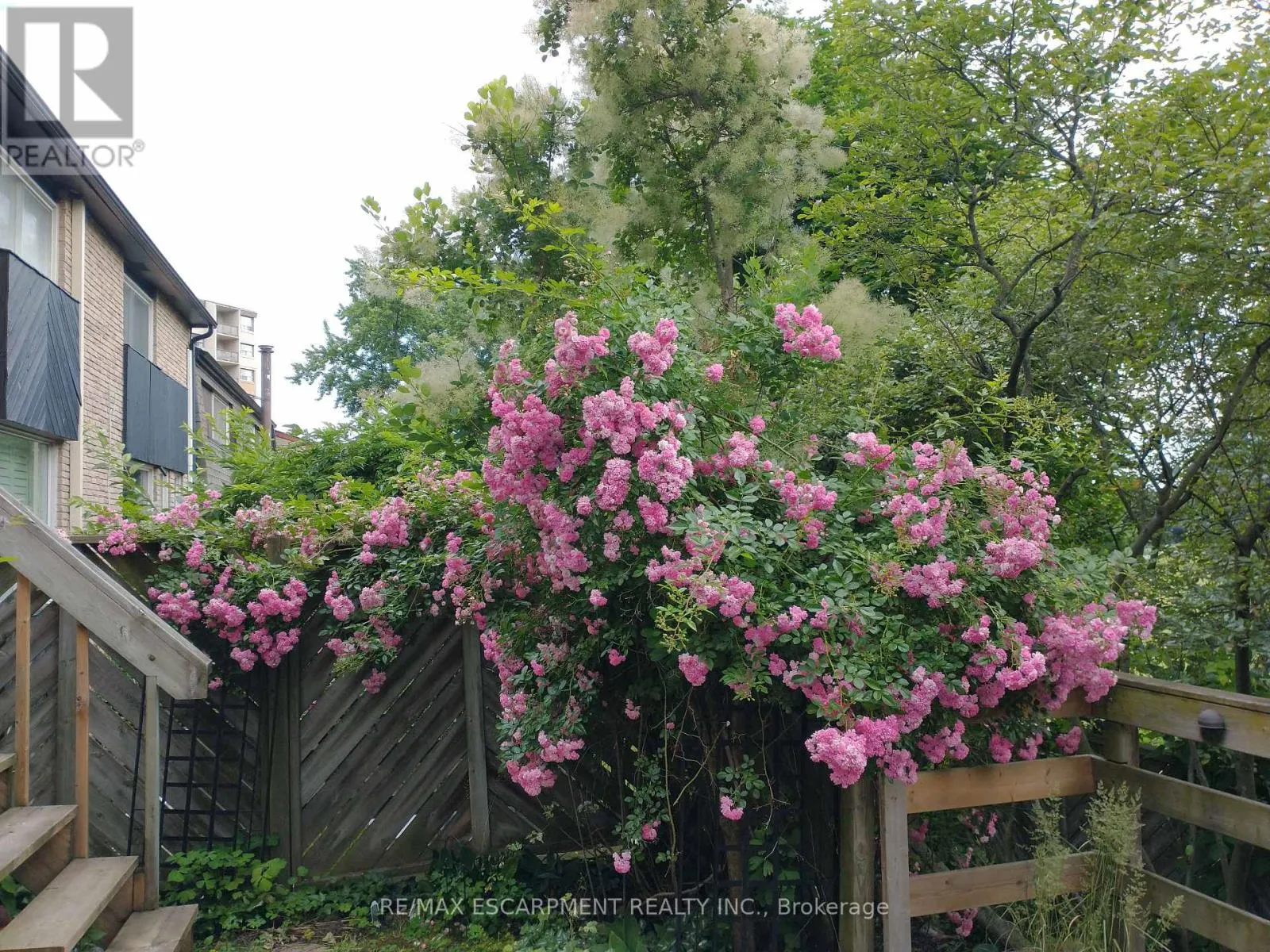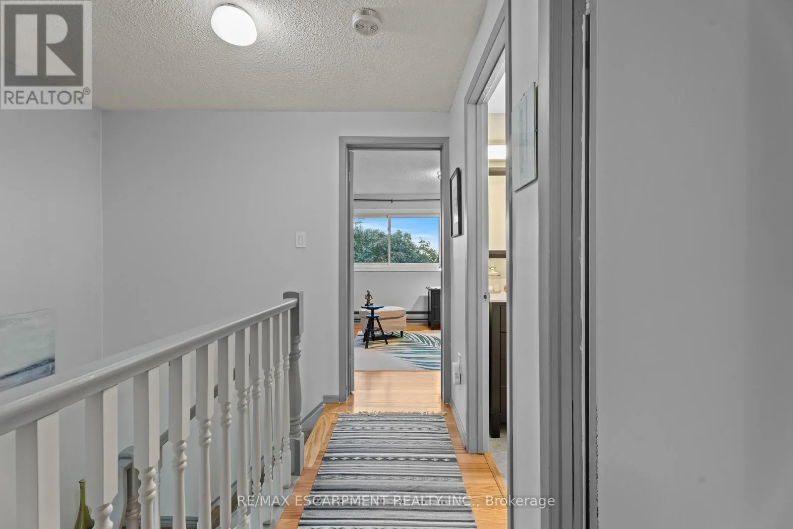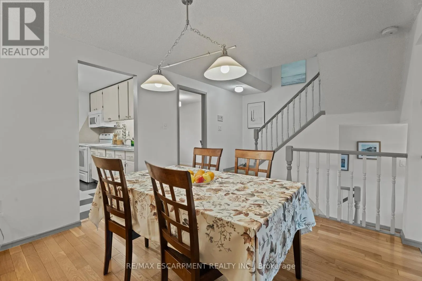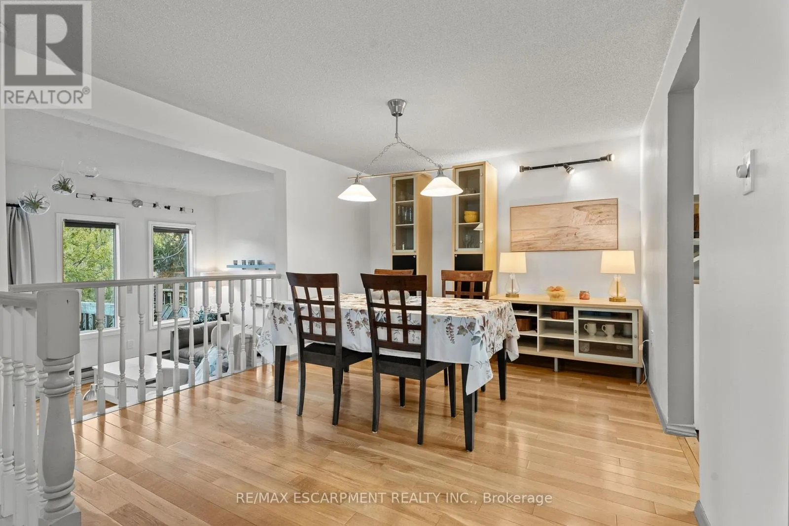 Whitney Ave Beautiful end unit townhouse located in the highly desirable Ainslie Wood West Hamilton area. Just minutes from Tiffany Falls, scenic trails, parks, restaurants, everyday amenities, public transit, Highway 403, Lincoln M. Alexander Pkwy, and McMaster University/Hospital. Nestled among mature trees, this home offers a walk-out from the living room to a private backyard with stunning escarpment views. The entertaining area offers a bright light filled living room with sliding patio door with transom window, and a spacious dining area just off the kitchen. There is also a main floor den that's perfect as a kids' playroom, additional bedroom/guest room, or home office-flexible space to suit your family's needs. The upper level offers a 4-piece bathroom with an updated vanity & 3 spacious bedrooms (primary with oversized closet and all with custom closet doors). Hardwood floors on the upper levels. Finished basement complete with a convenient powder room-ideal for extra living space, a play area, or a family rec room. Equipped with an efficient Mitsubishi ductless heat pump split unit system for both heating and air conditioning, ensuring year-round comfort. 100 Amp Breaker. Parking for two vehicles with both a garage and driveway space. (id:27476)
