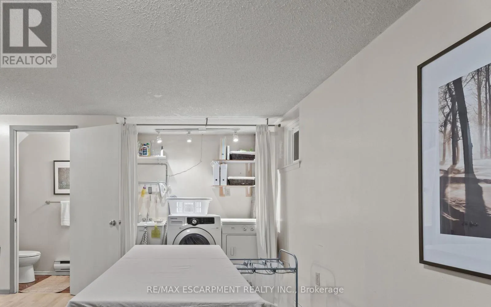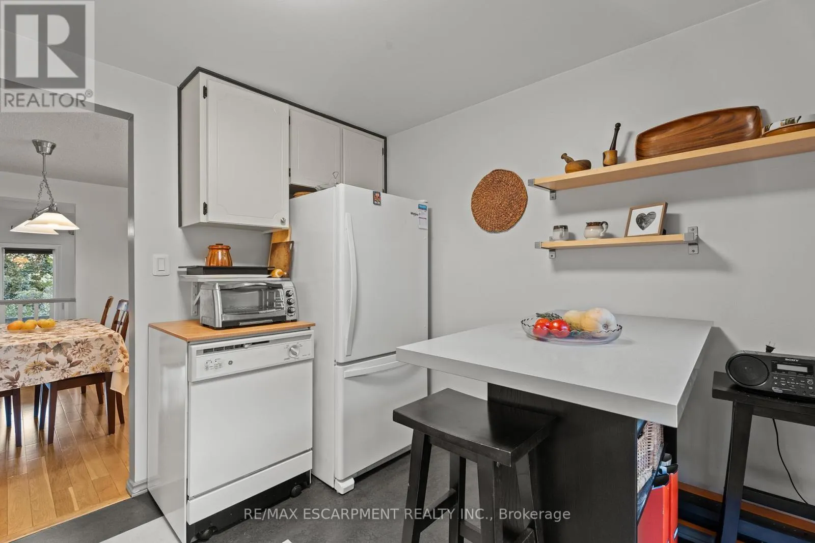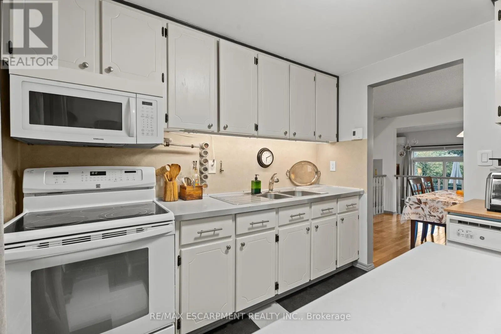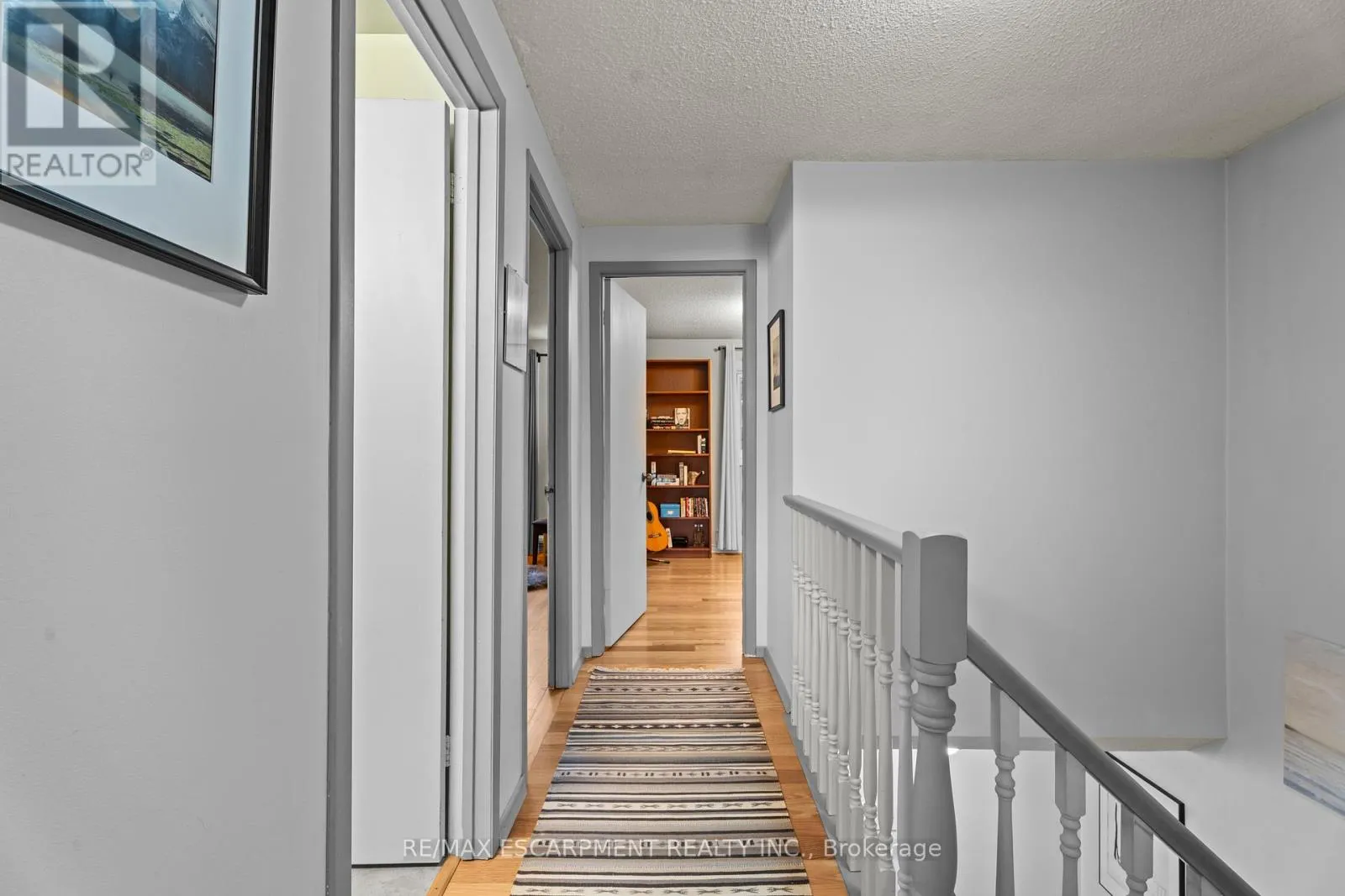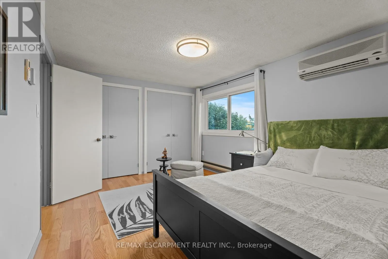 Whitney Ave Beautiful end unit townhouse located in the highly desirable Ainslie Wood West Hamilton area. Just minutes from Tiffany Falls, scenic trails, parks, restaurants, everyday amenities, public transit, Highway 403, Lincoln M. Alexander Pkwy, and McMaster University/Hospital. Nestled among mature trees, this home offers a walk-out from the living room to a private backyard with stunning escarpment views. The entertaining area offers a bright light filled living room with sliding patio door with transom window, and a spacious dining area just off the kitchen. There is also a main floor den that's perfect as a kids' playroom, additional bedroom/guest room, or home office-flexible space to suit your family's needs. The upper level offers a 4-piece bathroom with an updated vanity & 3 spacious bedrooms (primary with oversized closet and all with custom closet doors). Hardwood floors on the upper levels. Finished basement complete with a convenient powder room-ideal for extra living space, a play area, or a family rec room. Equipped with an efficient Mitsubishi ductless heat pump split unit system for both heating and air conditioning, ensuring year-round comfort. 100 Amp Breaker. Parking for two vehicles with both a garage and driveway space. (id:27476)