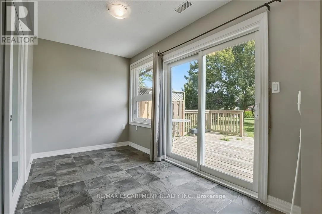 Garth Street & Rymal Road West Welcome to 5 Archdeacon, located in the sought after gated 55+ community of St. Elizabeth Village. This 1,243 sq. ft. bungalow offers convenient one-floor living with 2 bedrooms, a den, and 1.5 bathrooms. The spacious primary suite features a private ensuite with walk-in shower and a walk-in closet. The open-concept kitchen flows into the bright living and dining area, filled with natural light from the east-facing windows at the back of the home. Step out onto the deck and enjoy peaceful views of the expansive greenspace. The Village provides a vibrant lifestyle with exceptional amenities, including a heated indoor pool, gym, saunas, hot tub, golf simulator, woodworking and stained glass shops, doctors office, pharmacy, massage clinic, and more. Everyday conveniences are close at hand with grocery stores, shopping, restaurants, and public transit just minutes away with direct bus service into the Village. Property taxes, water, and all exterior maintenance are included in the monthly fees. (id:27476)
