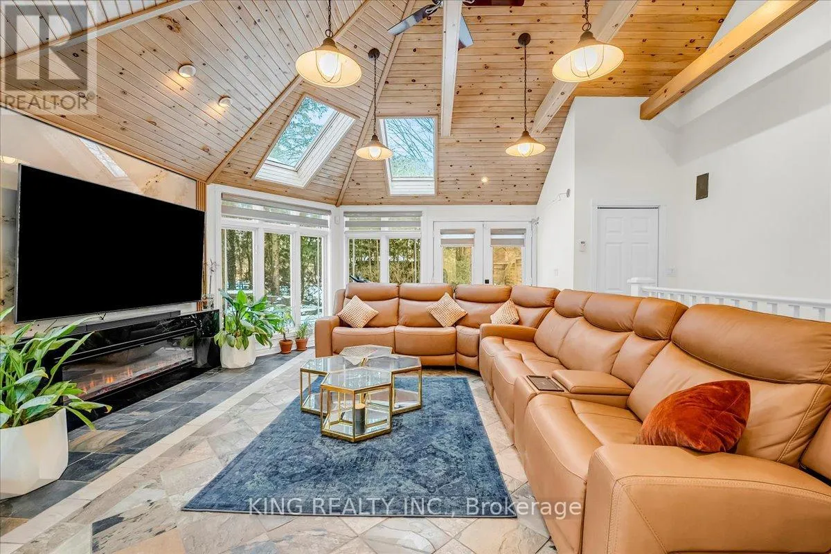 Centre Road Newly Renovated Gorgeous custom home in the picturesque hamlet of Carlisle! Enjoy tranquil summer nights on the expansive patio with a pond and waterfall overlooking your large, pool- sized backyard (no neighbors behind), or build your own veggie garden among mature trees. Key Features: Hardwood flooring and formal living and dining rooms. Main floor family room with a wood fireplace. Great room with an electric fireplace, accent wall, skylights, large windows, and heated floors. Rec room with a pool table in the basement great room. Sunroom with heated floors. Main floor mudroom with laundry and a 2.5-car garage. Private Retreats: Large principal bedroom with a 4-piece ensuite and walk-in closet. Newly renovated second primary room with an ensuite bathroom and spacious closet. Separate entrance to the in-law suite, featuring a kitchen, 4-piece bath, living room, and 2 bedrooms. Additional Features: Great location: approximately 10 minutes to Milton, Burlington, and Hamilton, and 35 minutes to Mississauga. In-ground sprinkler system. Brand-new fence with professional front and back landscaping. New water heaters. New pot lights throughout the home. New outdoor lights. New plumbing in all bathrooms. Smart toilets in all four bathrooms (main and second levels). New floors on the second level. Freshly painted. (id:27476)