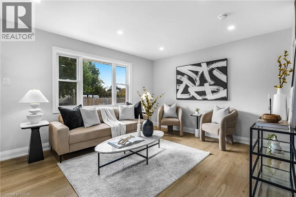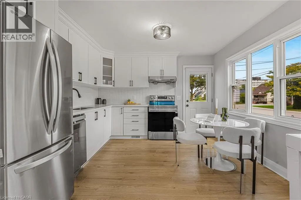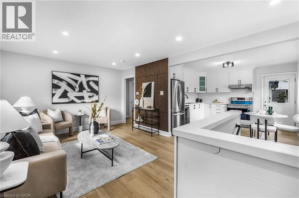 Parkdale Ave N. to Britannia Ave to Adair Ave N Welcome to 237 Adair Avenue North, Hamilton â a beautifully upgraded detached home on a premium 45 ft x 136 ft lot, offering over 1,500 sq. ft. of finished living space. Perfect for families, multi-generational living, or rental potential, this home features three separate entrances and an oversized driveway with parking for over five vehicles. The main level boasts an open-concept layout with a brand-new modern kitchen showcasing stainless-steel appliances, quartz countertops, and elegant finishes, along with two spacious bedrooms, a luxurious bathroom, and convenient main-floor laundry. The fully finished lower level includes a second kitchen, two additional bedrooms, a stylish full bathroom, and laundry hookups â ideal for extended family or potential income use. Located close to schools, parks, shopping, restaurants, and offering easy access to the QEW and Red Hill Valley Parkway, this home combines comfort, versatility, and convenience in one of Hamiltonâs most accessible neighbourhoods. (id:27476)