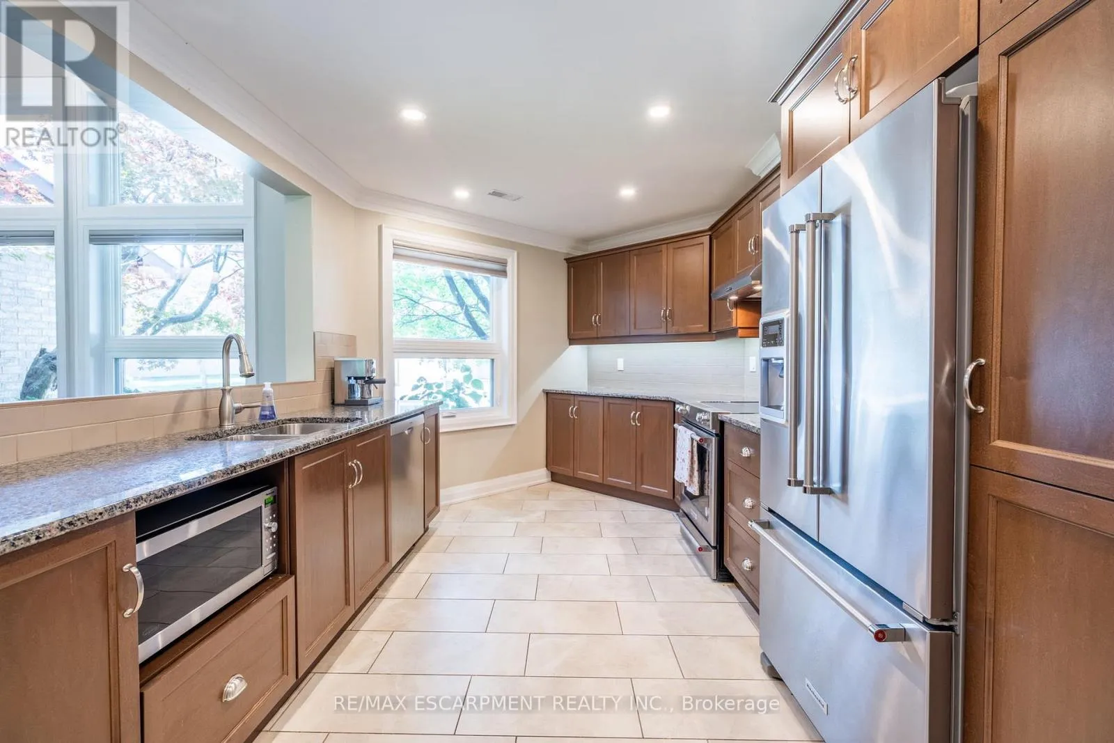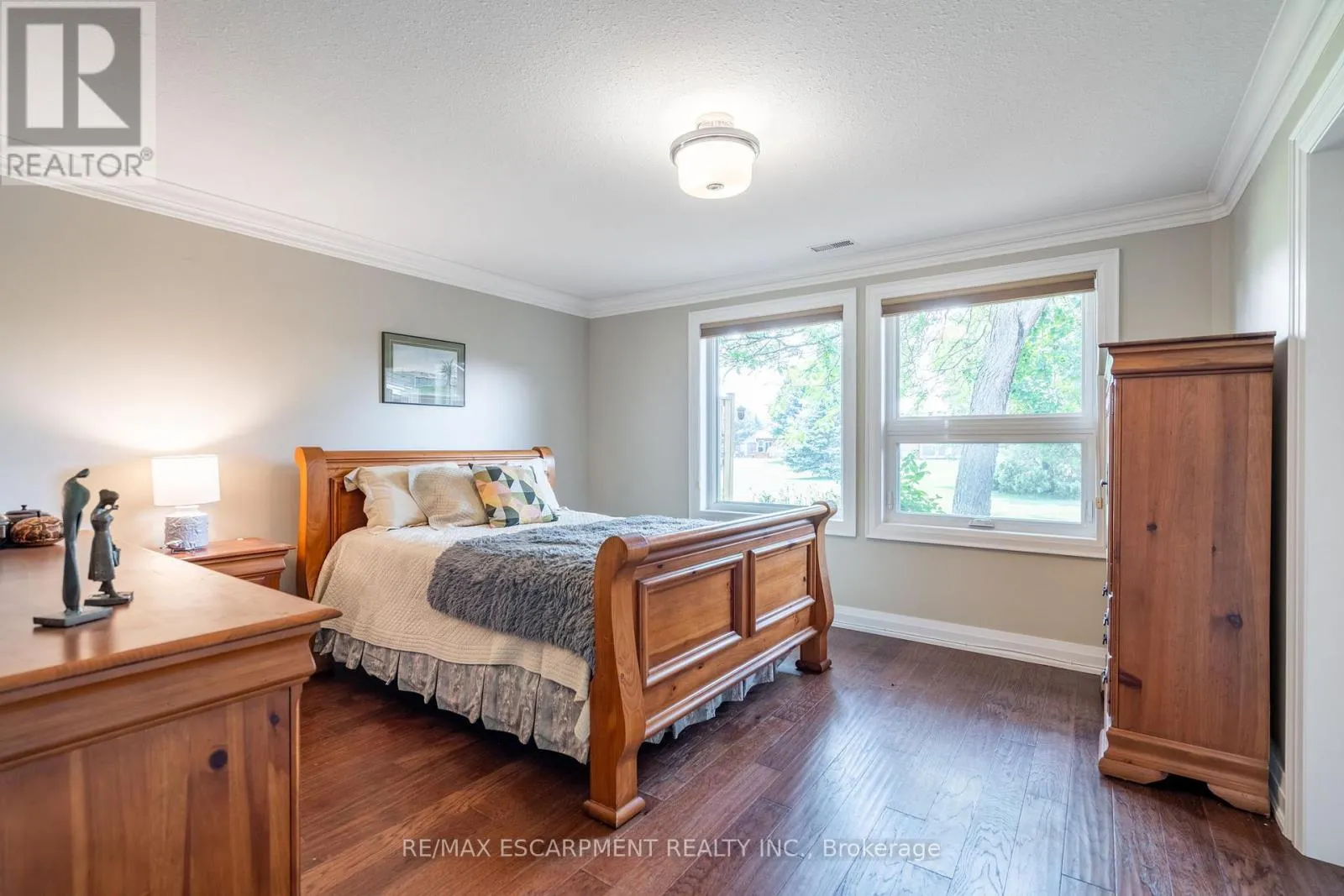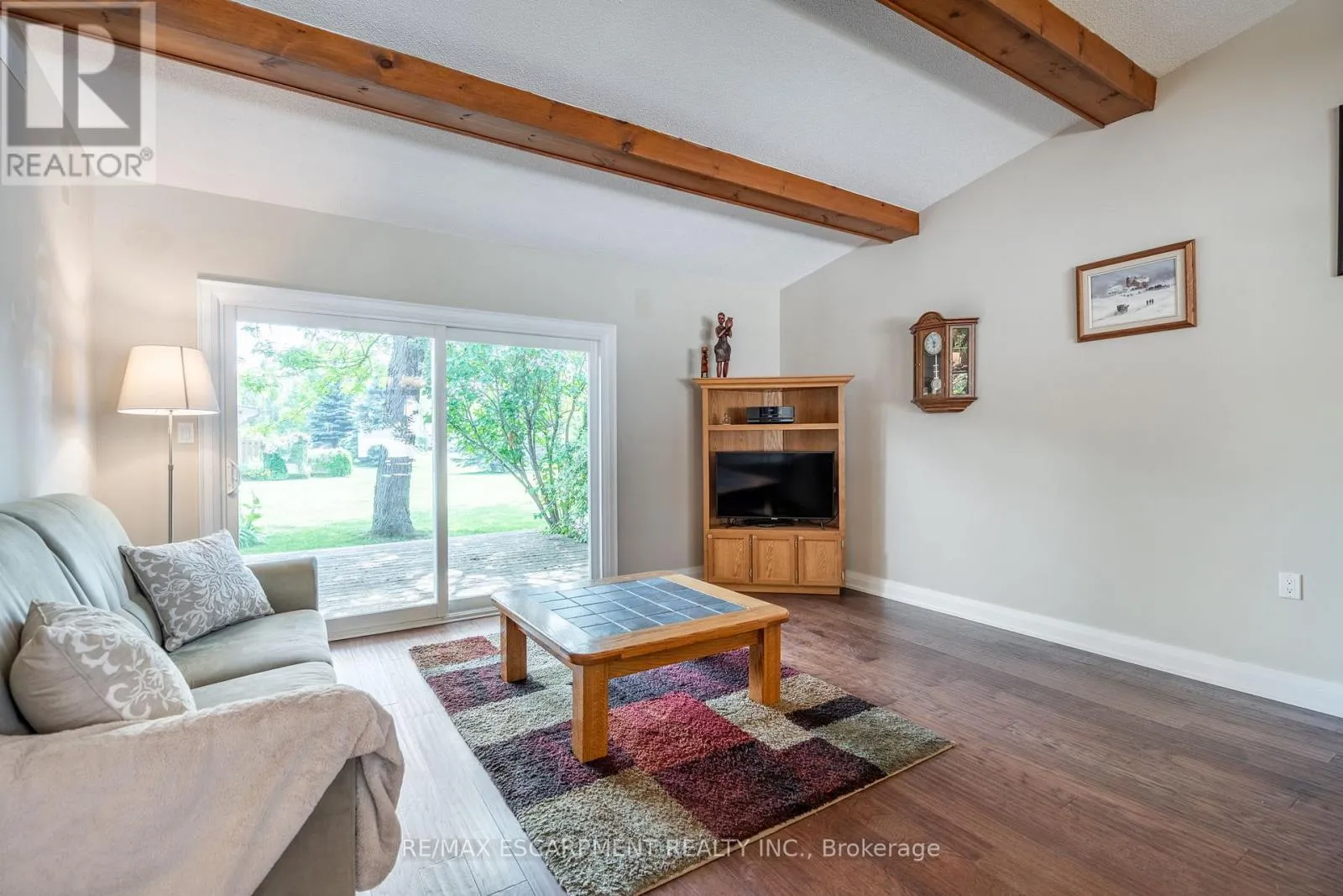 Cross Streets: Garth St & Rymal Rd W. ** Directions: South East Corner of Garth Street & Rymal Road West. Welcome to this beautifully maintained bungalow in the sought-after gated 55+ community of St. Elizabeth Village. This 1,232 sq. ft. home offers true one-floor living with no stairs, an attached garage, and a double driveway that fits two vehicles - perfect for ease and convenience. Inside, you'll find 2 spacious bedrooms and 1.5 bathrooms, including a large main bath featuring a roll-in shower - ideal for those with mobility needs. The open-concept kitchen, living, and dining area boasts soaring 16-ft vaulted ceilings, creating a bright and airy feel. Rich hardwood flooring runs throughout the main living space and both bedrooms, offering a warm and elegant touch. Tucked into a quiet pocket of the Village, the home offers tranquil views of one of the community's 14 scenic ponds - a perfect spot to relax and unwind. St. Elizabeth Village offers an unmatched lifestyle with resort-style amenities, including a heated indoor pool, gym, saunas, hot tub, golf simulator, woodworking shop, stained glass studio, and wellness services such as a doctor's office, pharmacy, and massage clinic - all within the community. Located just minutes from shopping, grocery stores, restaurants, and with public transit that comes right into the Village, everything you need is close at hand. This is retirement living at its finest. (id:27476)