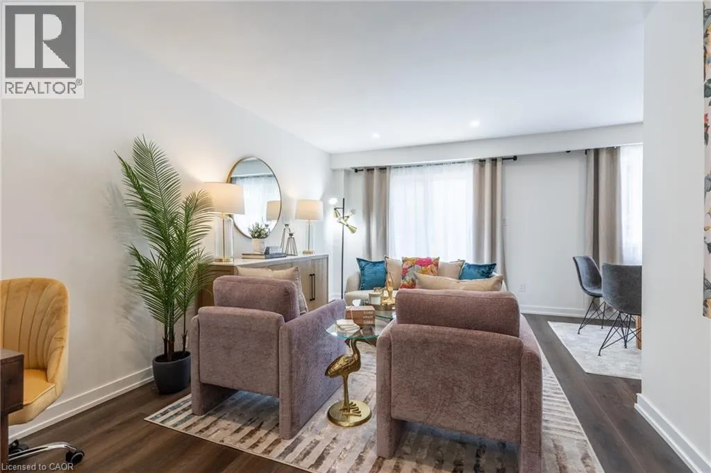 Off Upper Ottawa south of Stone Church Welcome to Unit 43-88 Tunbridge Crescent in Hamilton! This fully renovated END UNIT townhome is nestled in the desirable Templemead neighbourhood, just minutes from highway access, shopping, and top-rated schools. The main floor features a spacious living and dining area, 2-piece bath, and a stunning new kitchen with plenty of storage, quartz countertops and brand new stainless steel appliances. Modern vinyl-plank flooring flows throughout. Upstairs, youâll find three very generously sized bedrooms, a beautifully updated main bath, and two linen closets. The unfinished basement offers great potential for finishing or just storage. Complete with a 1-car garage, private driveway & backyard! *Listing photos are of Model Home, virtually staged (id:27476)