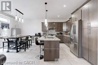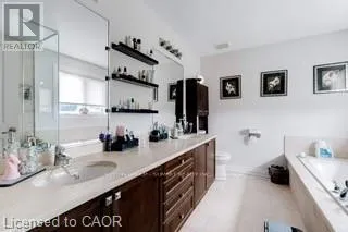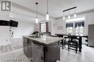 Cross Streets: Upper Sherman & Stone Church. ** Directions: Upper Sherman South of Stone Church, Left on Daliathen Left on Pathfinder, follow Pathfinder to MittenCourt. Welcome Home! 2459 sq. ft. "Ruffino" plan. Quality built by Meadowcreek Properties (2012). 3+1bedrooms plus loft situated on a quiet court lot. $10,000 in Builders upgrades incld 2 way GasF.P, pot lights & 9 ft. ceilings on main level. Grand foyer with soaring ceilings and oversize tiled flooring dazzles guests as they arrive at this elegantly designed home featuring a modern (2012 built) open concept layout with a stunning dining room with engineered flooring and areal wow of wall that boasts a double-sided glass fireplace. On the other side is the living room with engineered floors that is open to the gourmet chef kitchen that has a spectacular centre piece island. All areas are finished with oversized plastered crown moulding too. Downstairs you will enjoy a large partially finished recreational room with a roughed-in Kitchen, plus there is a 4th bedroom and a potential home office area to develop. Upstairs is a loft area family room plus there are 3 large bedrooms and a to-die-for dream master 5pc ensuite is like going to a luxurious spa for the day. Back yard is ready for entertaining. Heated Garage with Newer Insulated Garage door(24). A must see! Ideal for entertaining or growing your family! (id:27476)