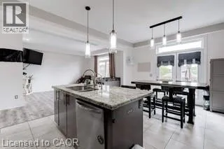 Upper Sherman South of Stone Church, Left on Dalia then Left on Pathfinder, follow Pathfinder to Mitten Court Welcome Home! 2459 sq. ft. Ruffino plan. Quality built by Meadowcreek Properties (2012). 3+1 bedrooms plus loft situated on a quiet court lot. $10,000 in Builders upgrades incld 2 way Gas F.P, pot lights & 9 ft. ceilings on main level. Grand foyer with soaring ceilings and oversize tiled flooring dazzles guests as they arrive at this elegantly designed home featuring a modern (2012 built) open concept layout with a stunning dining room with engineered flooring and a real wow of wall that boasts a double-sided glass fireplace. On the other side is the living room with engineered floors that is open to the gourmet chef kitchen that has a spectacular centre piece island. All areas are finished with oversized plastered crown moulding too. Downstairs you will enjoy a large partially finished recreational room with a roughed-in Kitchen, plus there is a 4th bedroom and a potential home office area to develop. Upstairs is a loft area family room plus there are 3 large bedrooms and a to-die-for dream master 5pc ensuite is like going to a luxurious spa for the day. Back yard is ready for entertaining. Heated Garage with Newer Insulated Garage door(24). A must see! Ideal for entertaining or growing your family! (id:27476)